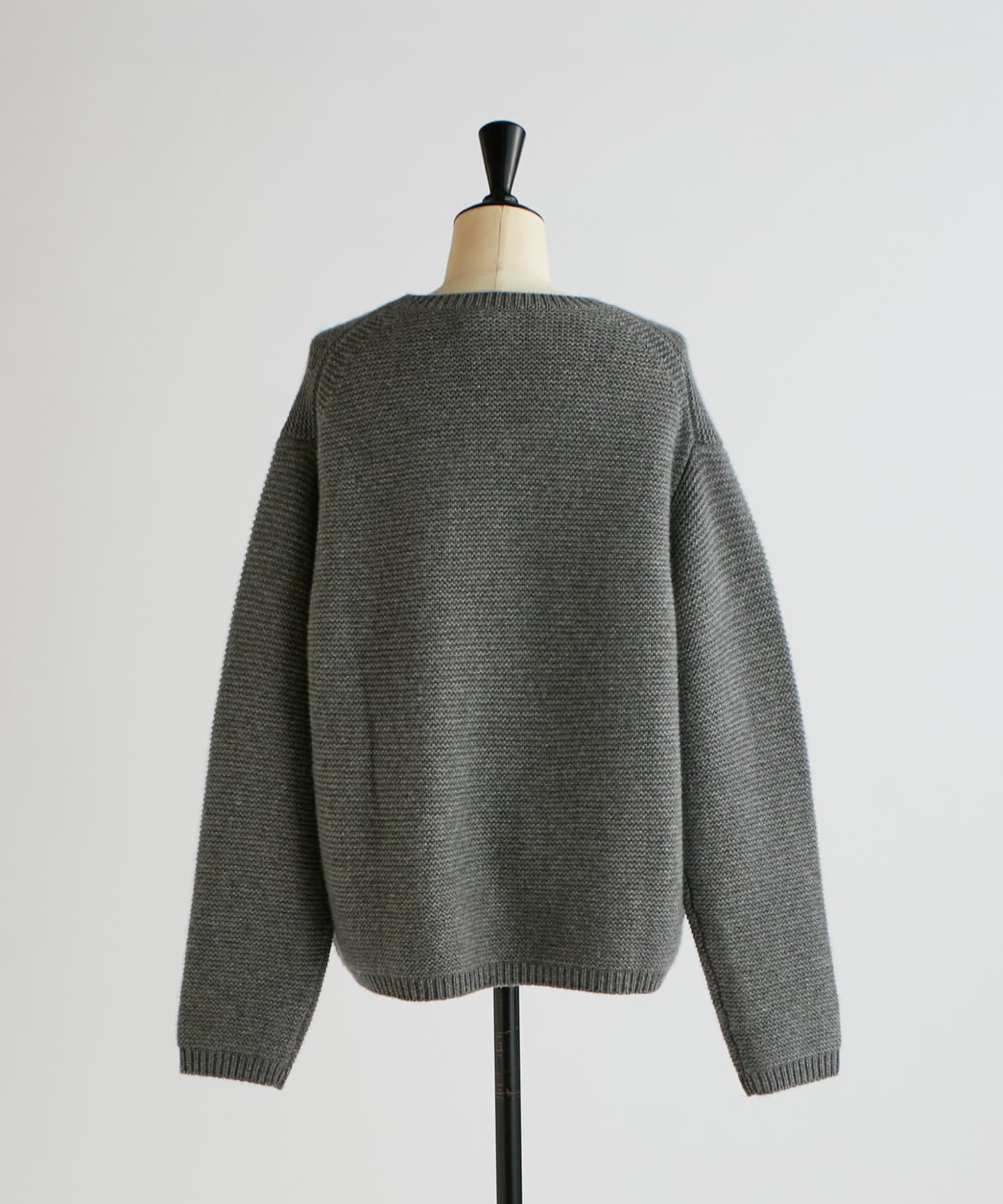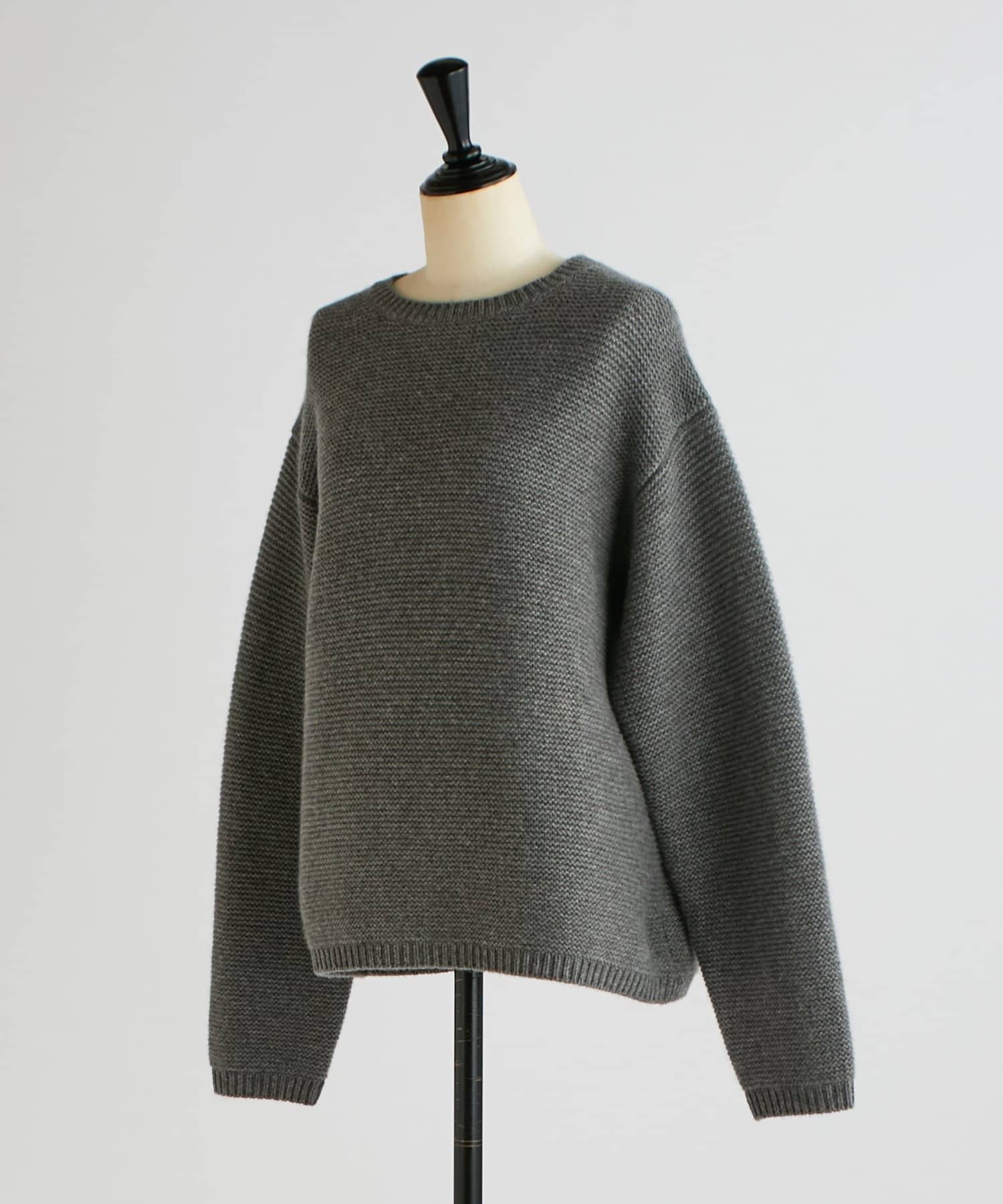 ガーター編みならではの程よい厚みと弾力が、カシミヤの柔らかさをより一層引き立てます。