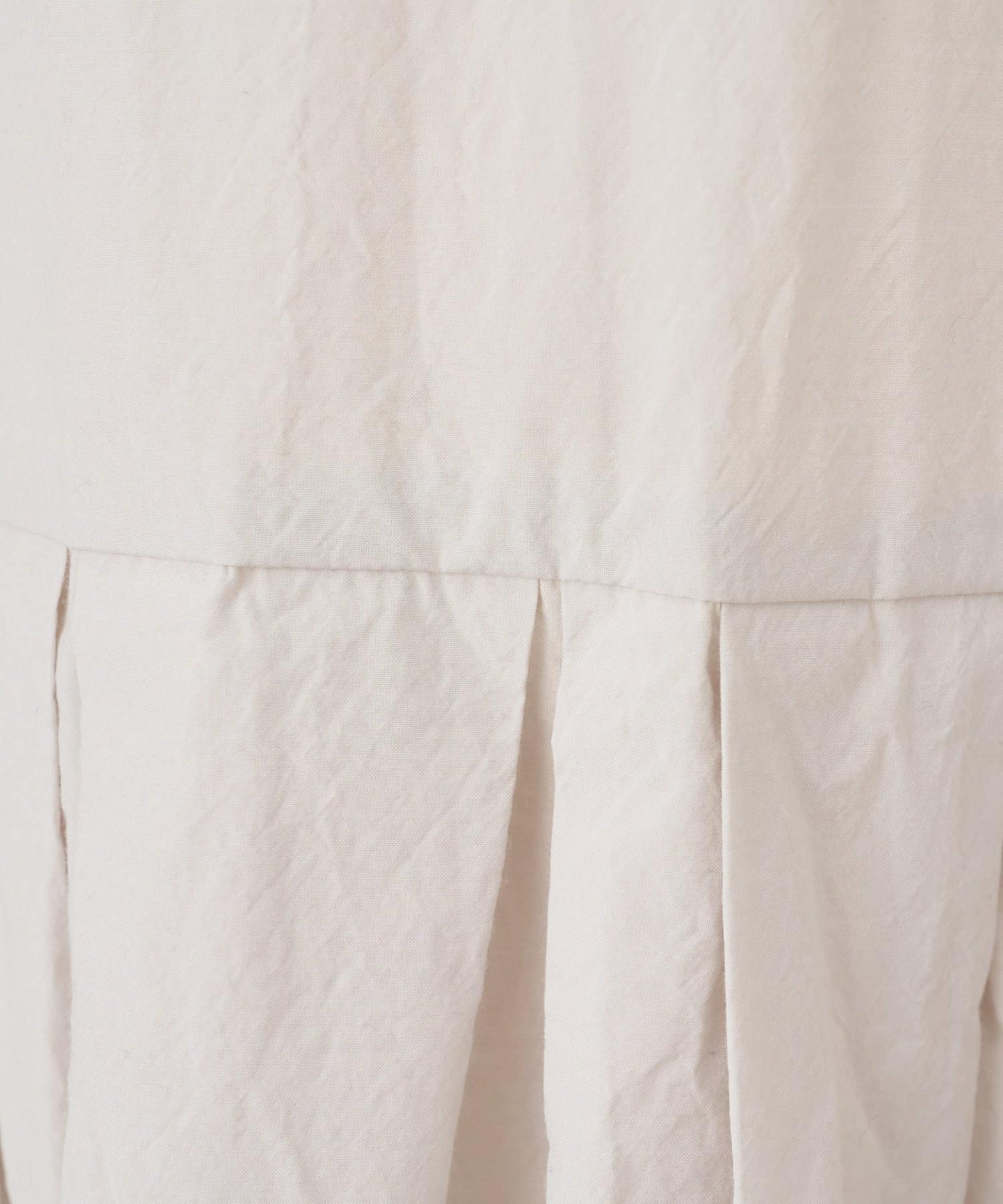 ローウエストの切り替え部分にタックをたっぷりといれ、スカート部分にボリューム感を持たせています。