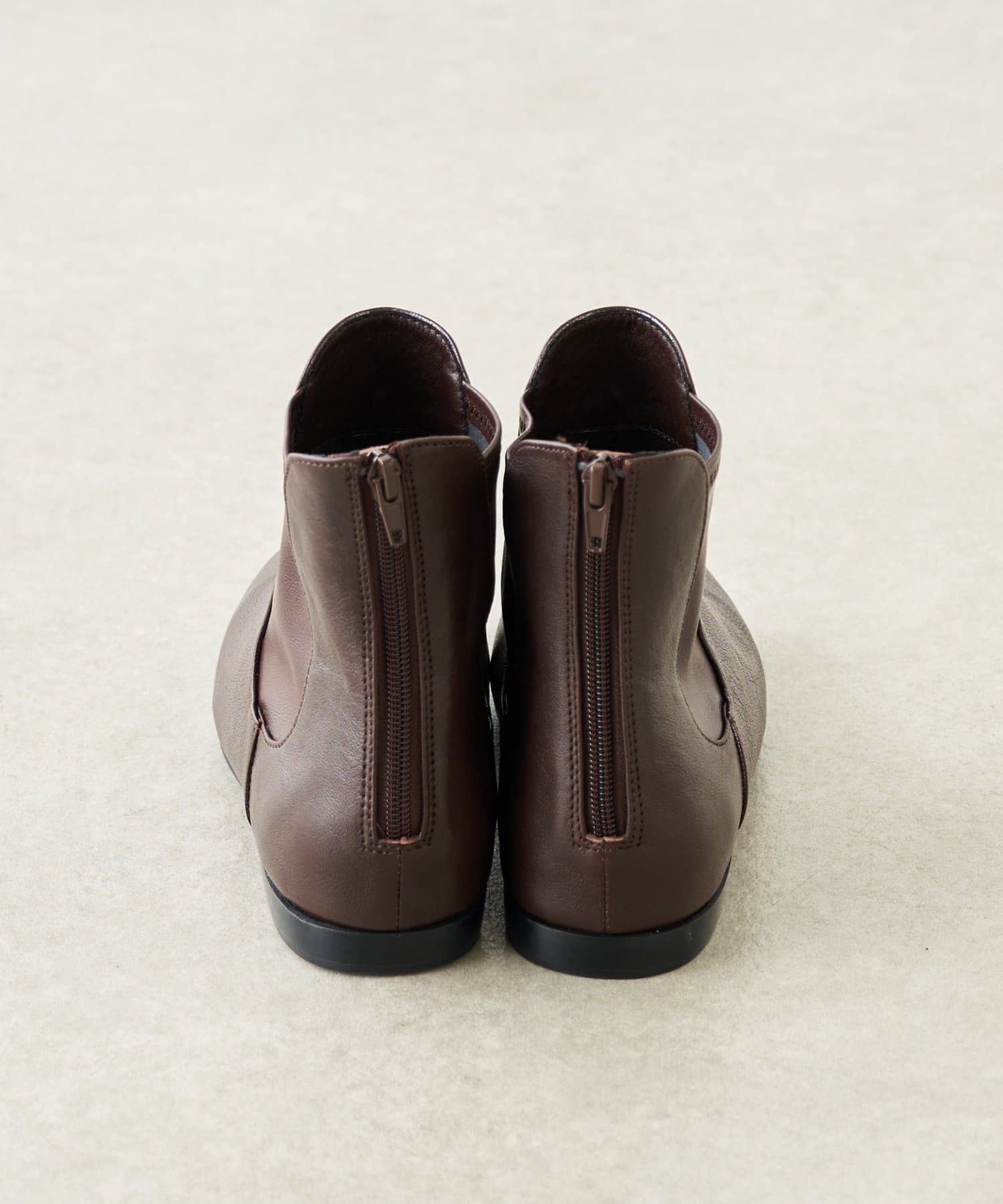 くるぶしが隠れるショート丈は、パンツにもスカートにも合わせやすく、シーズンを問わず活躍。かかと部分にはファスナーを備えており、着脱もスムーズです。