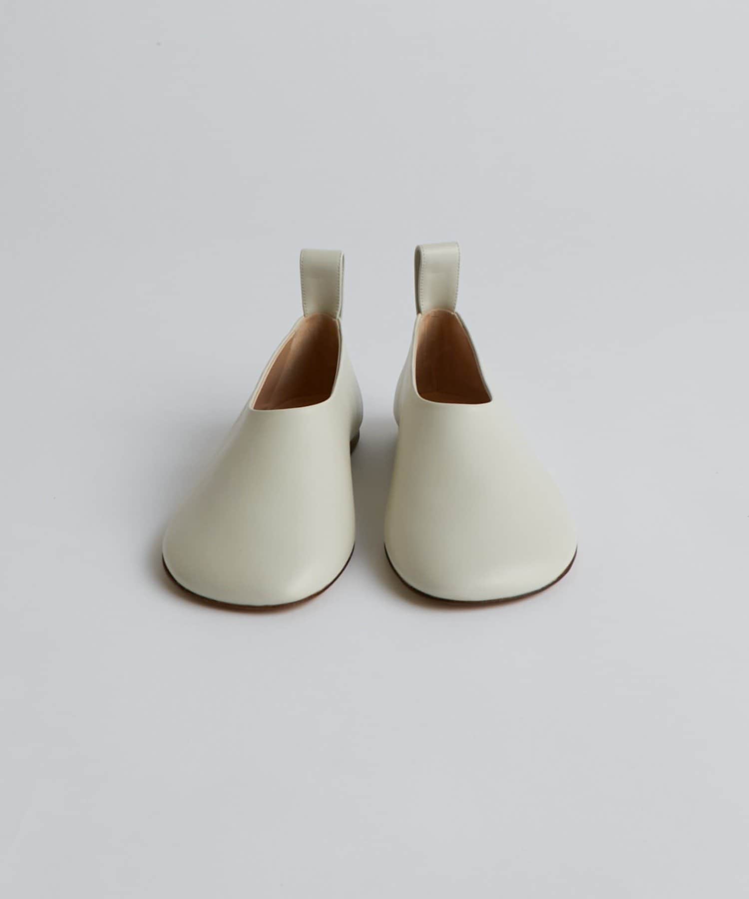 装飾やステッチを削ぎ落し、足を包み込むようなシンプルなデザインが《SOFIE D'HOORE》らしいアイテム。