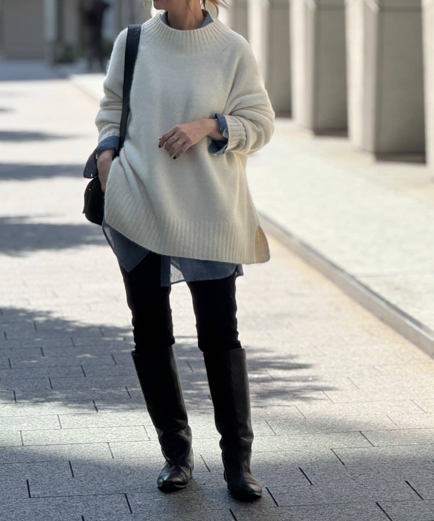 ヒップにかかる着丈が安心感があり、毎日のスタイリングに取り入れやすい一枚です。