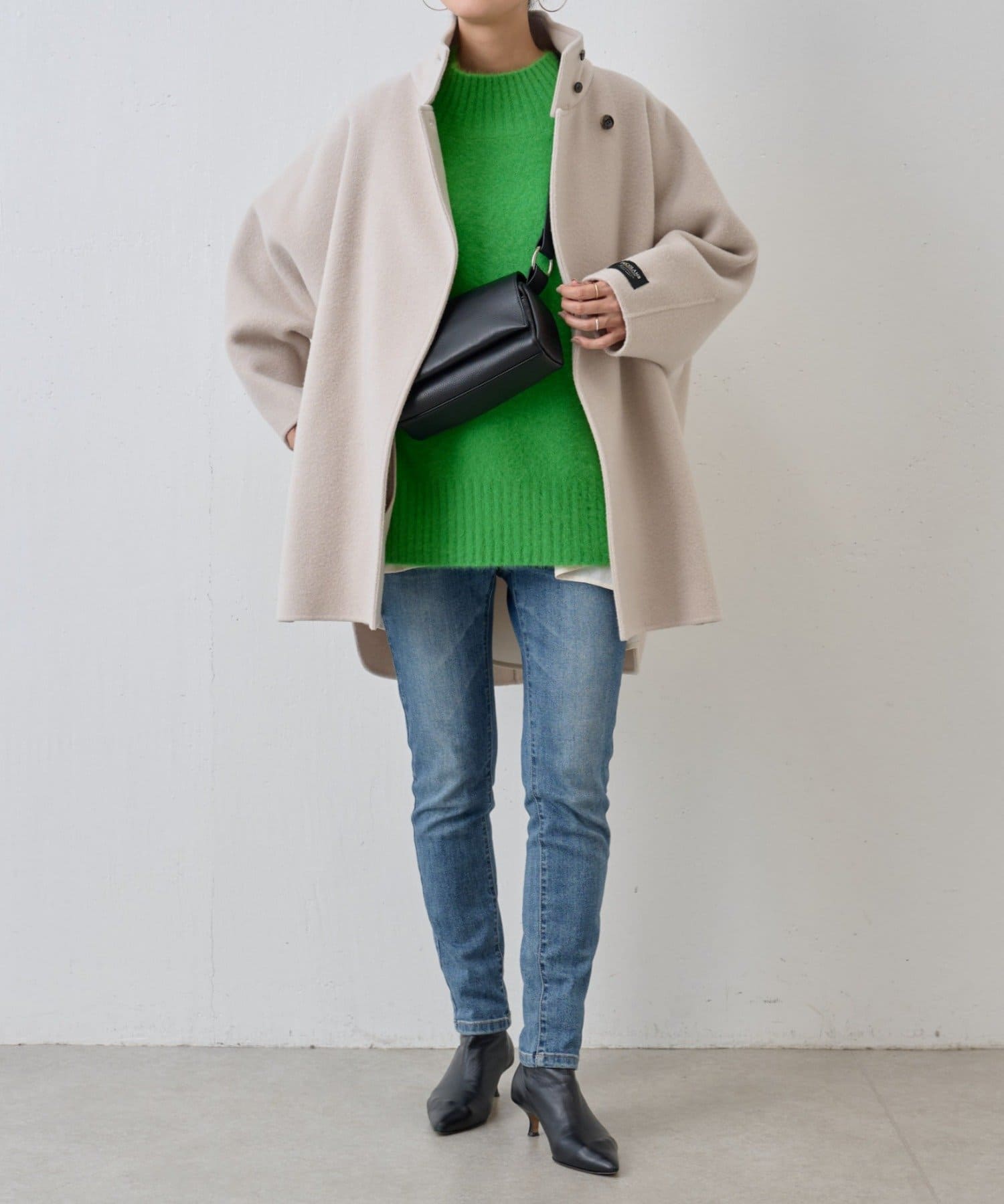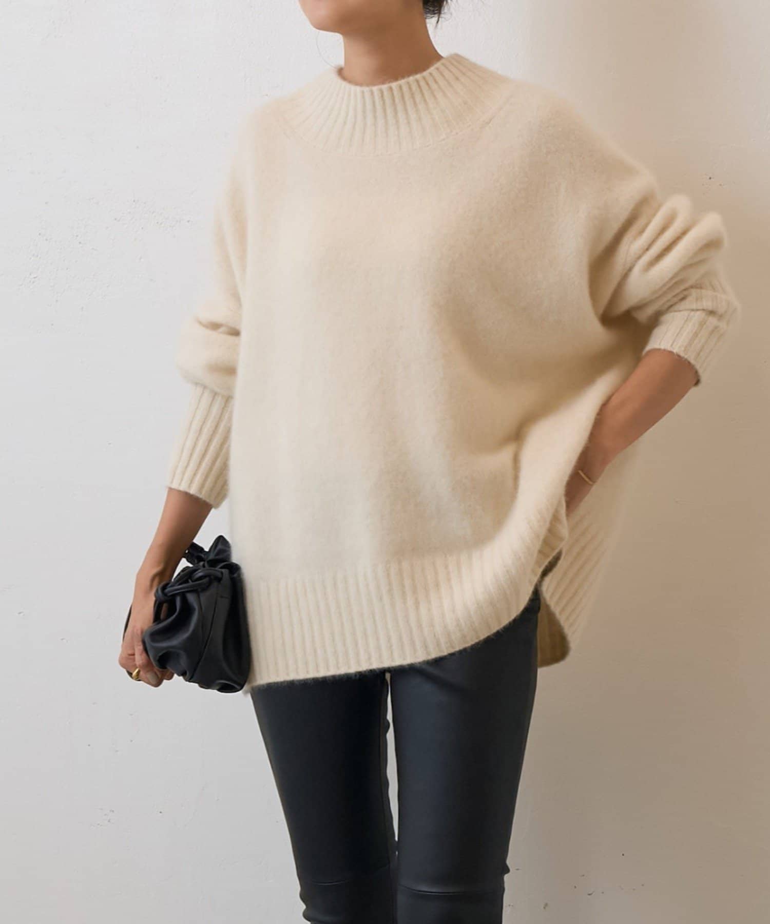 上品な印象のボトルネックデザインが大人な雰囲気に。