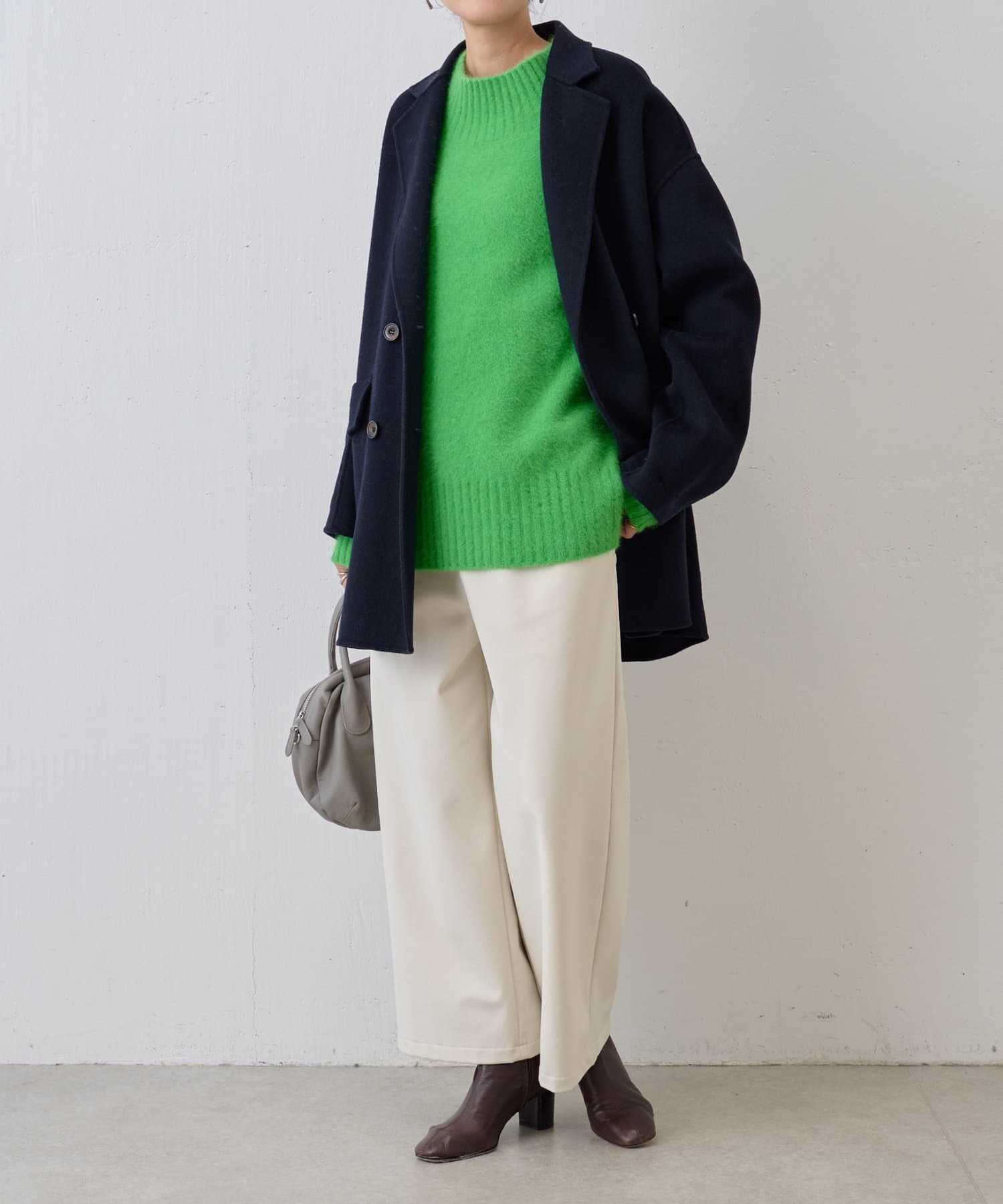 ・素材の特性上、毛羽が抜けることがあります。他の衣類に付着した毛羽は、ブラッシング等でお取りください。着用の際は、できるだけ同系色の衣類との組み合わせをおすすめします。