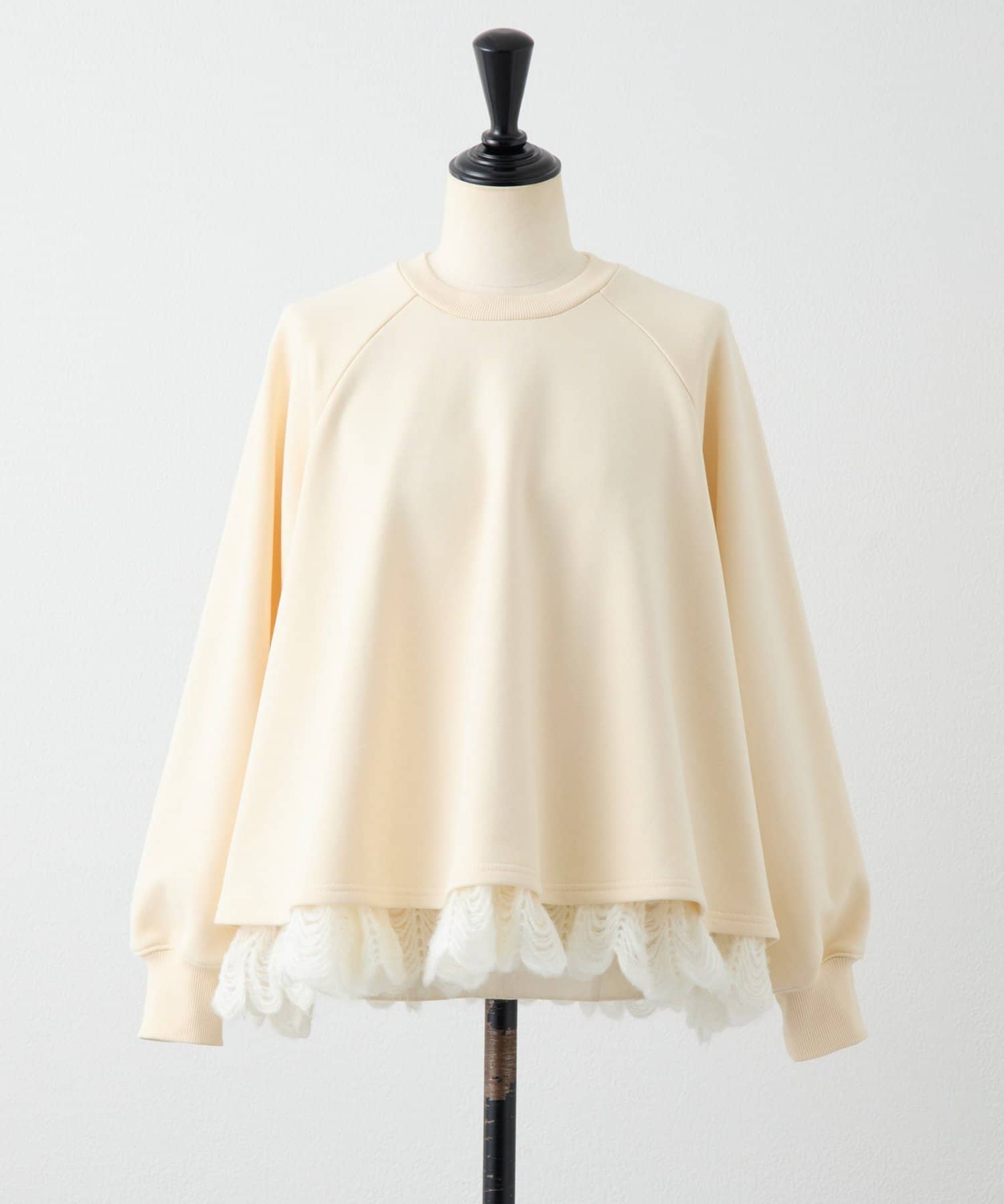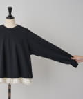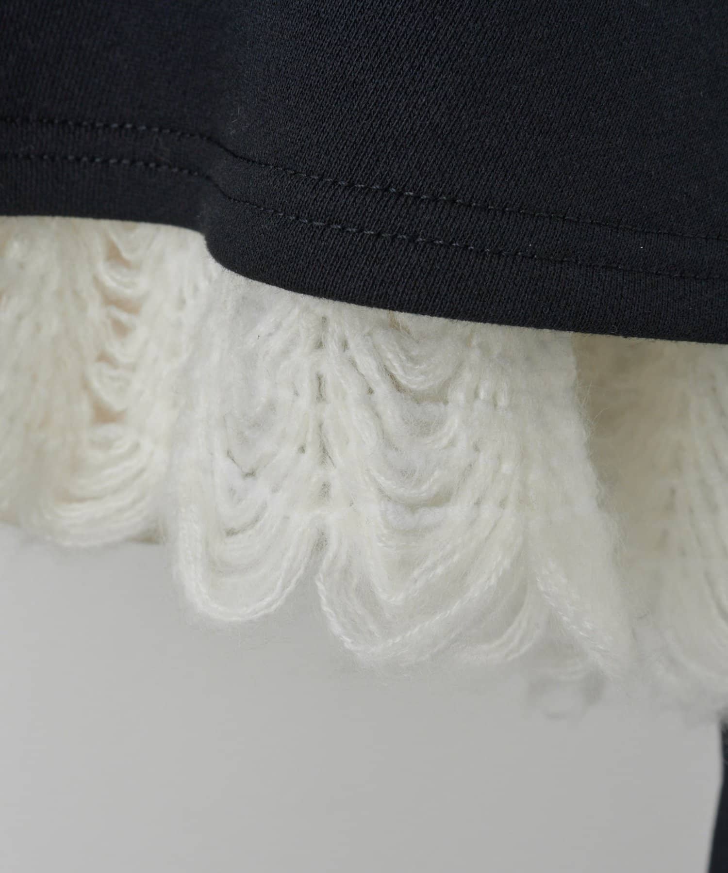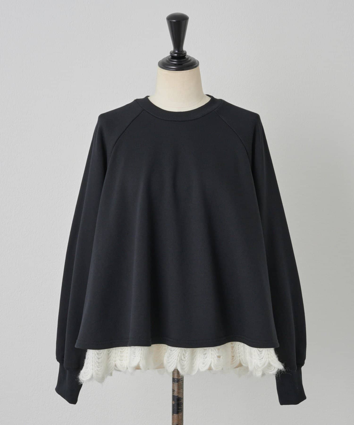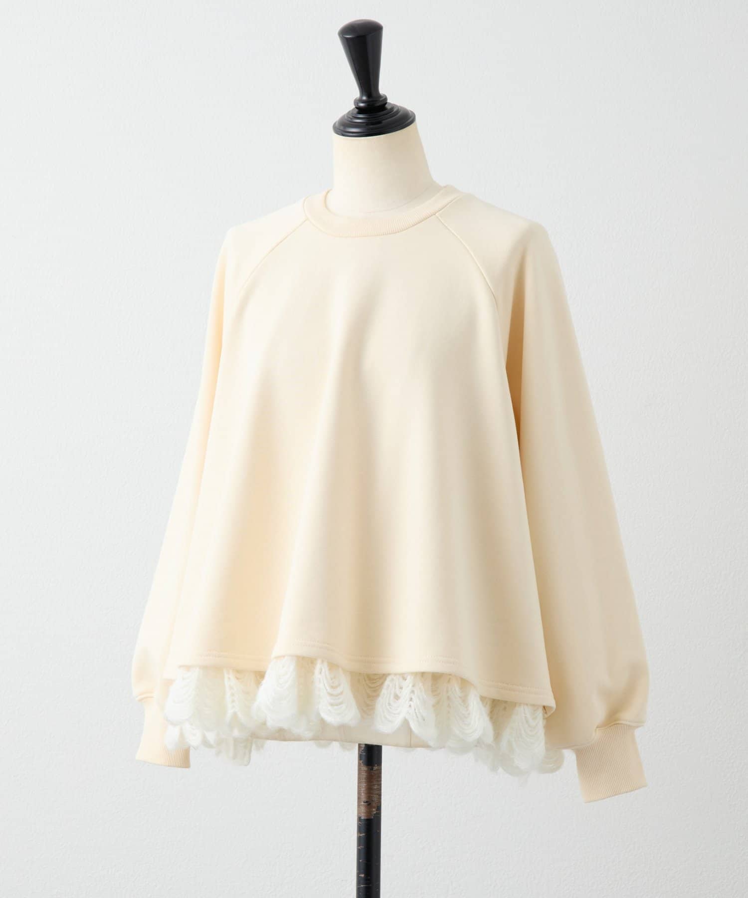 裾に、タム糸を使用した透かし編みのニットレースをあしらったカットソー。