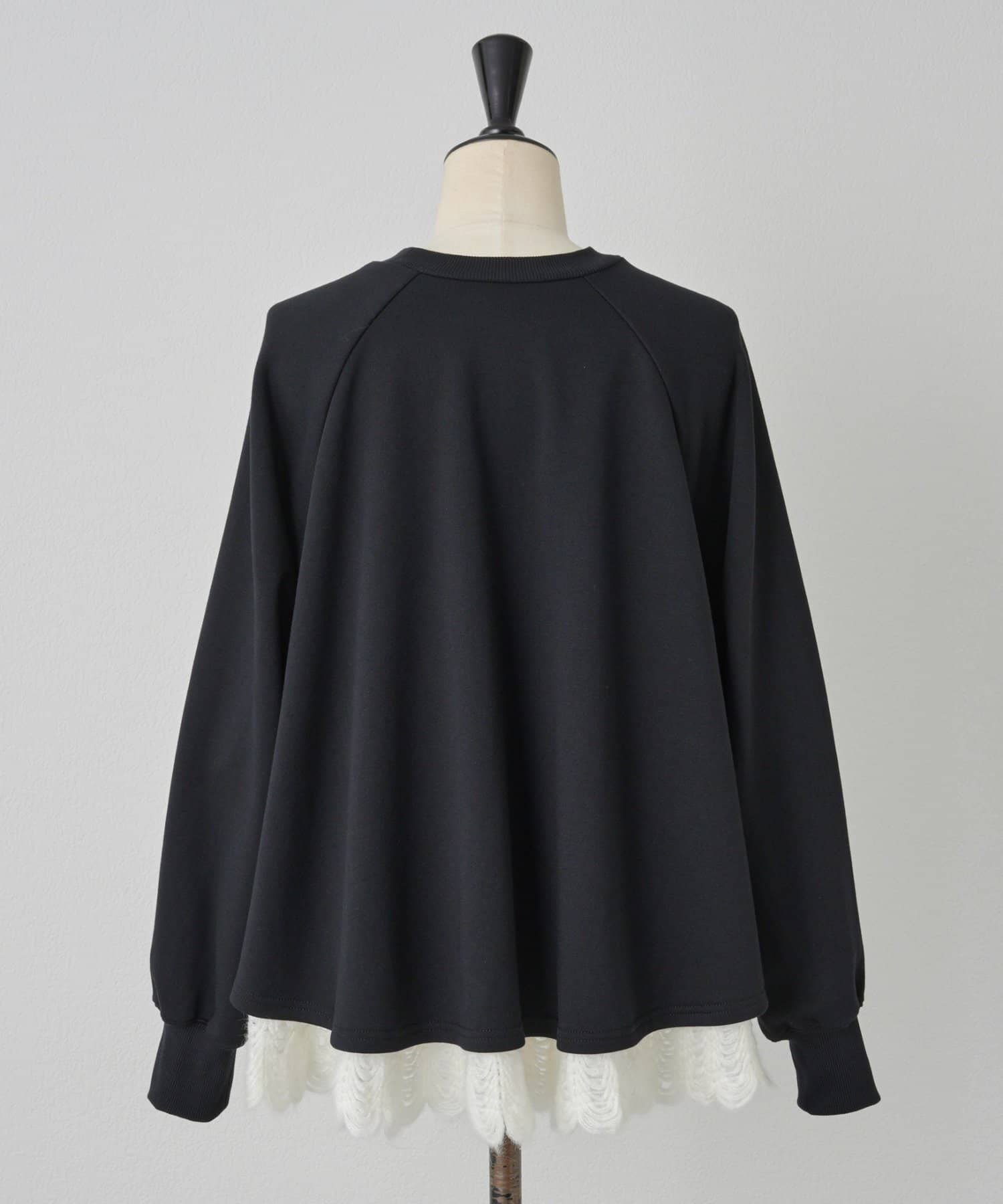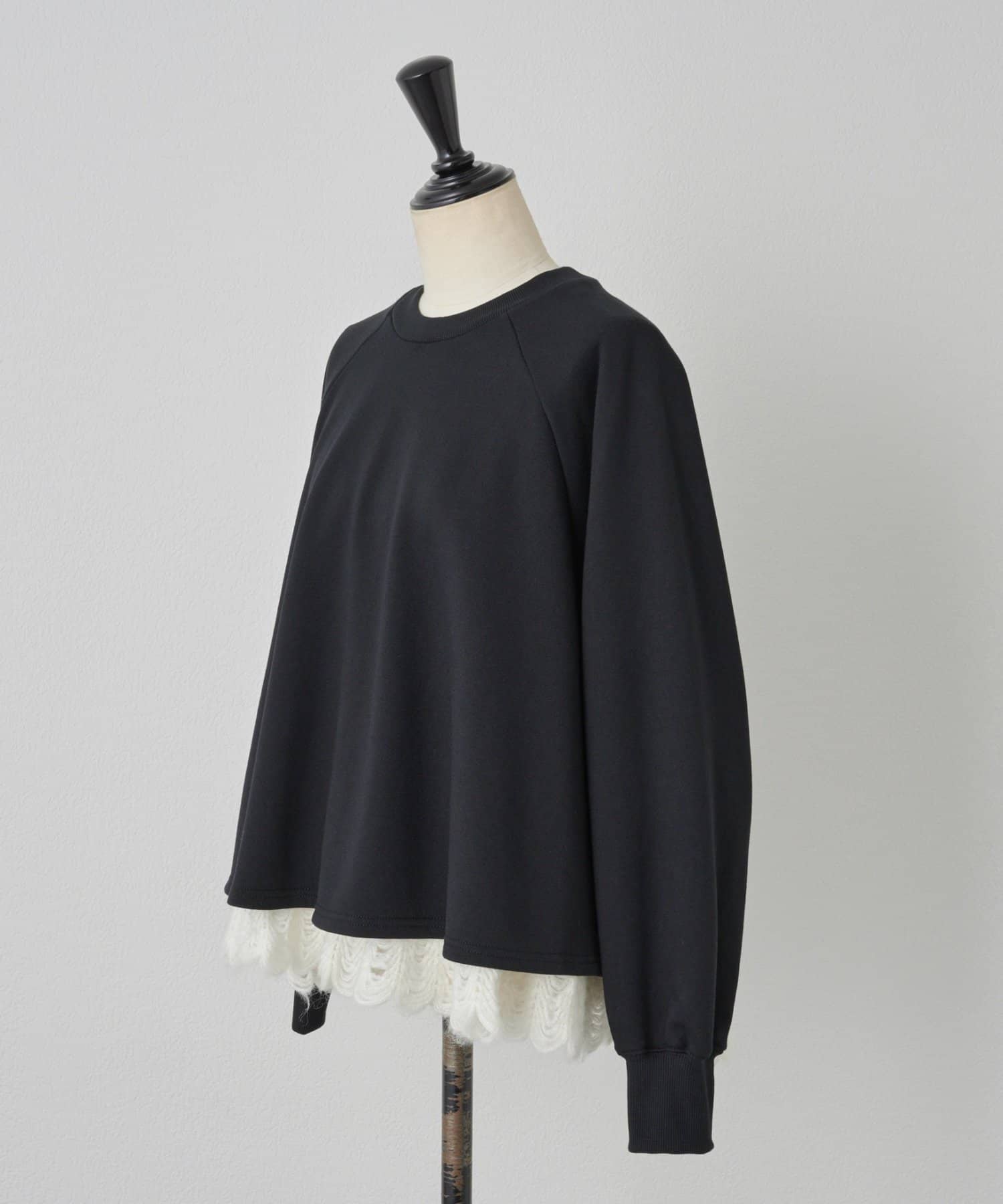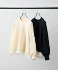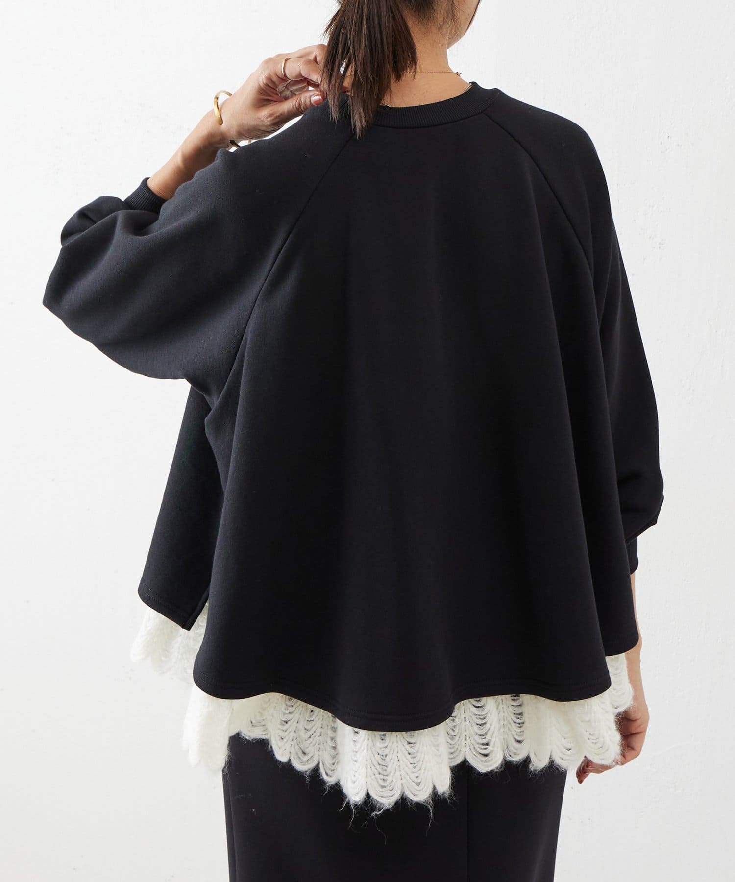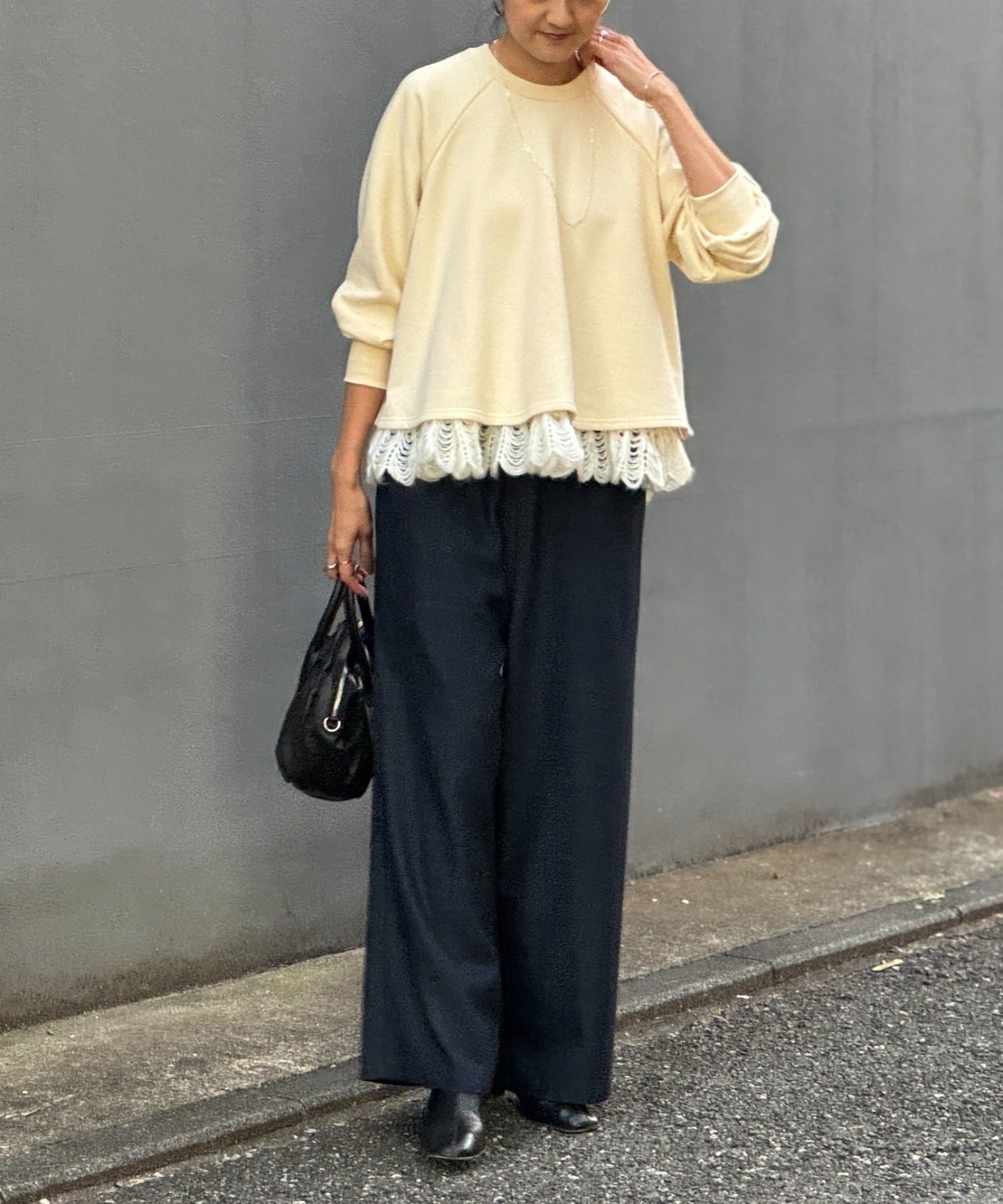 裾に、タム糸を使用した透かし編みのニットレースをあしらったカットソー。
