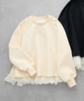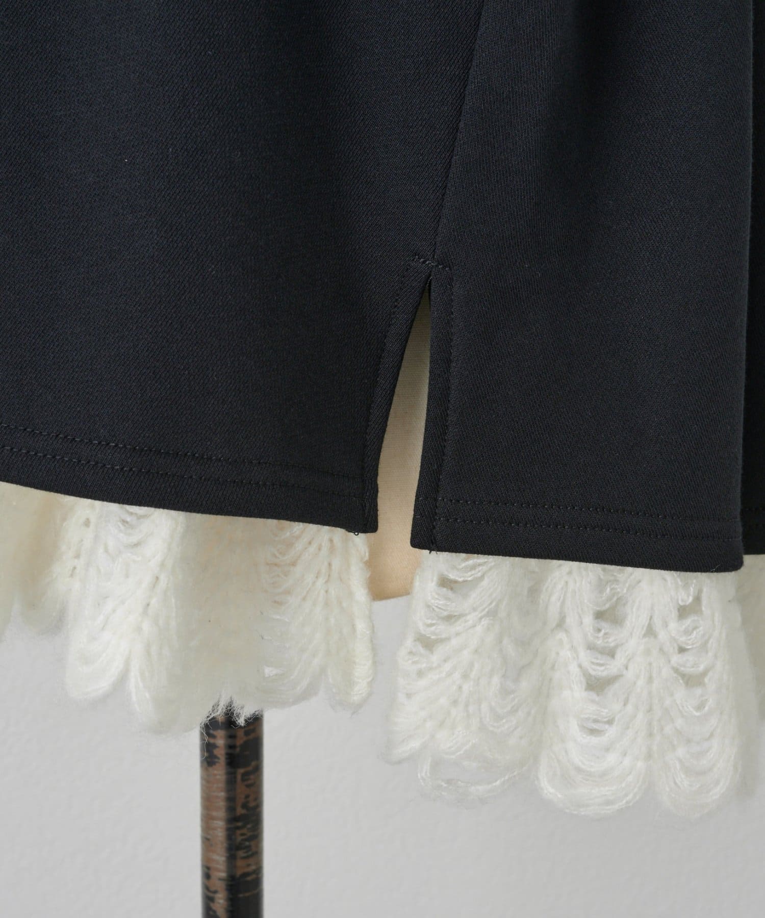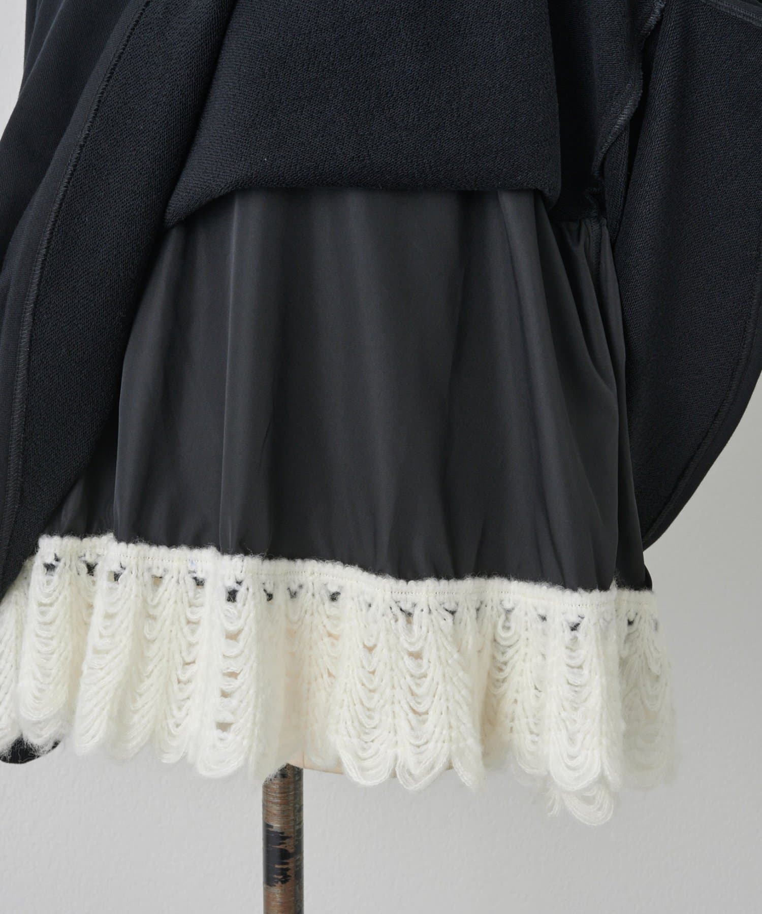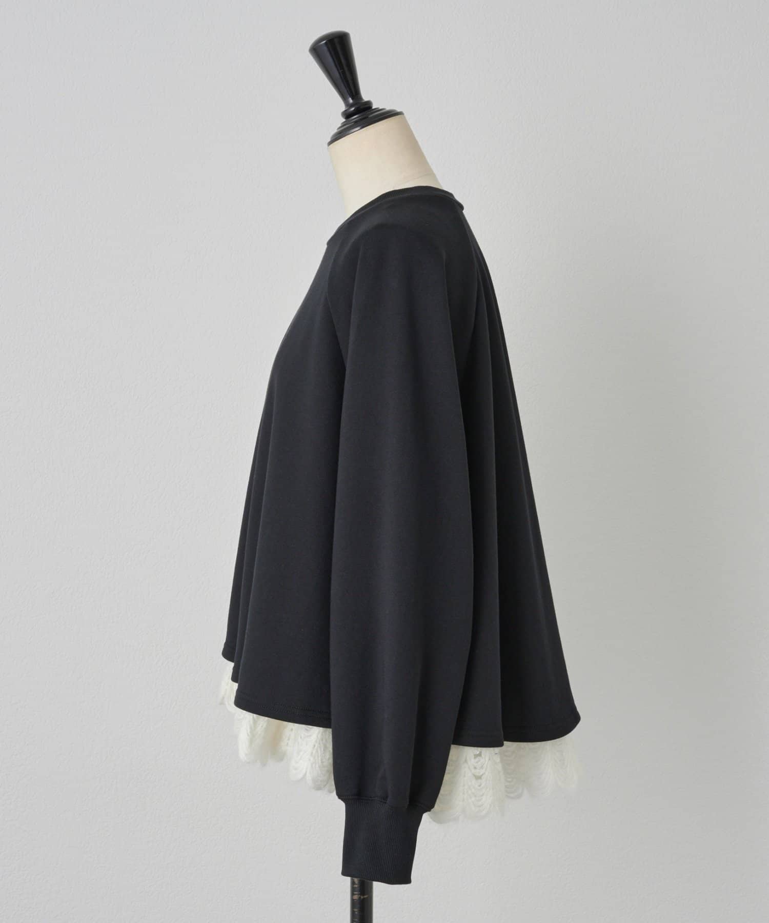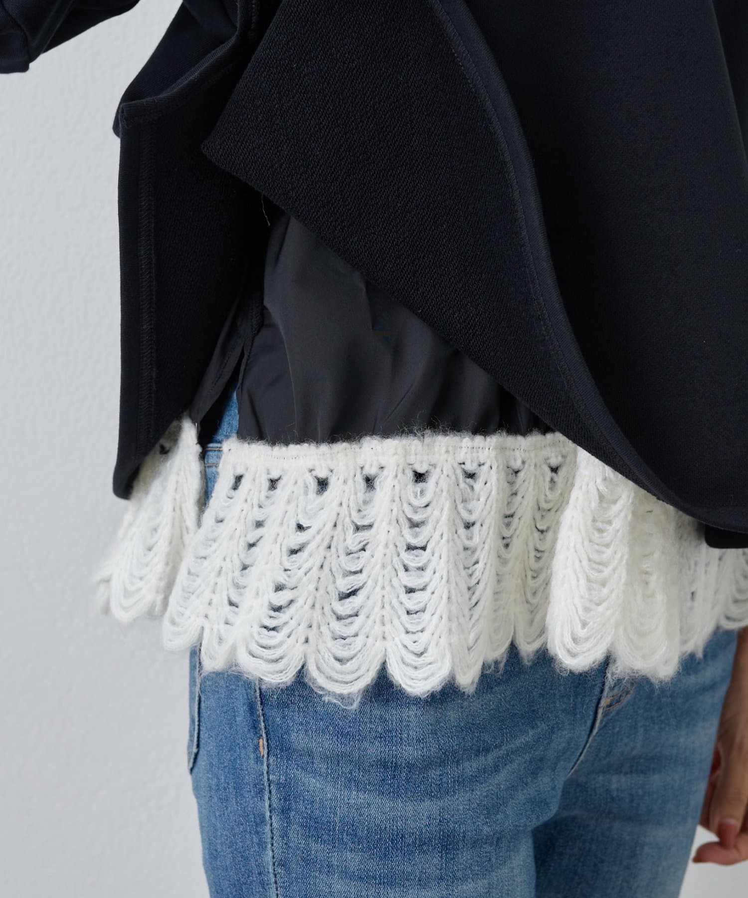 裾に、タム糸を使用した透かし編みのニットレースをあしらったカットソー。