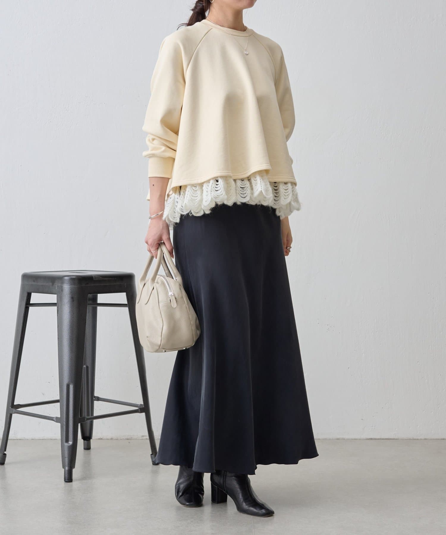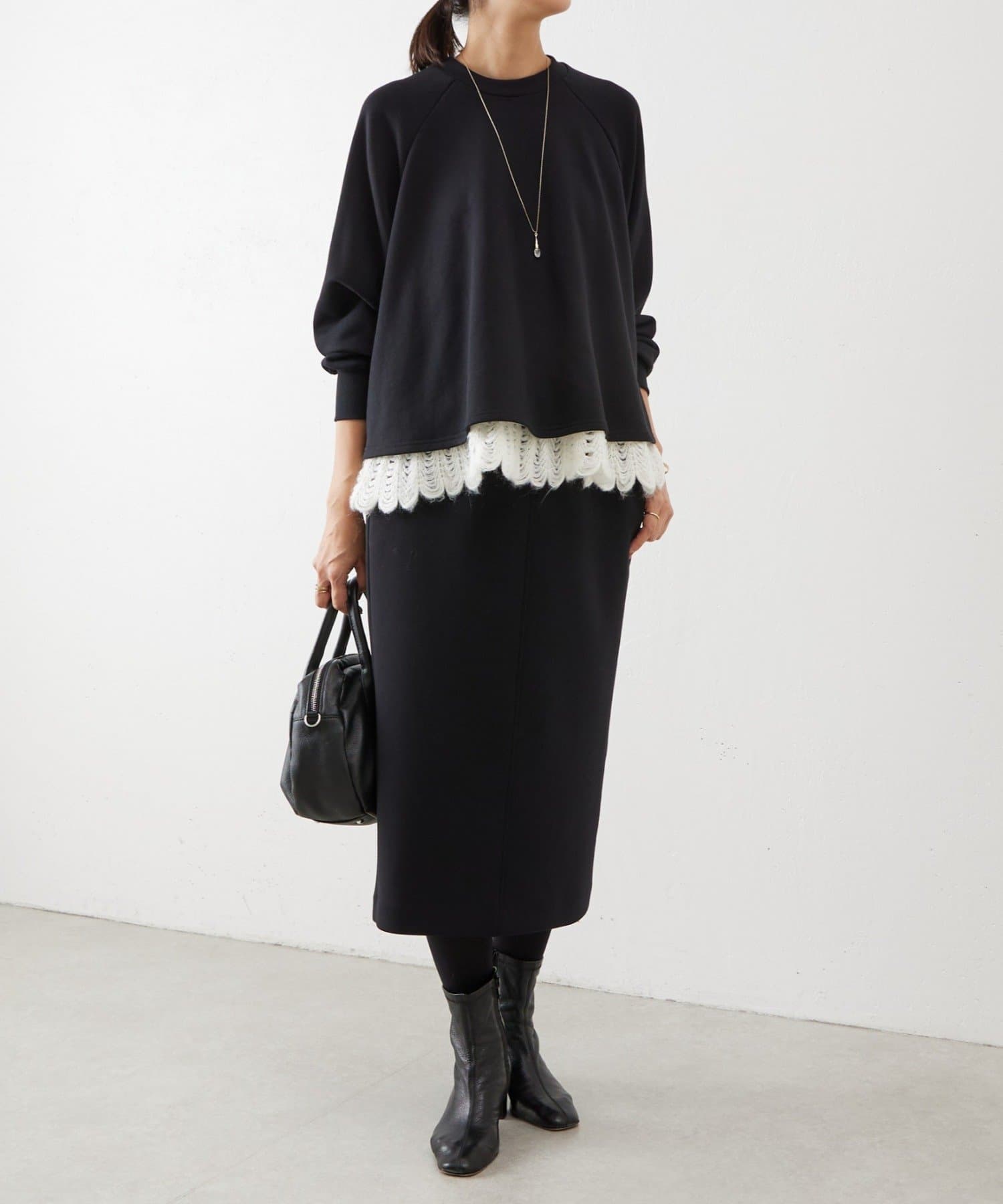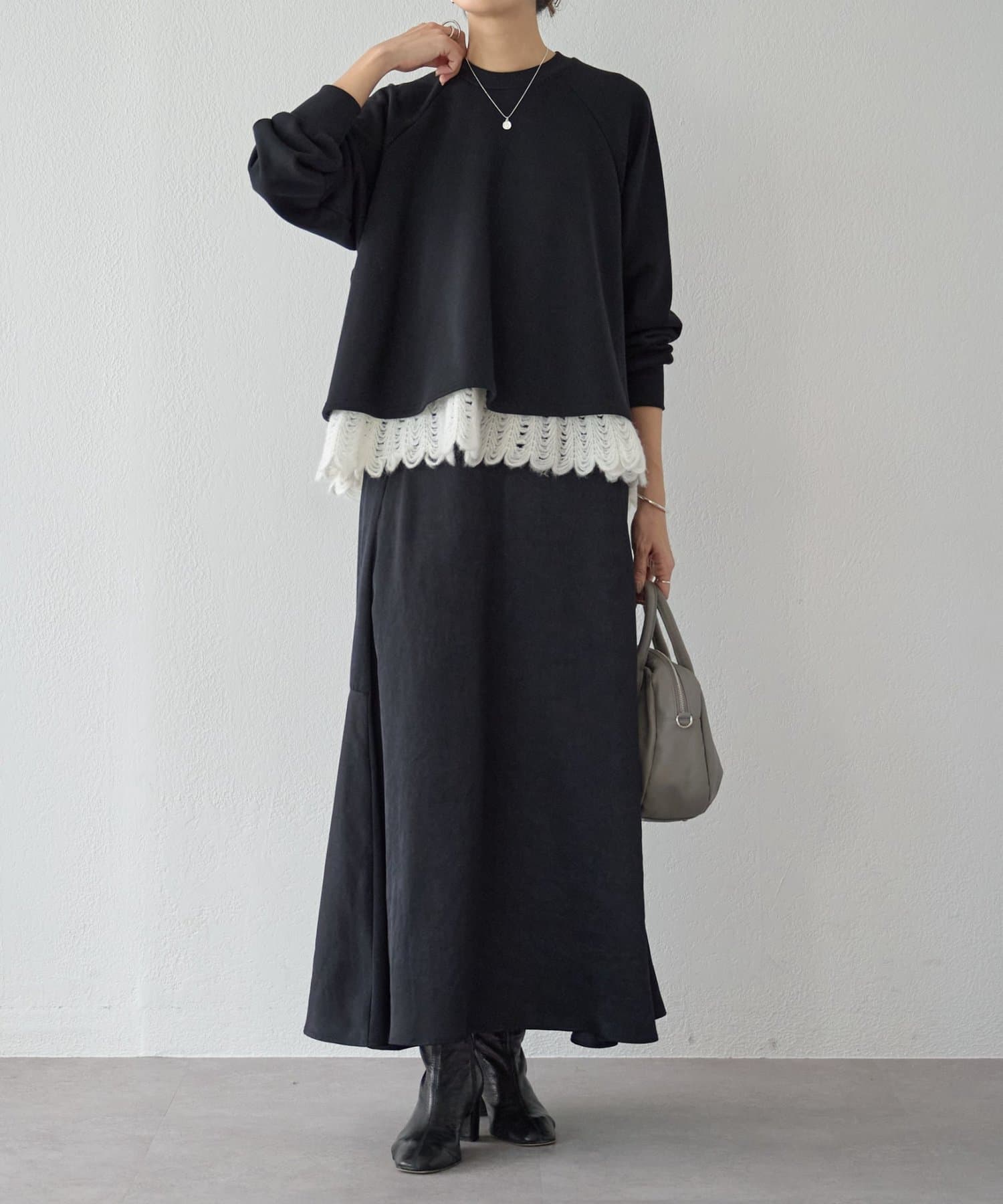 一枚で重ね着しているように見えるデザインで、レイヤードが苦手な方でも品よくバランスよく決まります。