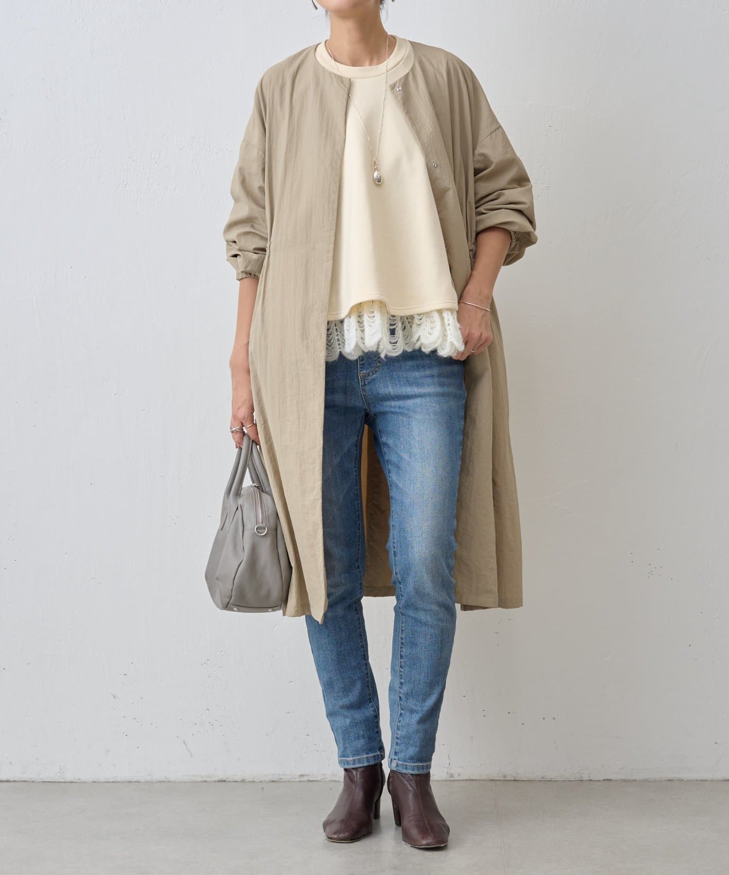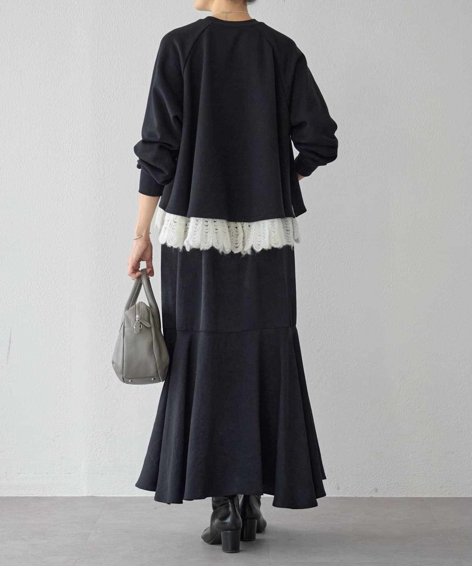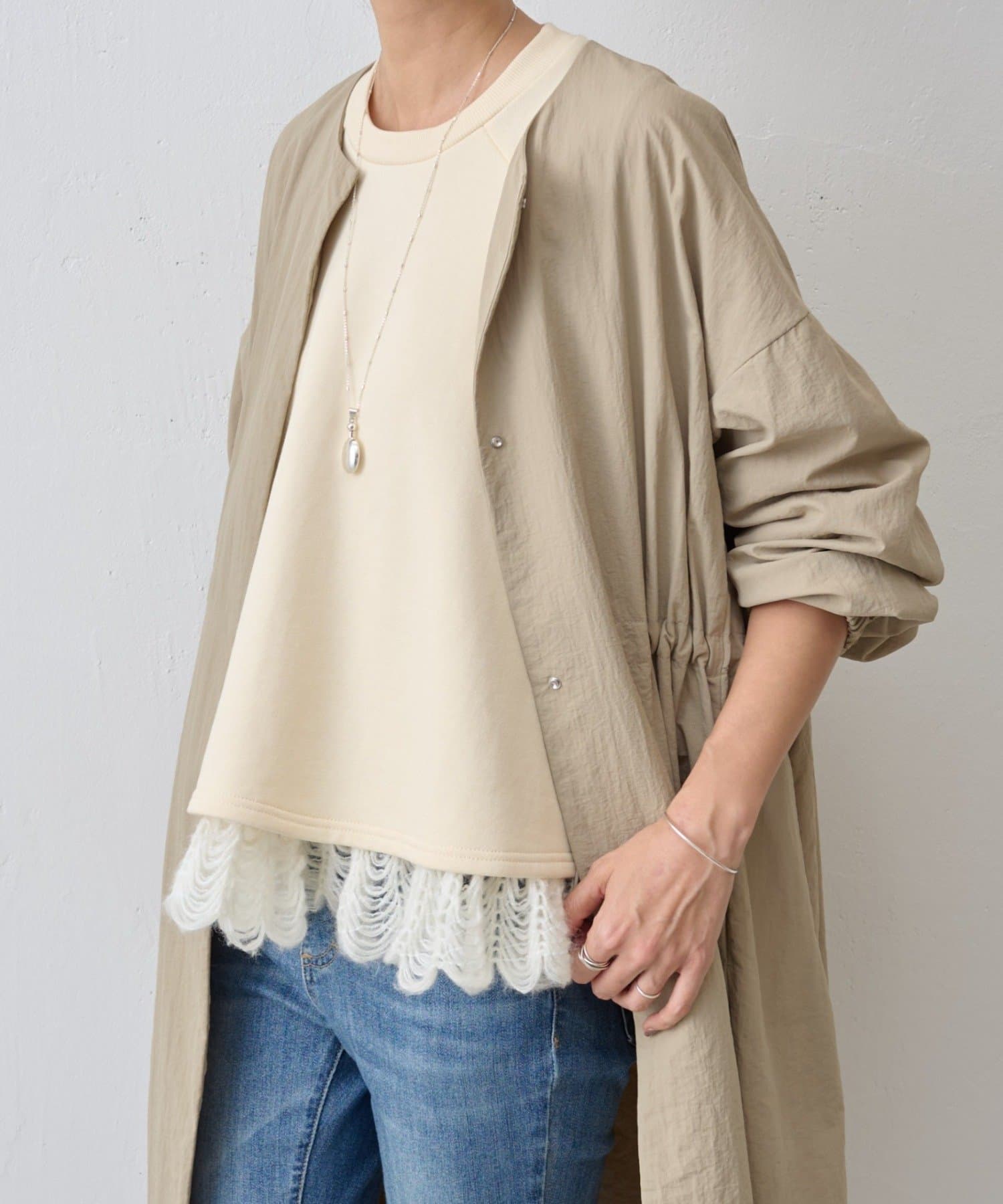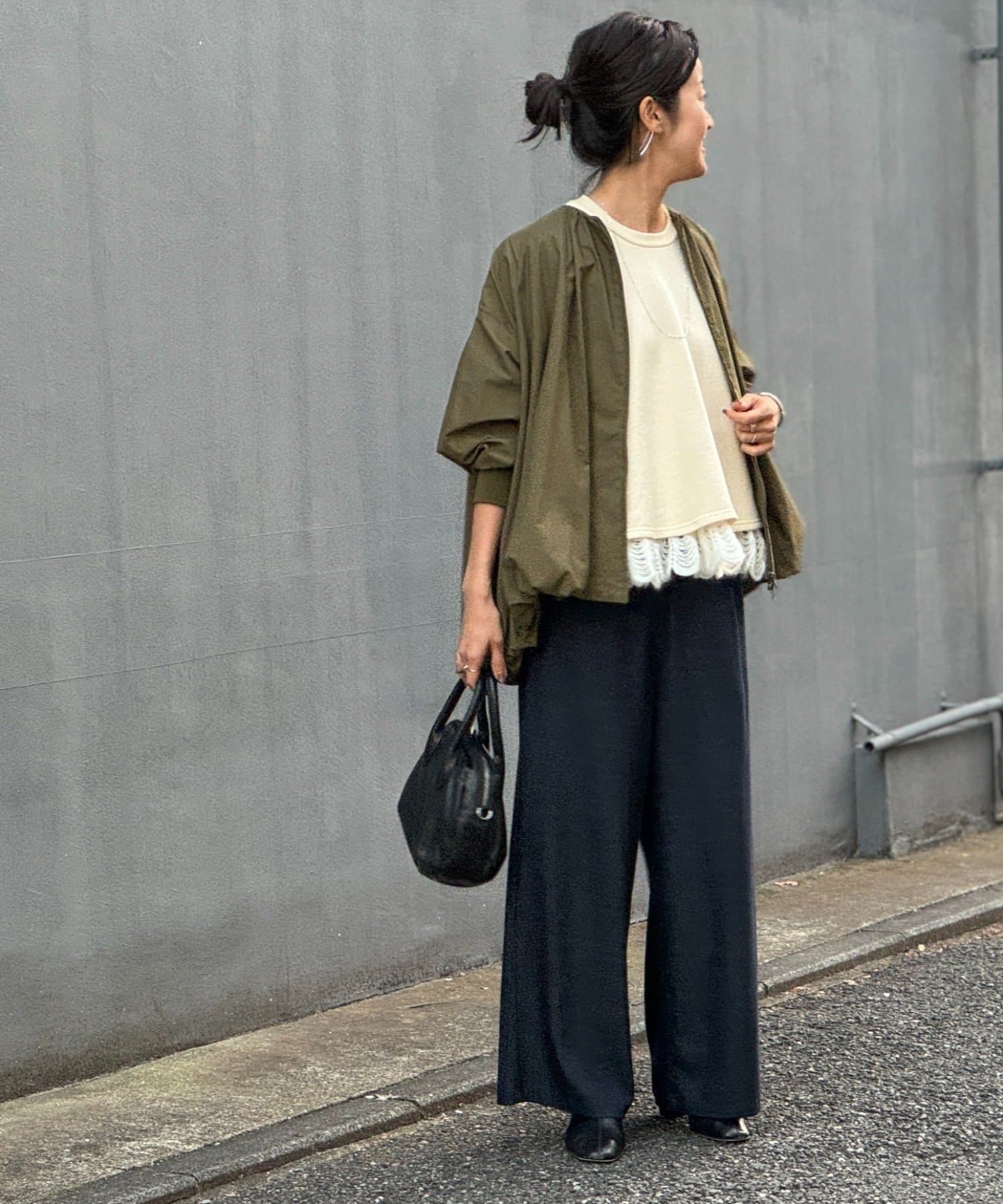 一枚で重ね着しているように見えるデザインで、レイヤードが苦手な方でも品よくバランスよく決まります。