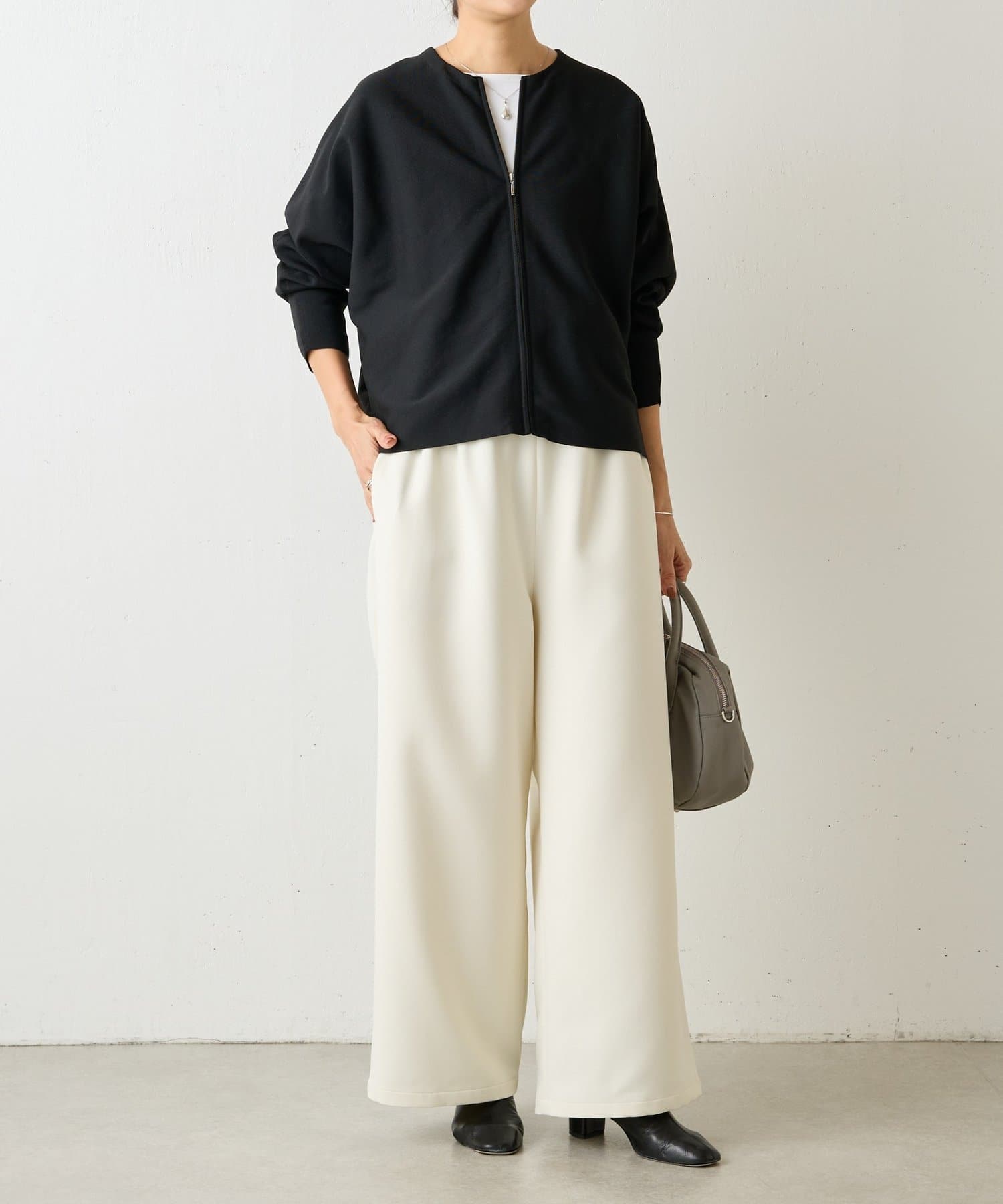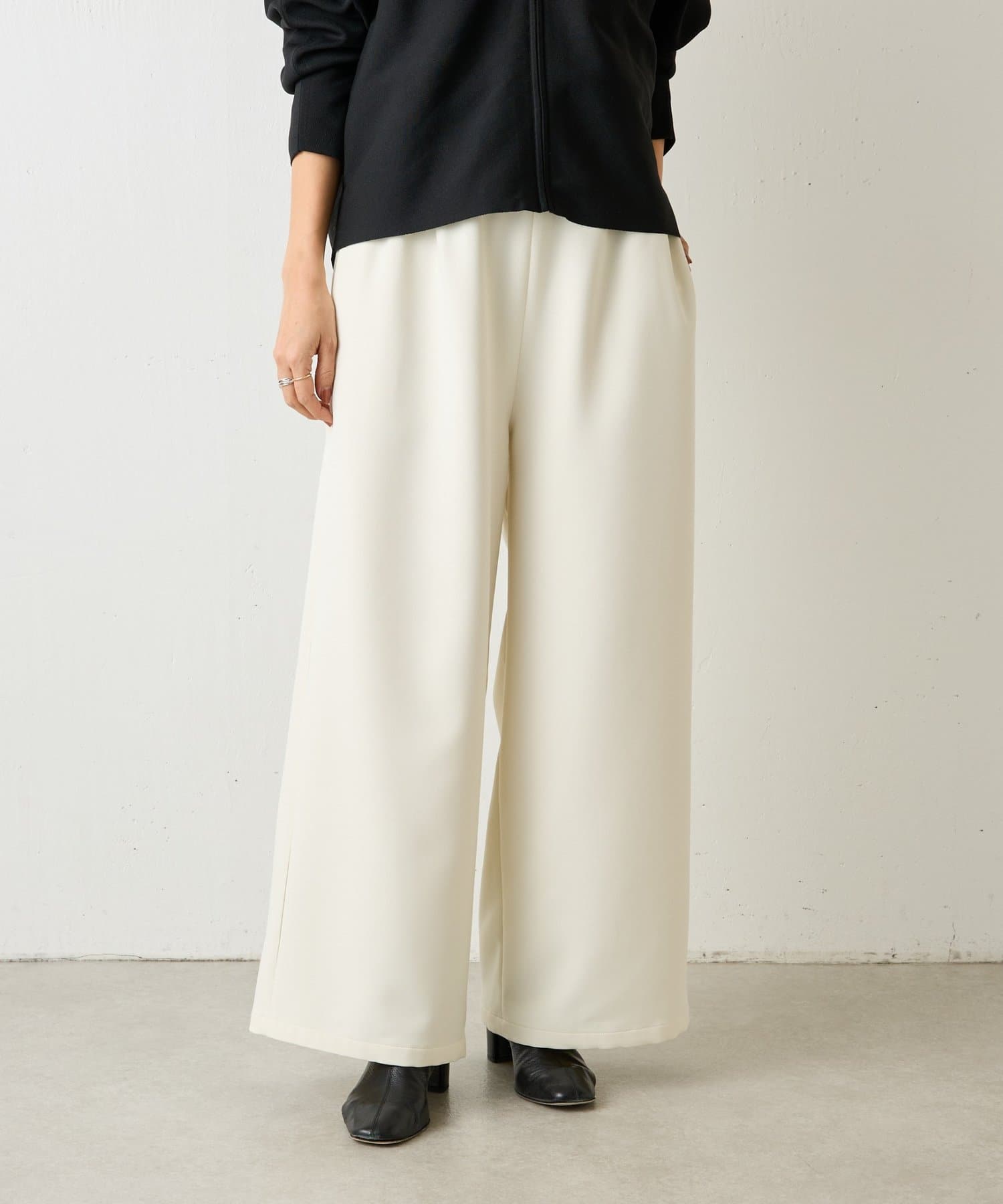 ウエスト部分は幅広のカットソー生地を使用し、締め付け感のない快適な穿き心地と、すっきりとした見た目を両立しています。