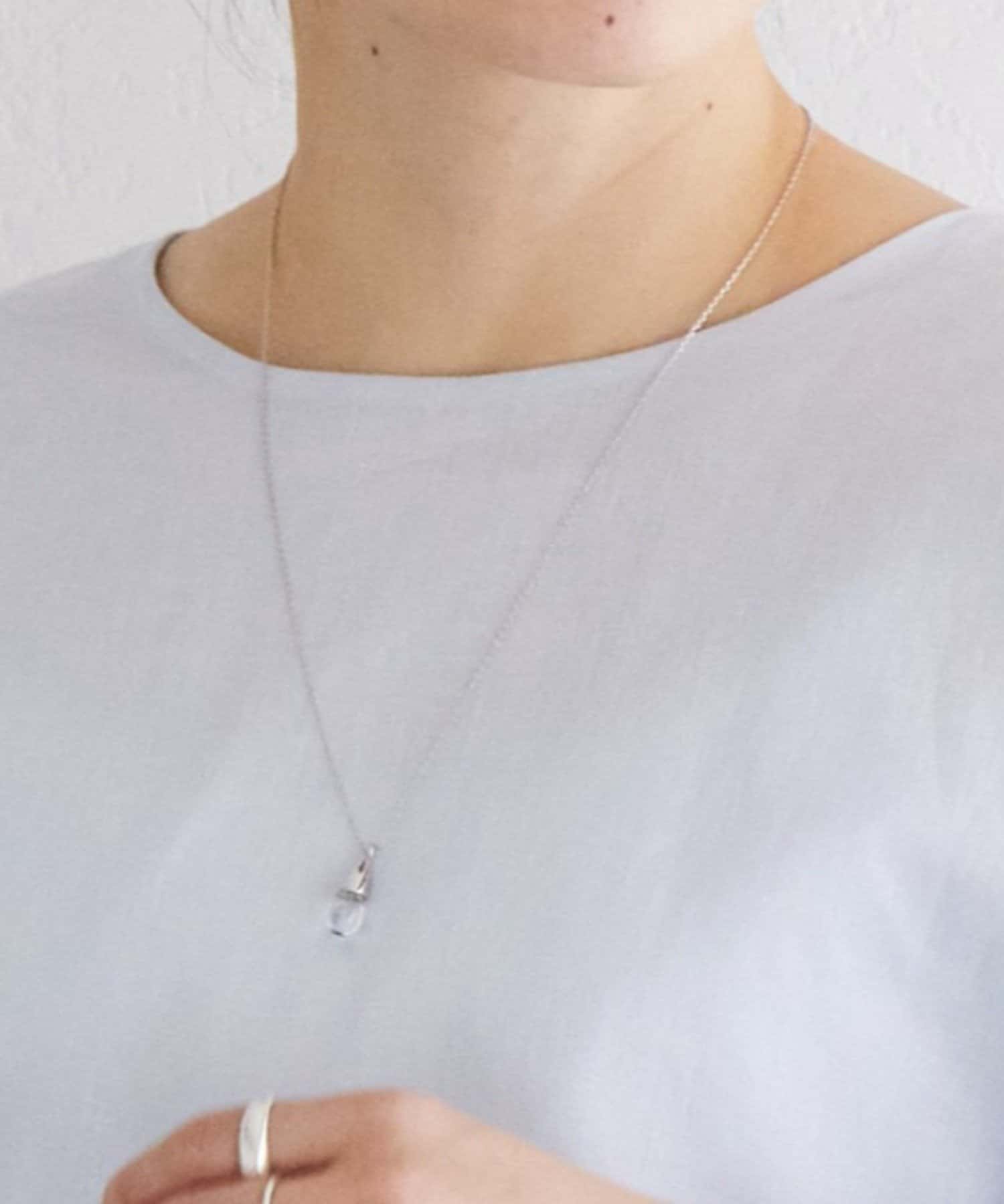 コロンとしたシルエットが愛らしいクリアドロップのネックレス。