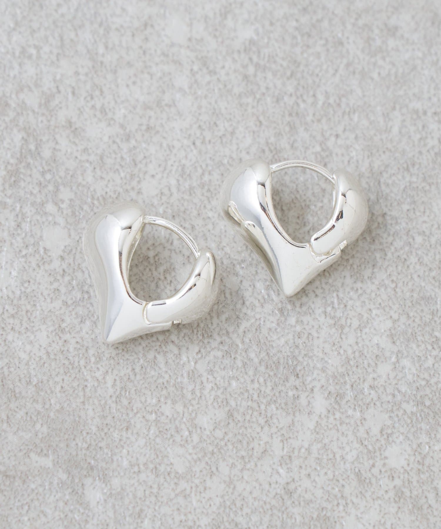 甘くなりがちなハートデザインを、艶のあるシルバーカラーで仕上げることで洗練された印象に。