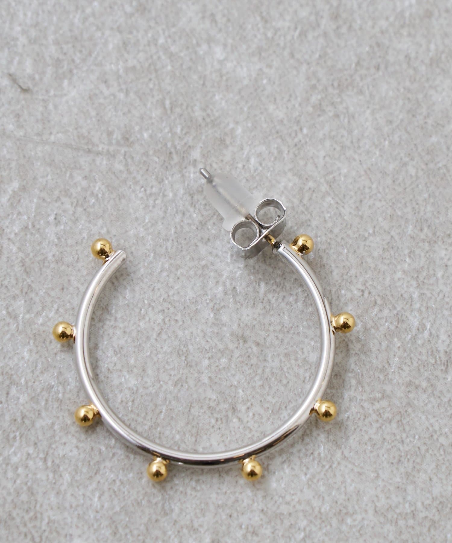 シルバーフープに小さなゴールドボールをあしらった、コンビカラーが印象的なピアス。