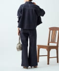 同素材のジャケットと合わせたセットアップスタイルもおすすめです。