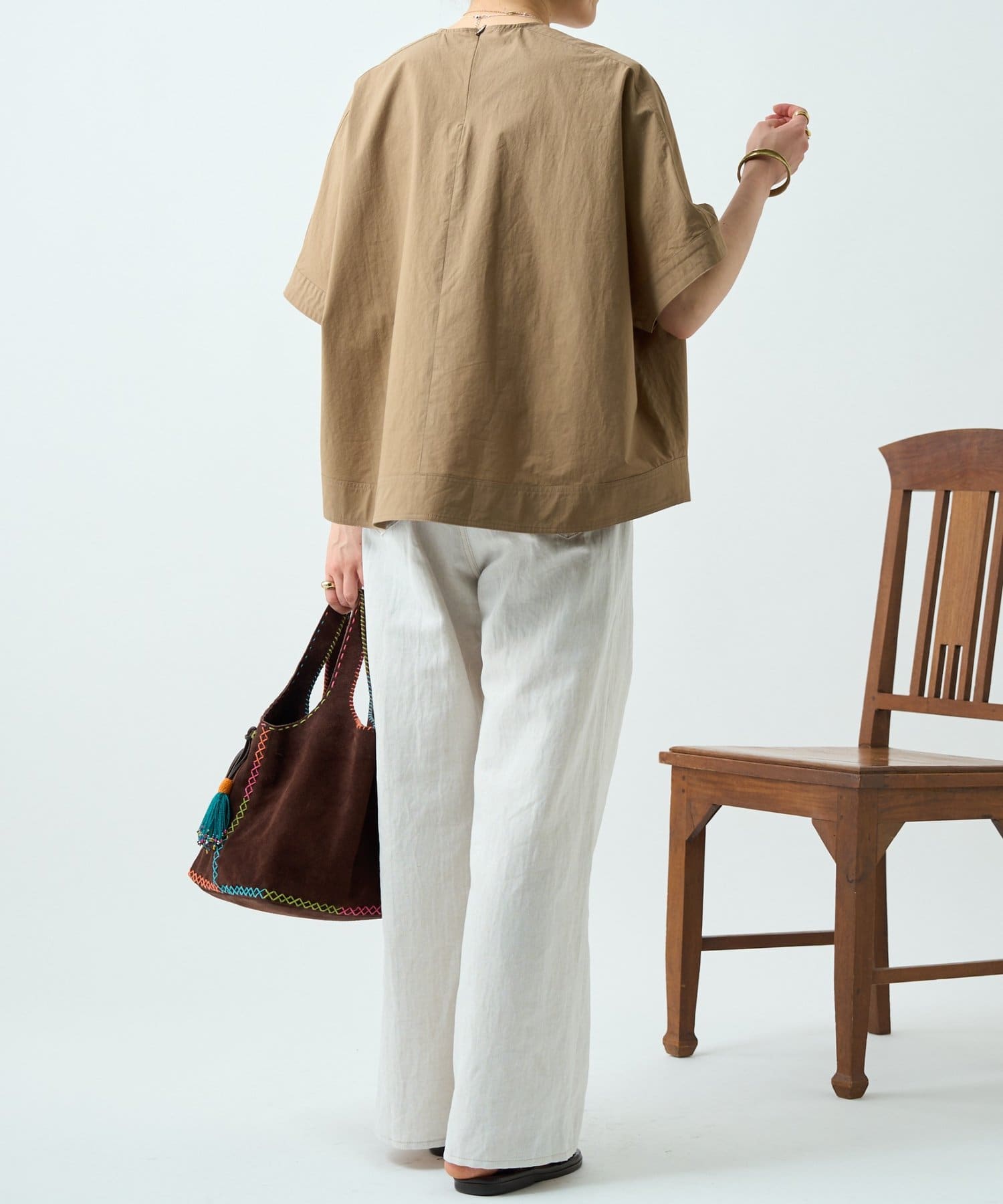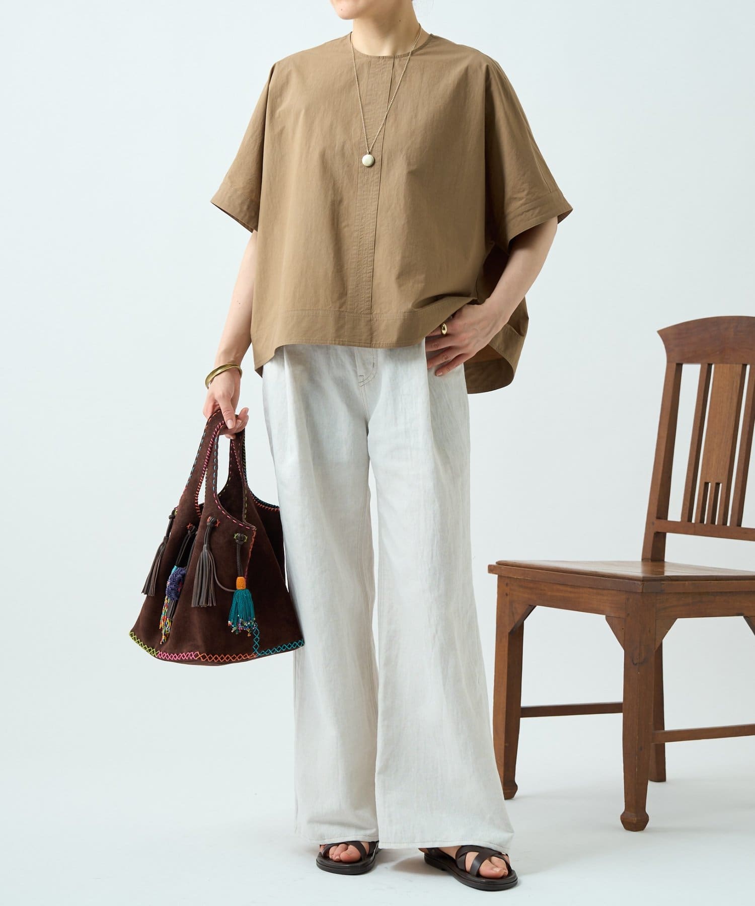 フロントにはタックを施し、ゆとりのあるワイドシルエットに。