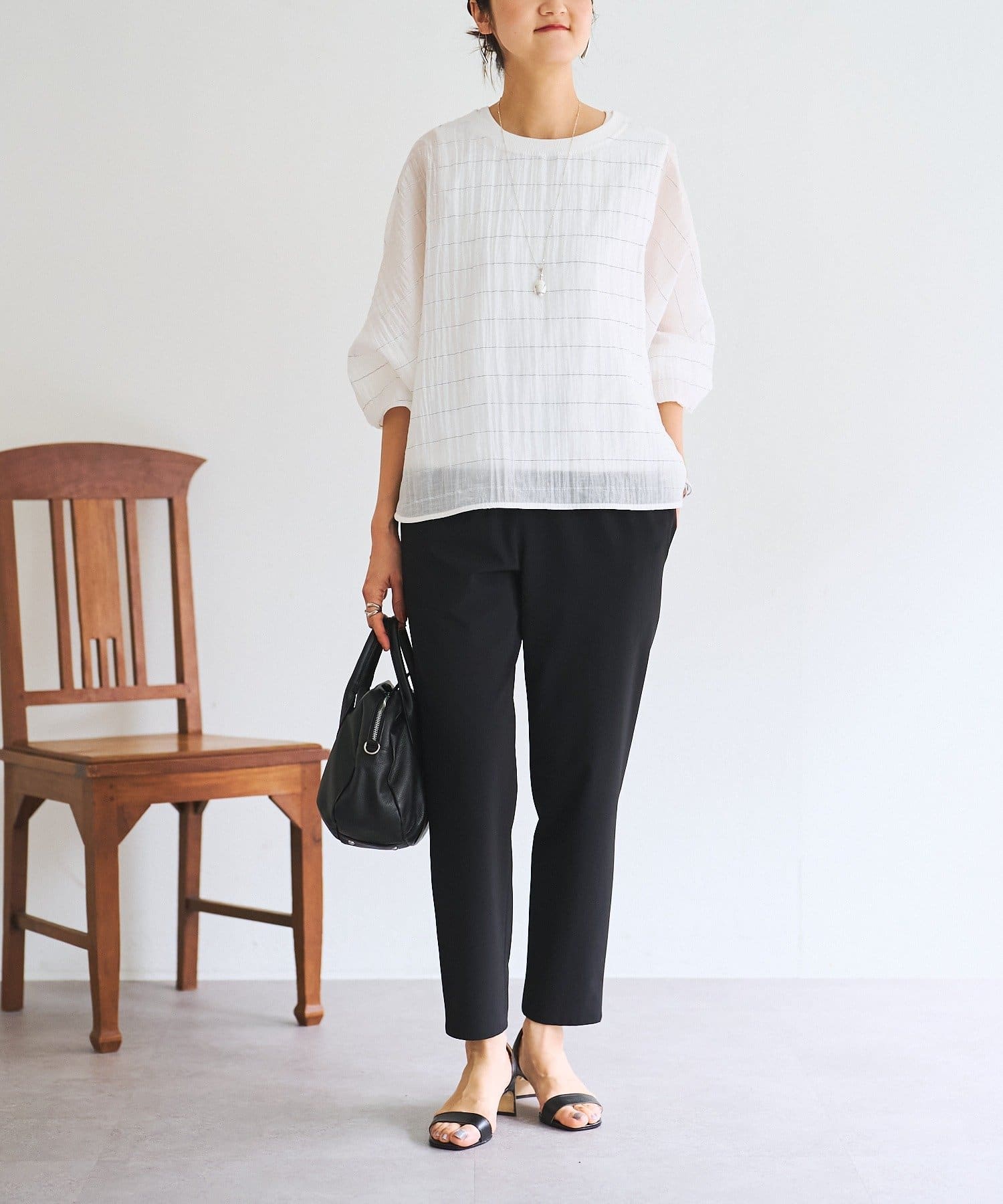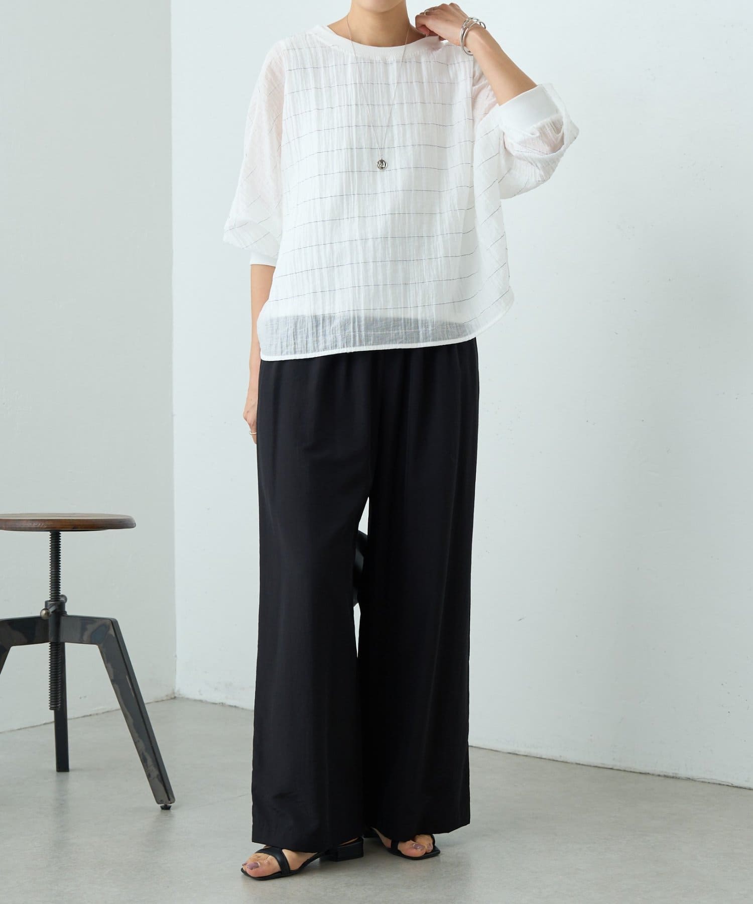 プルオーバーは、軽やかな透け感が特徴のシアー素材を使用。