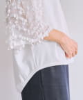 シンプルなボトムと合わせるだけで、装いに華やぎを添えてくれる一枚。