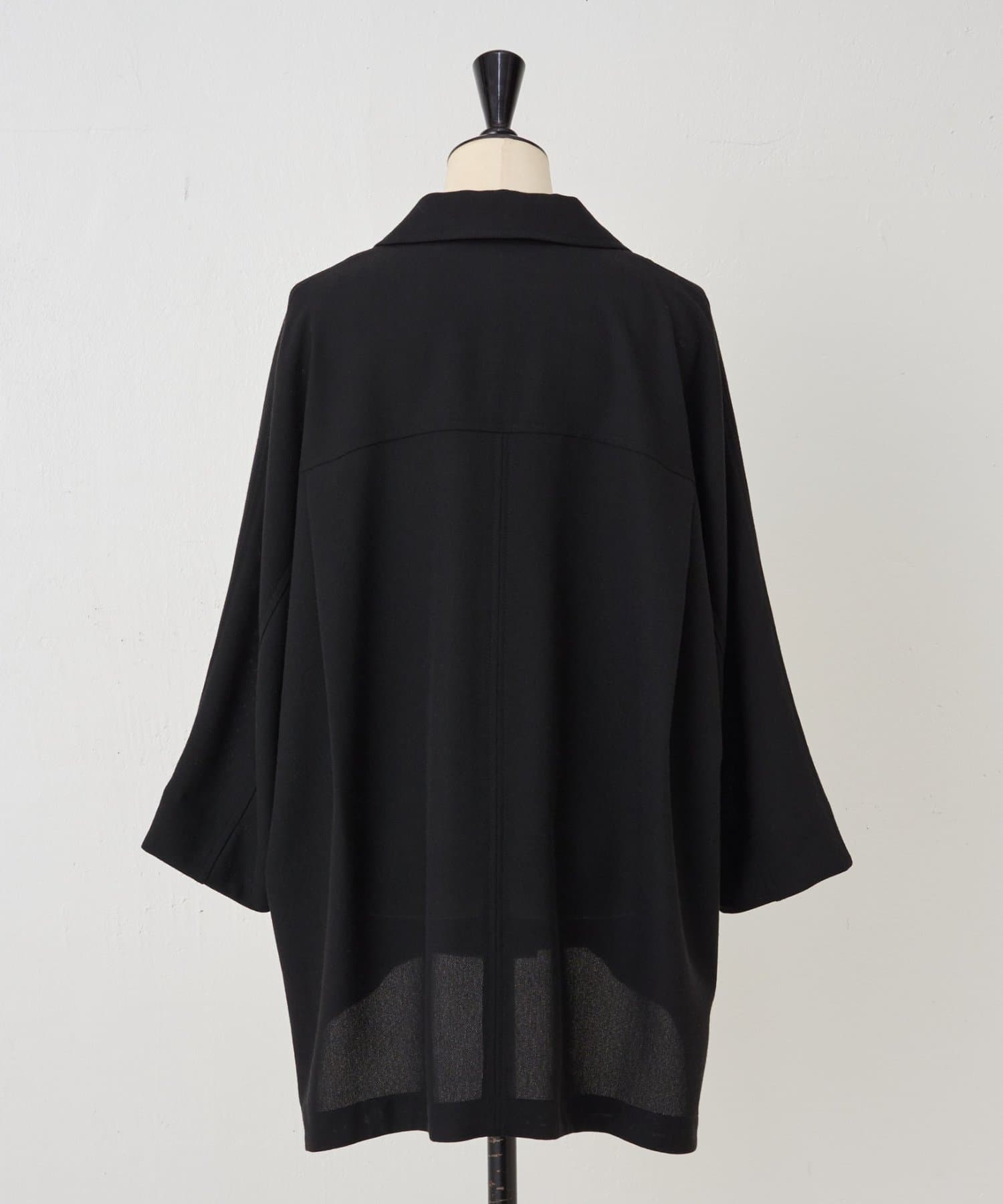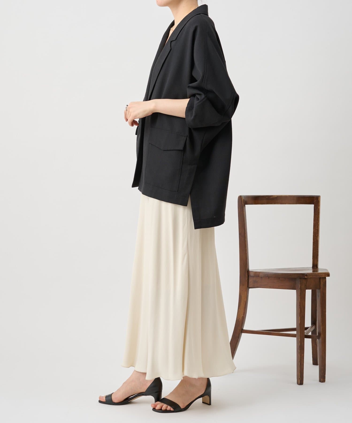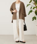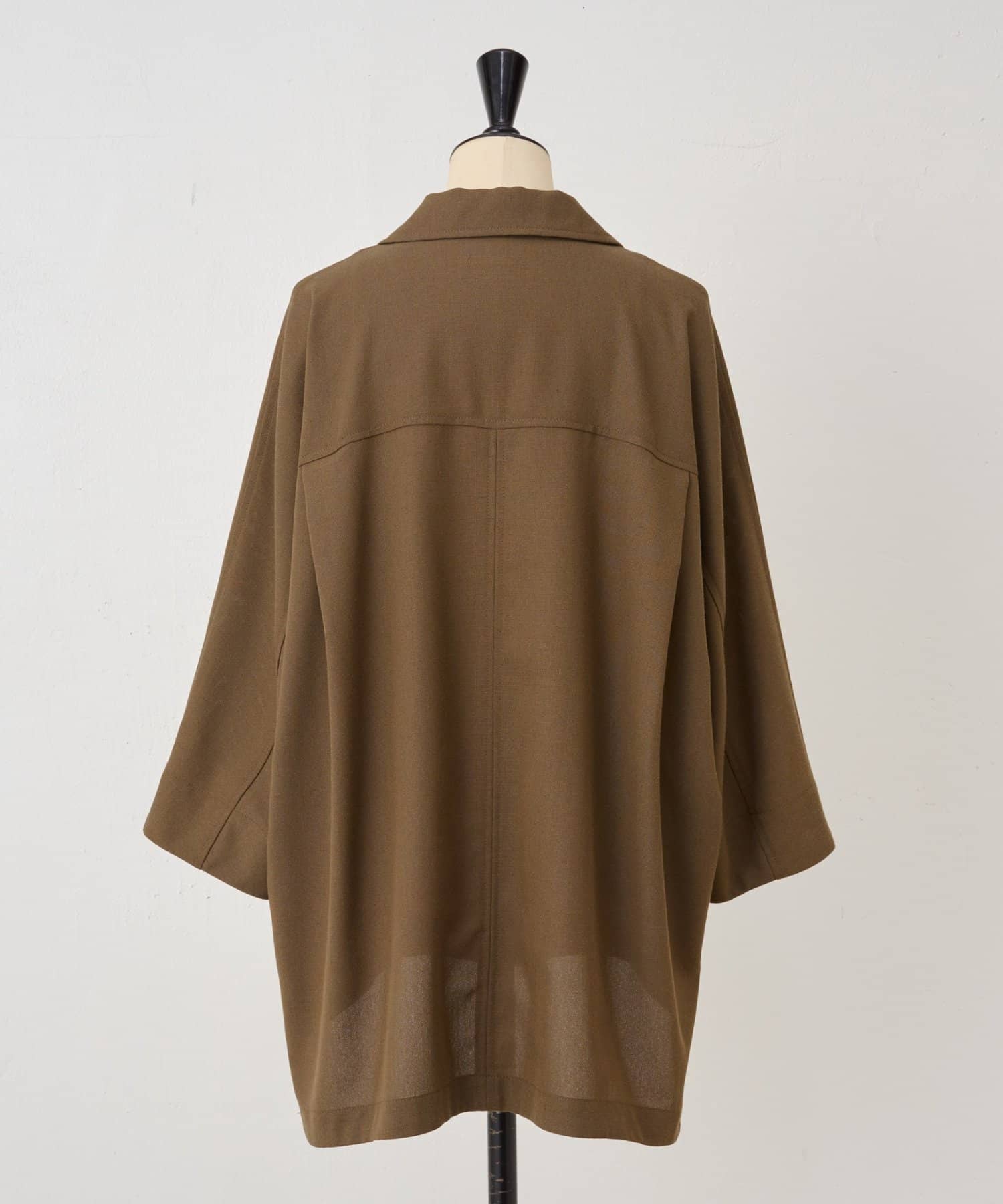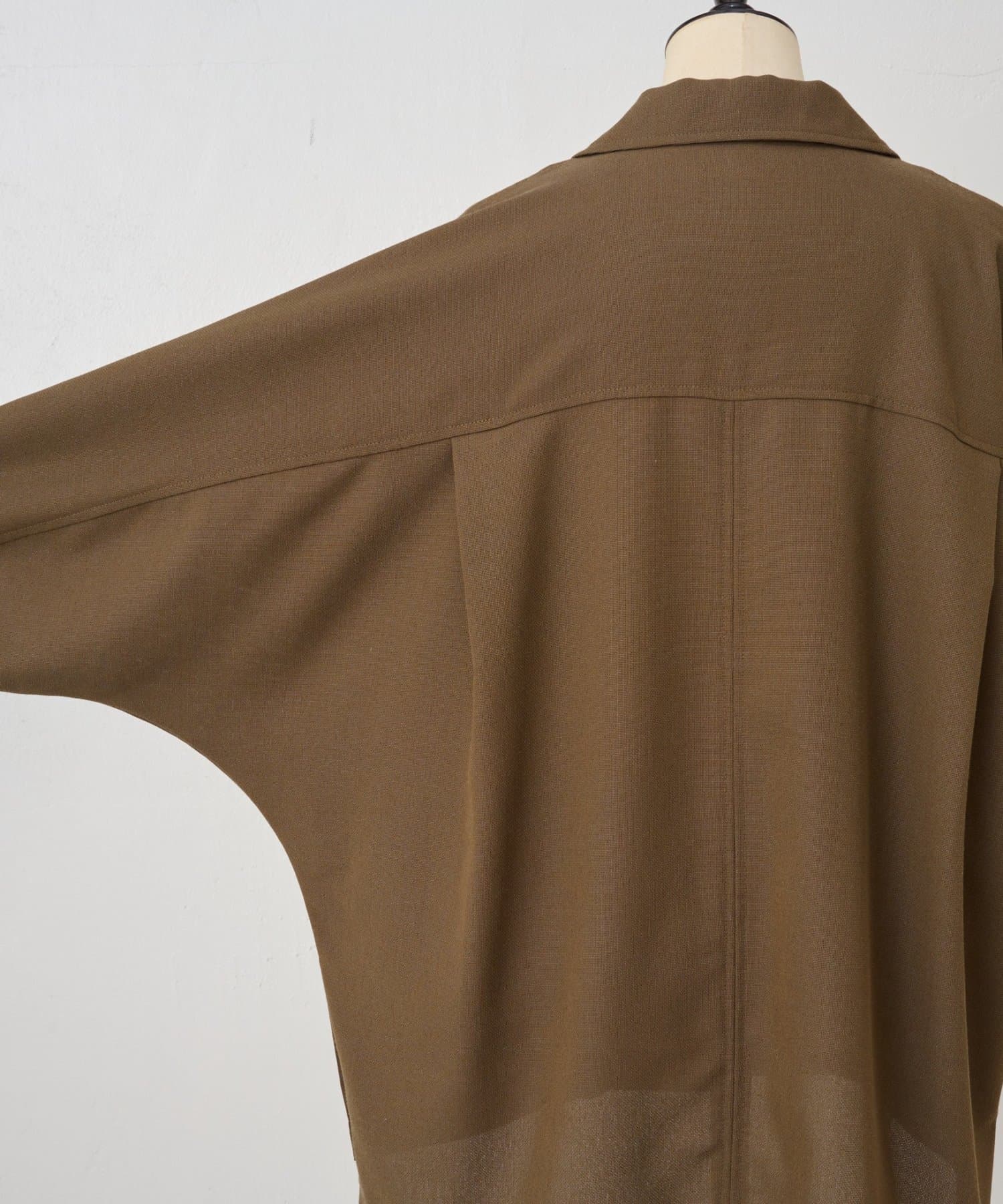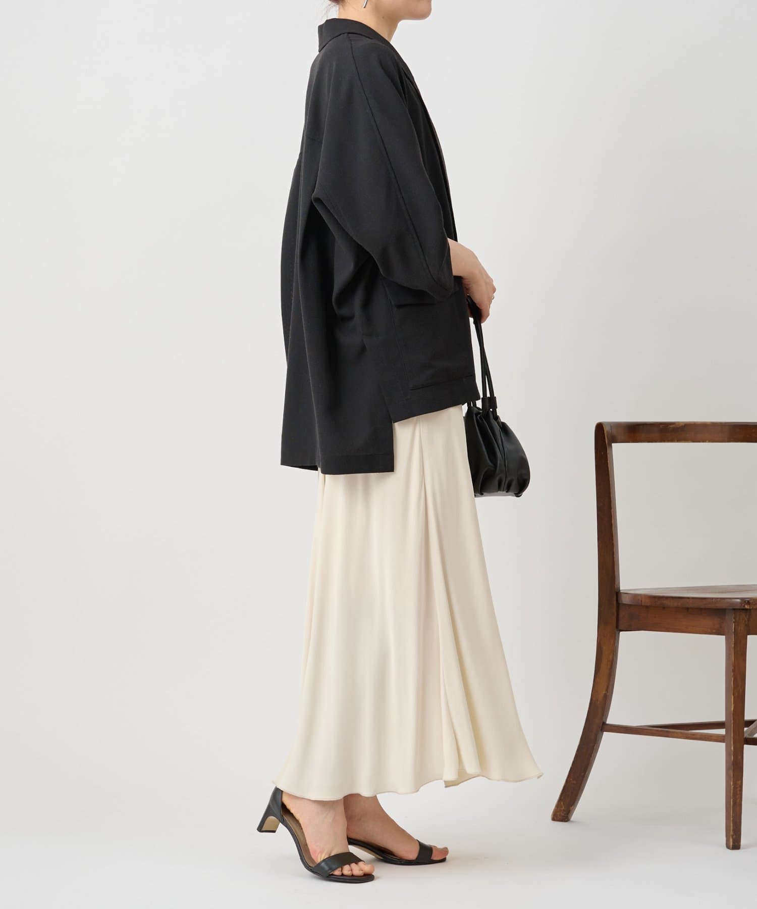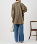 前後差のある丈とスリット入りで、オーバーサイズでもすっきりとした印象に仕上げています。