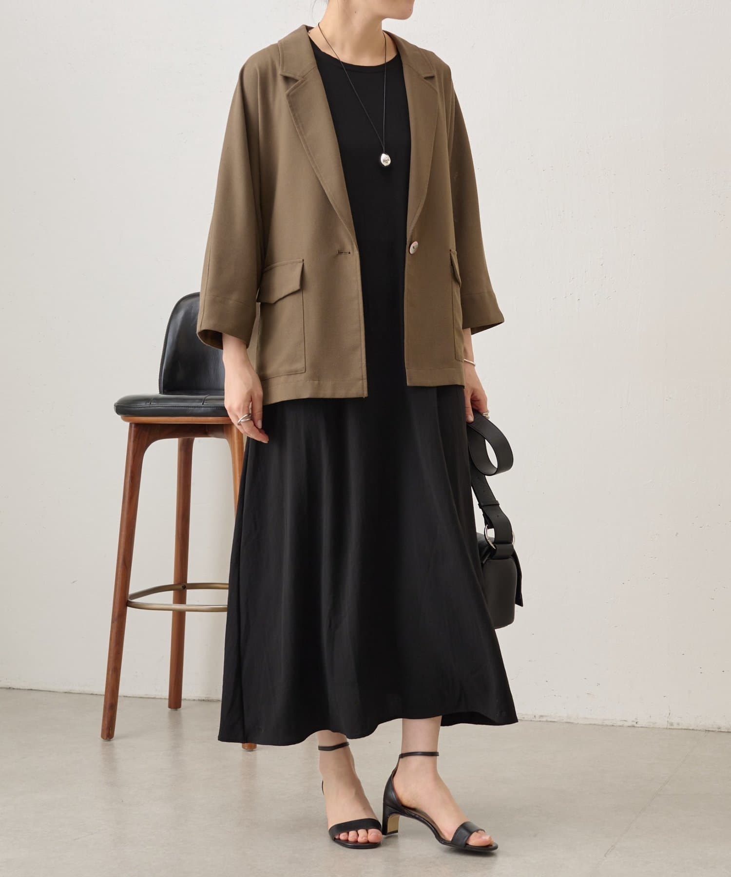 ドルマンスリーブが抜け感を演出し、動きやすさも兼ね備えています。