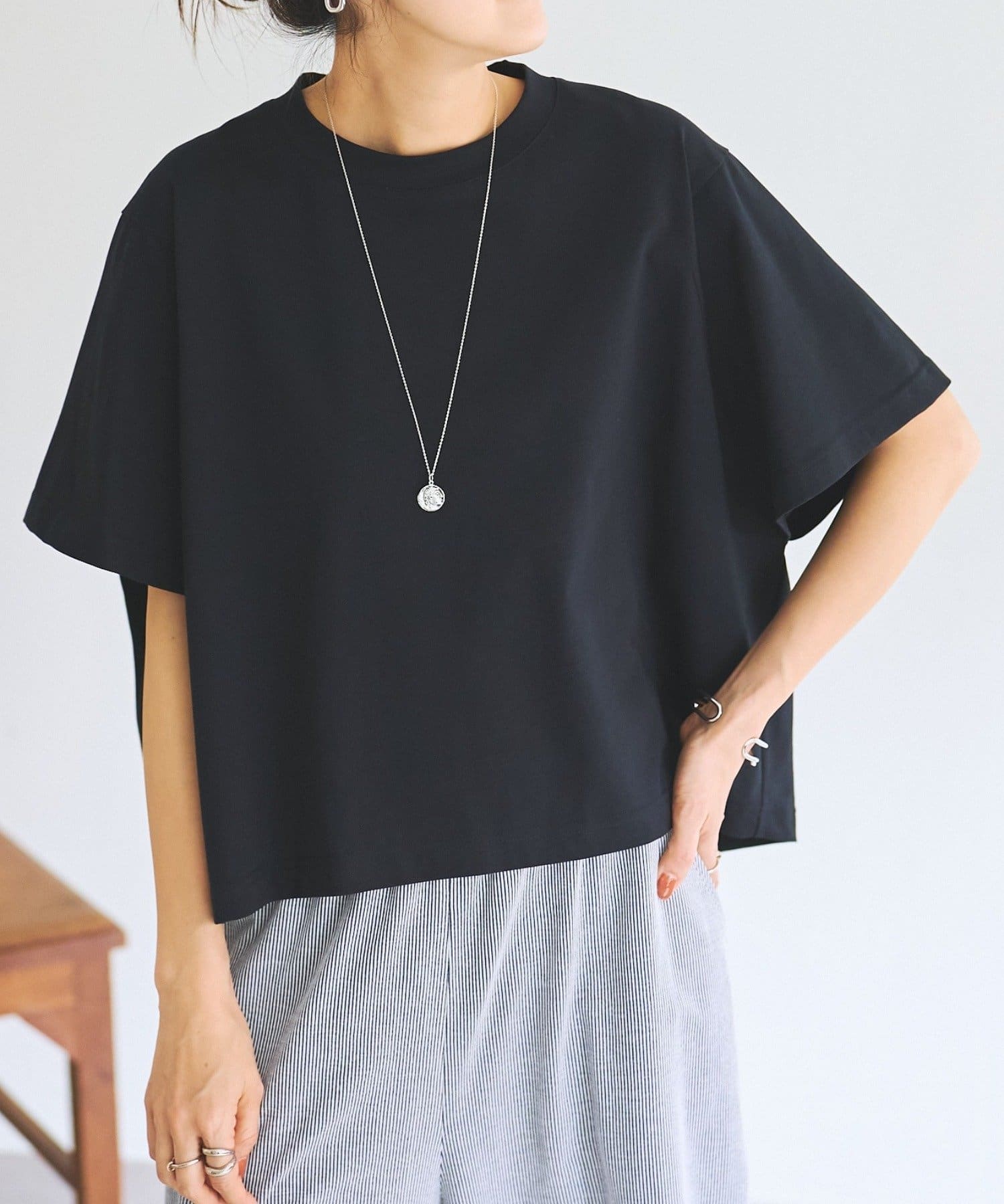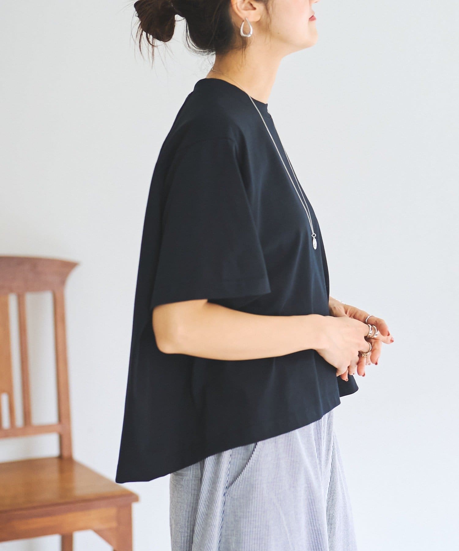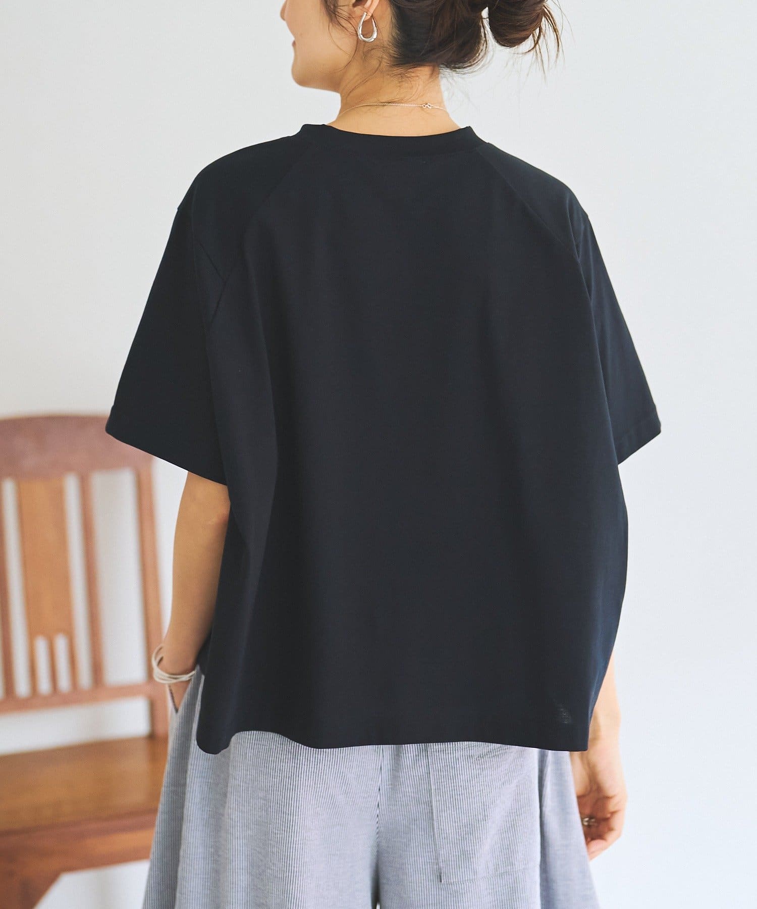 身幅にゆとりを持たせたボックスシルエットで、身体のラインを拾わずリラックス感のあるスクエアTシャツ。