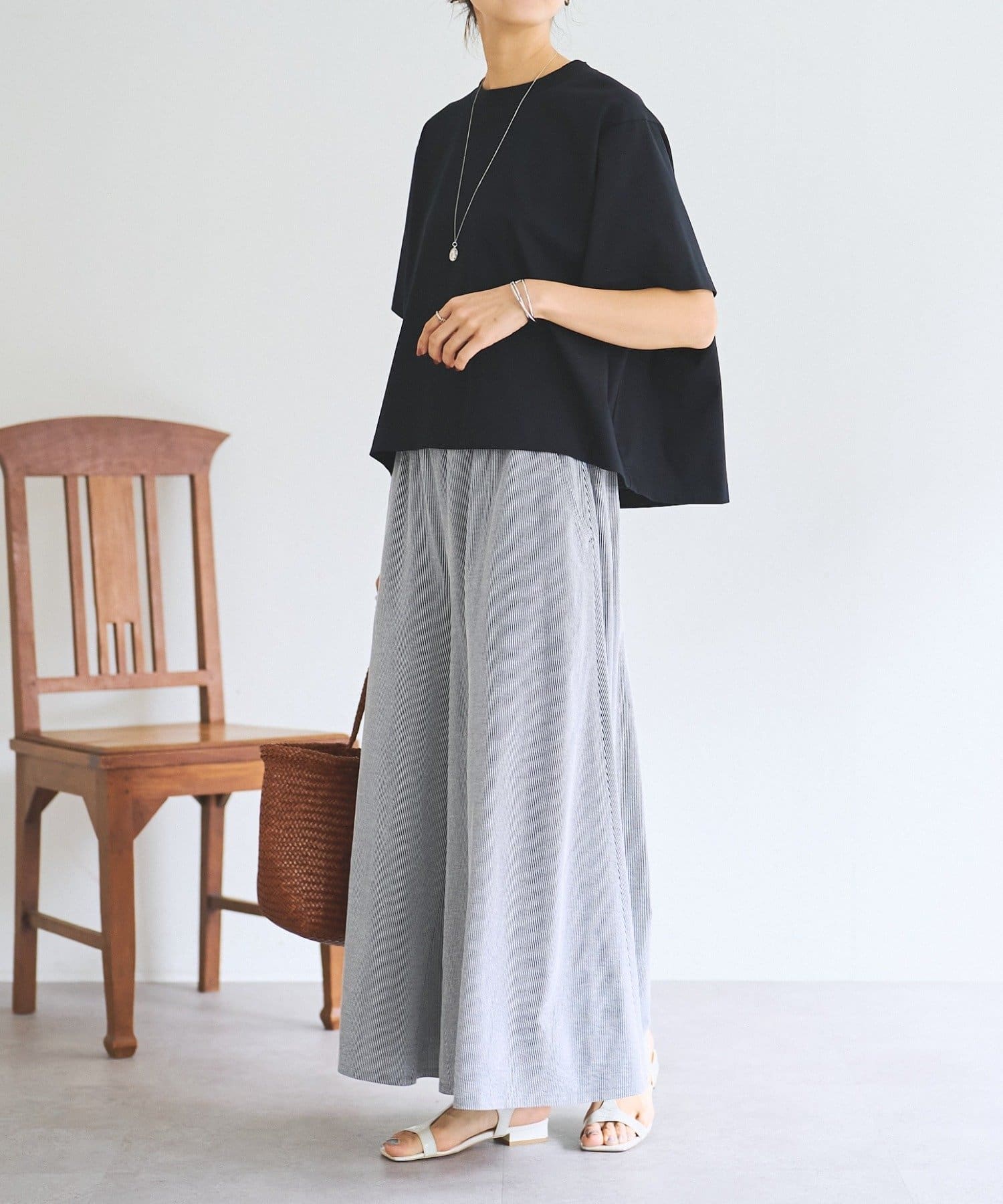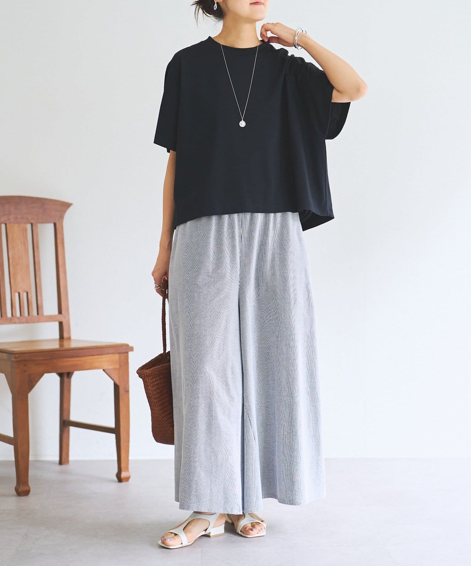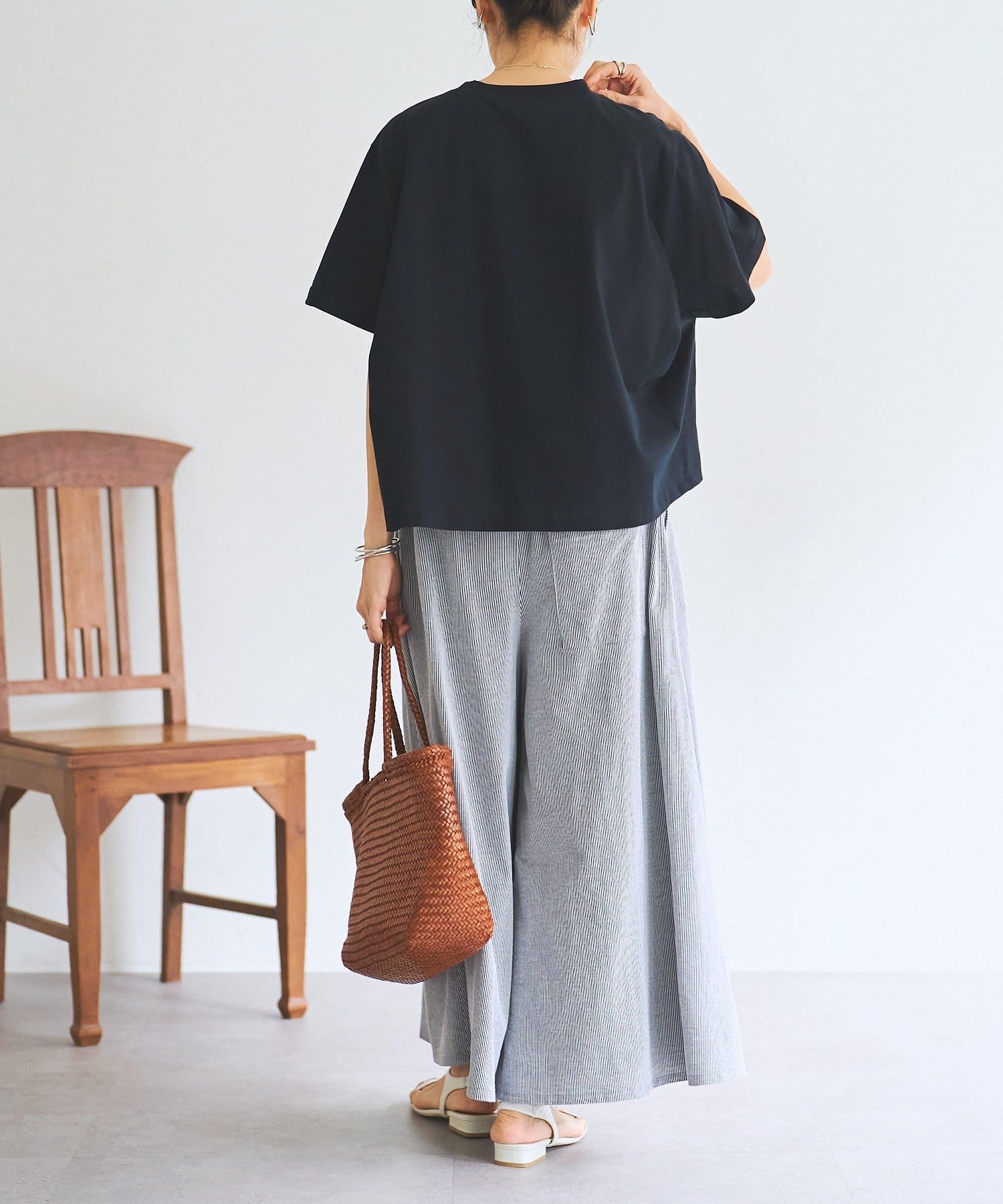 気になる二の腕をカバーしながら、自然な動きのあるシルエットを演出します。