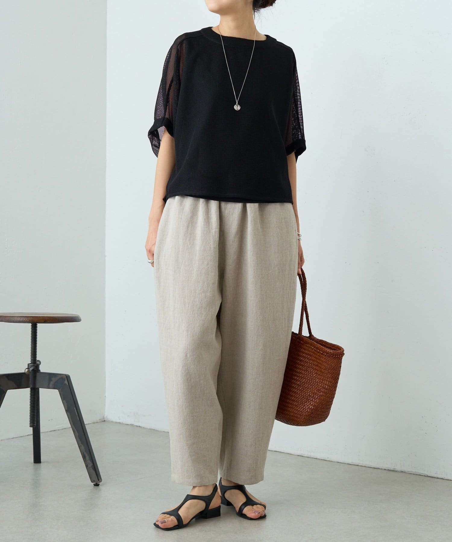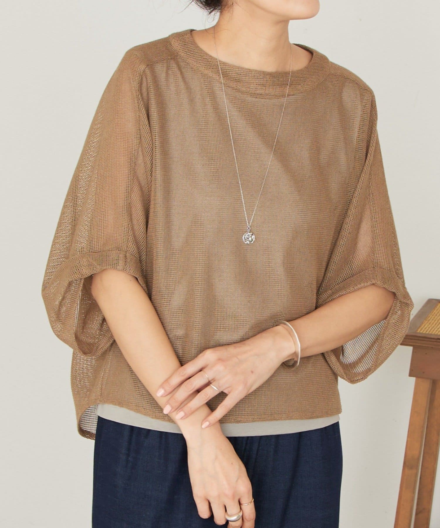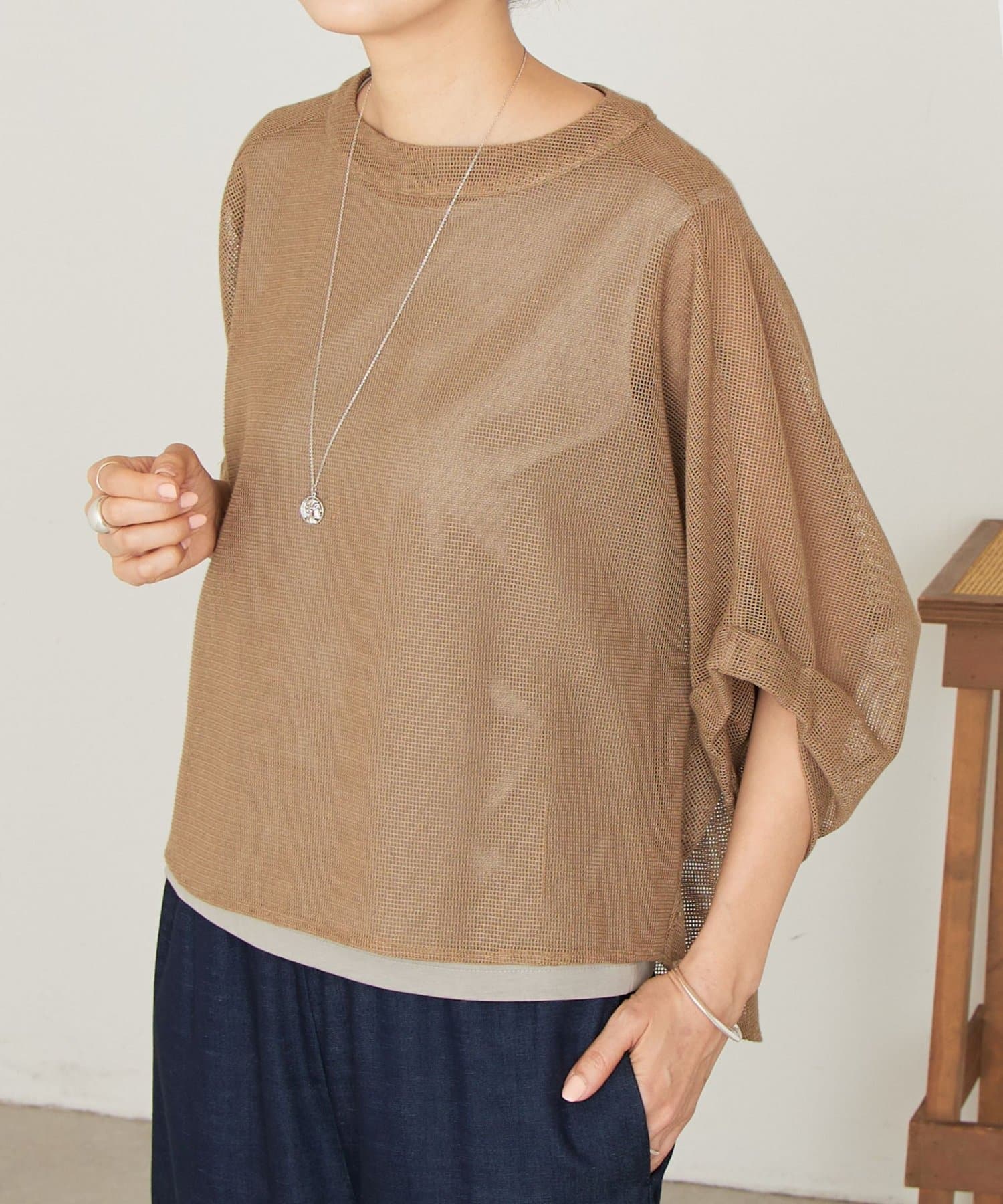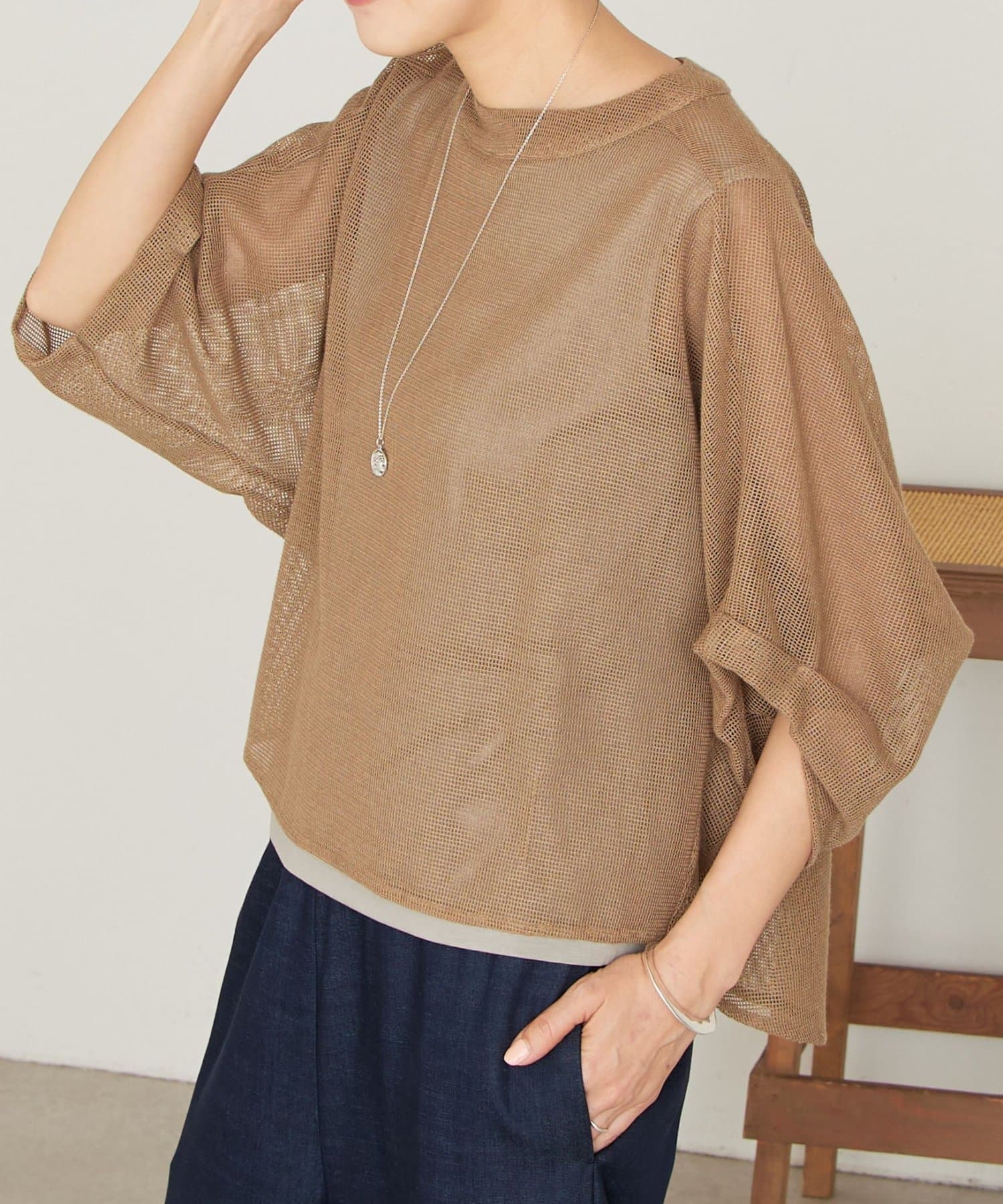 清涼感のあるカラミ織のプルオーバー。