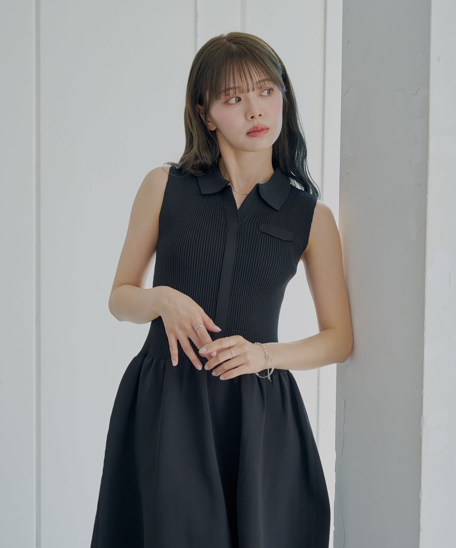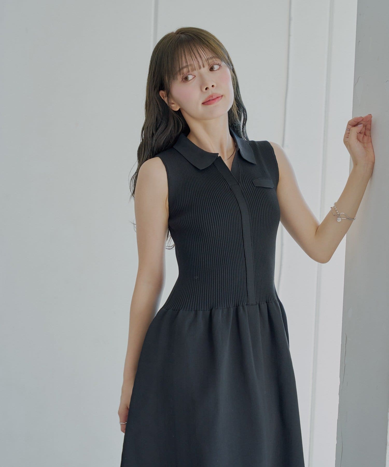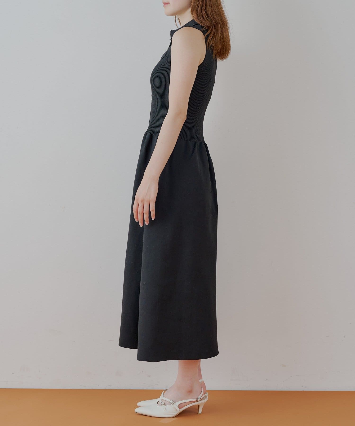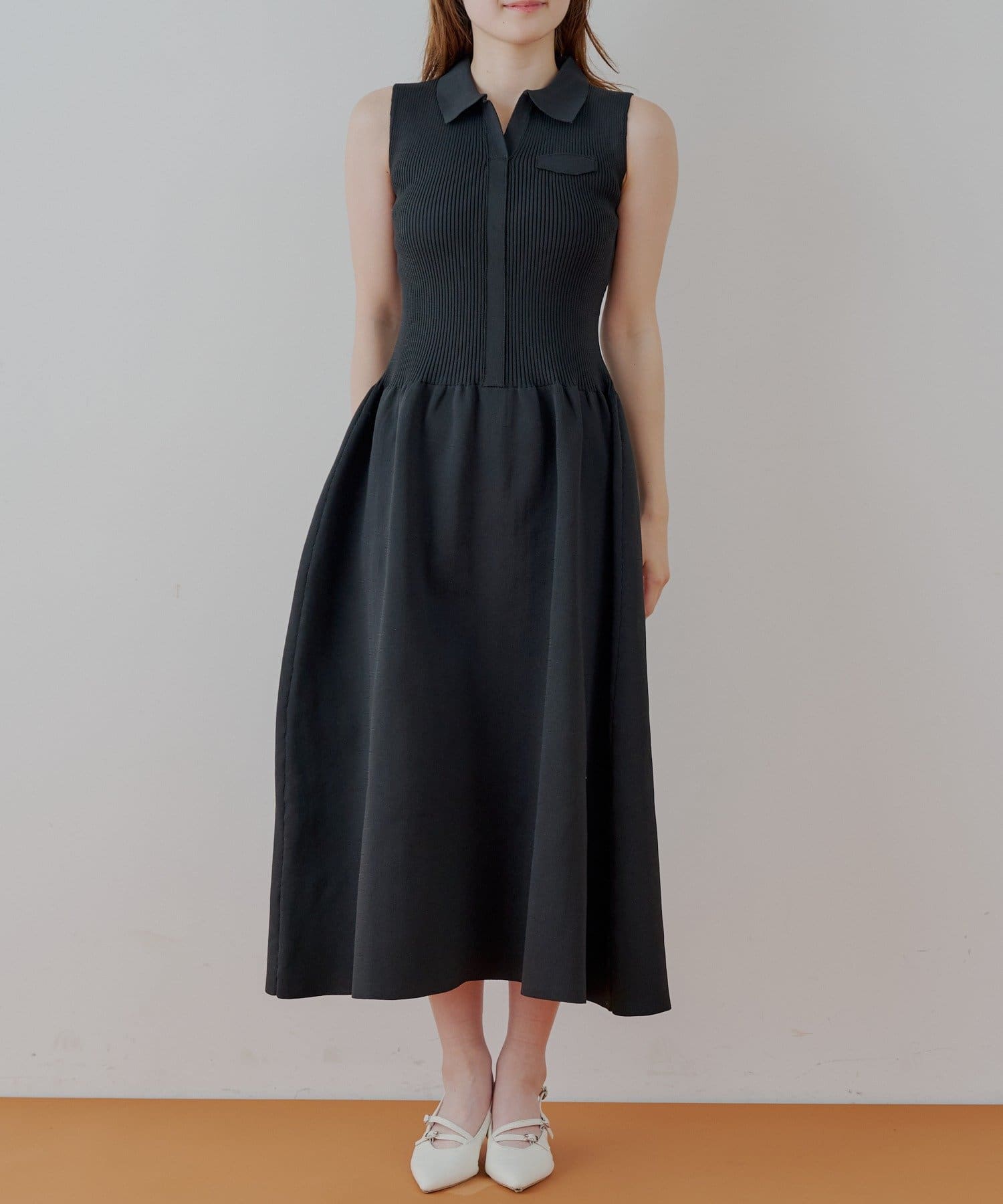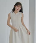 ほんのり甘いフレアシルエットが魅力の襟付ドッキングフレアワンピース
