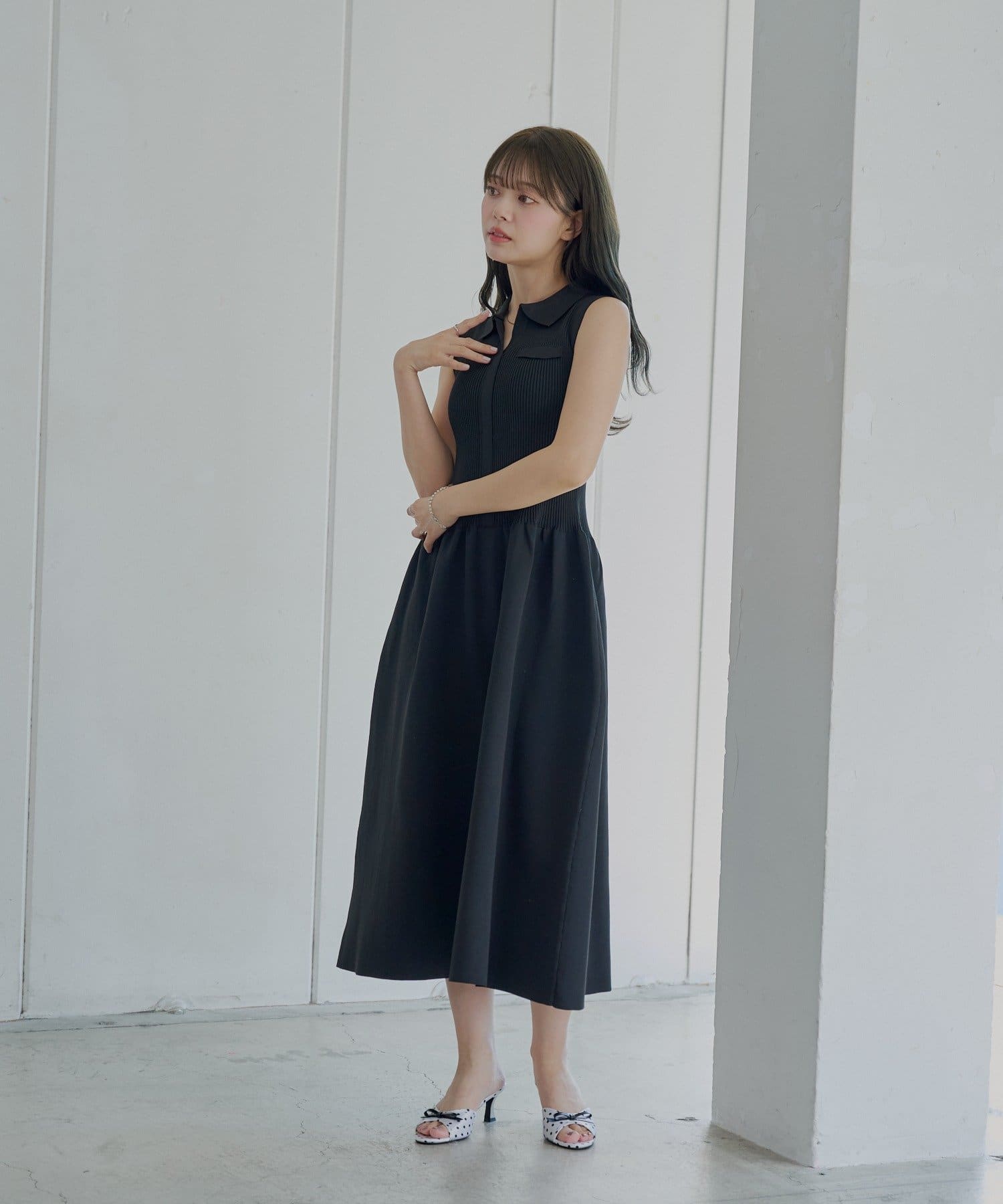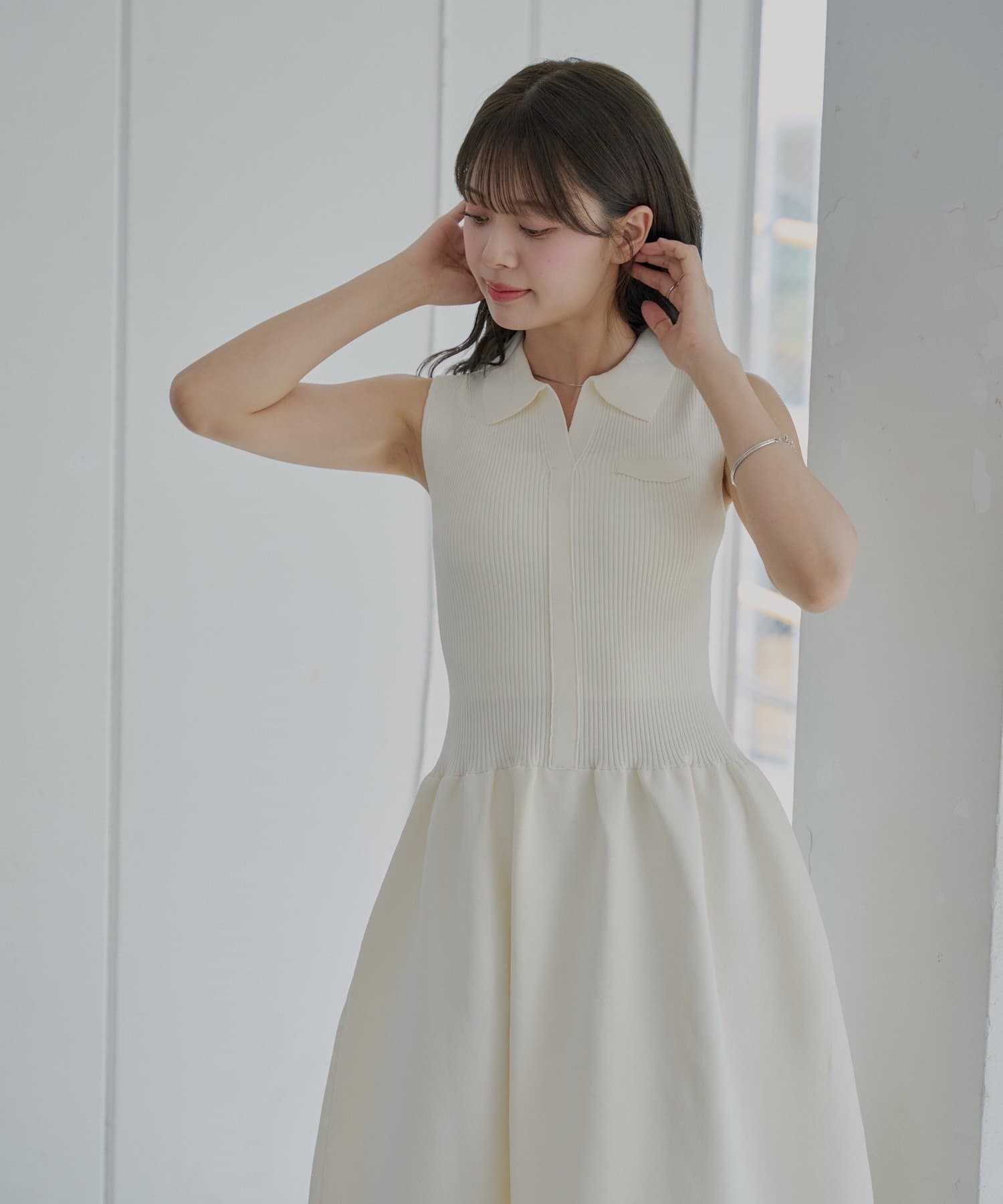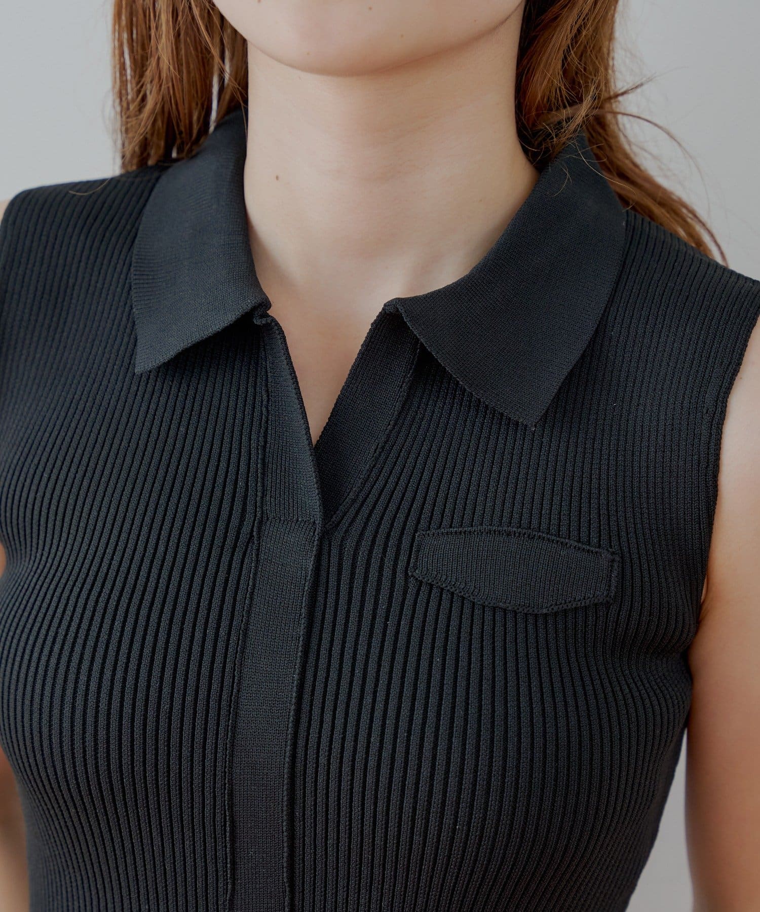 ・すっきりとしたノースリーブにきちんと感のあるポロ襟が、大人の女性らしさを引き立てます。