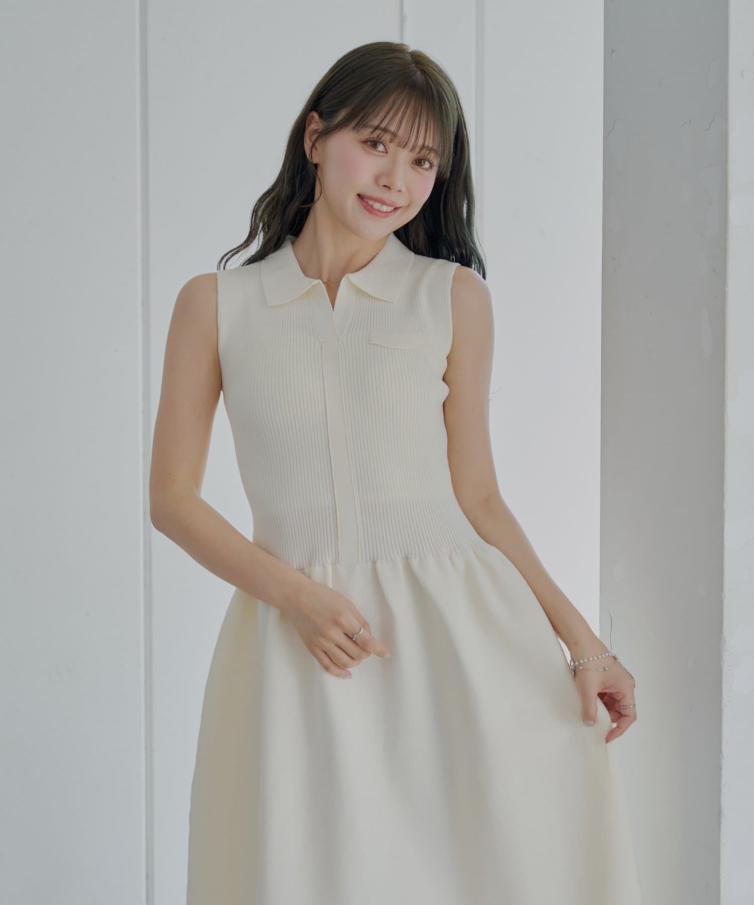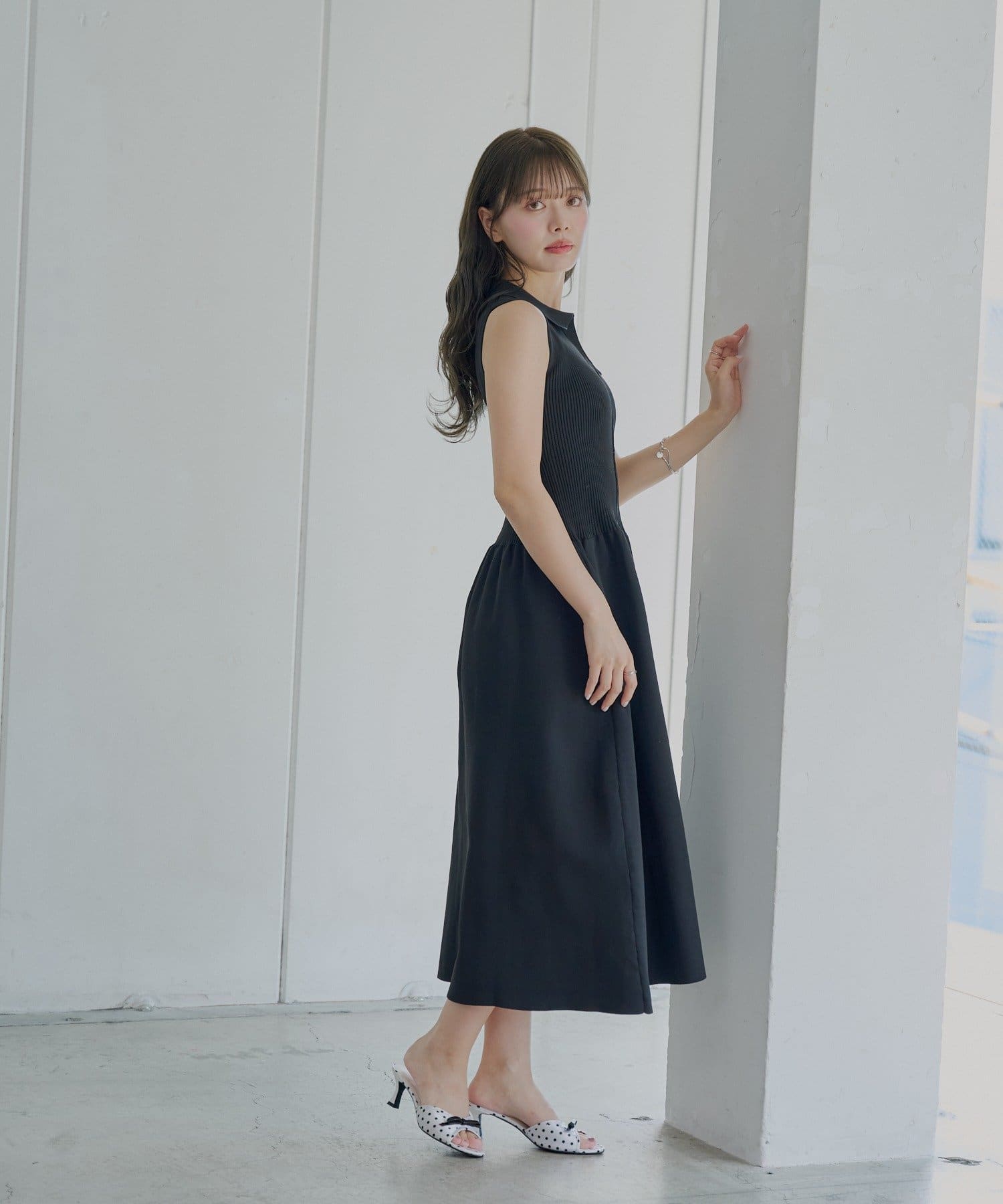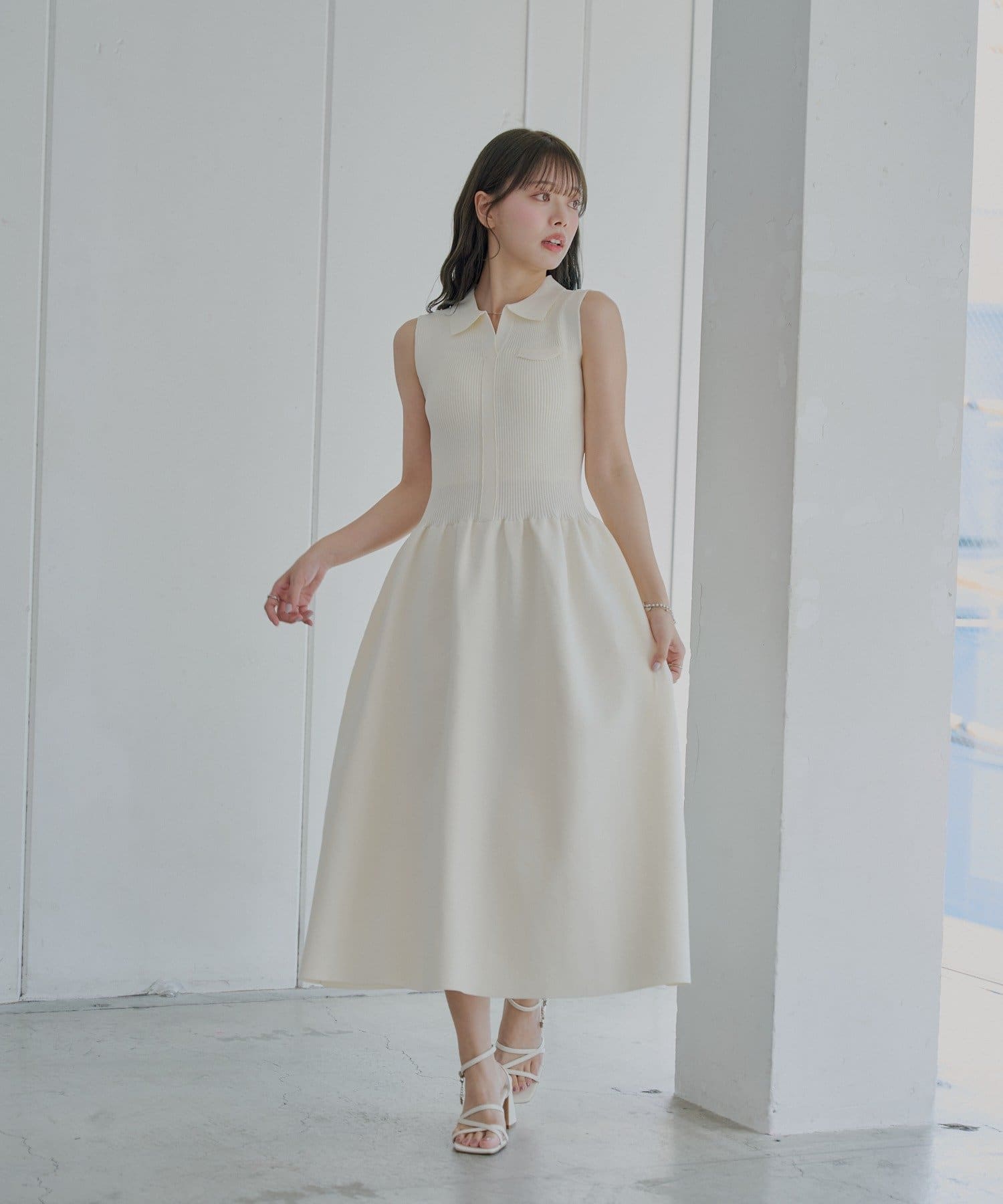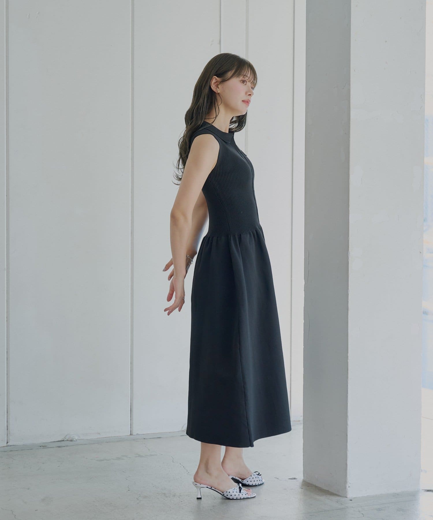 ・すっきりとしたノースリーブにきちんと感のあるポロ襟が、大人の女性らしさを引き立てます。