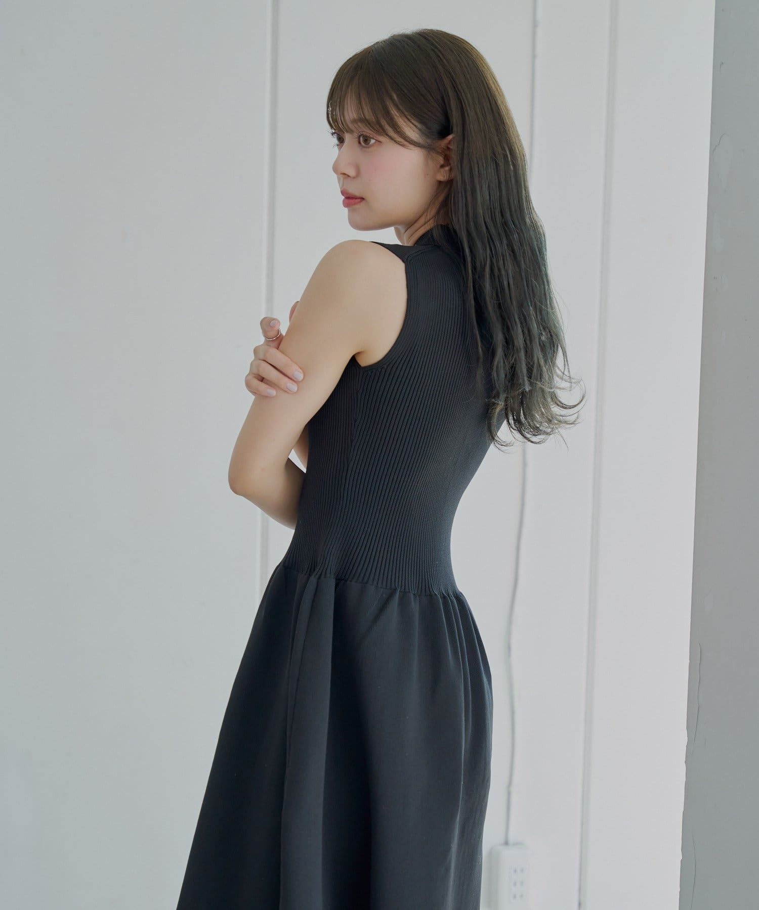 ・トップス部分は縦のリブ編みでスッキリと見せてくれます。