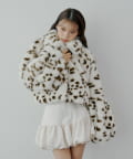 ・大胆なアニマル柄がコーデの主役にもなる襟取り外しショートアニマルコート。