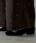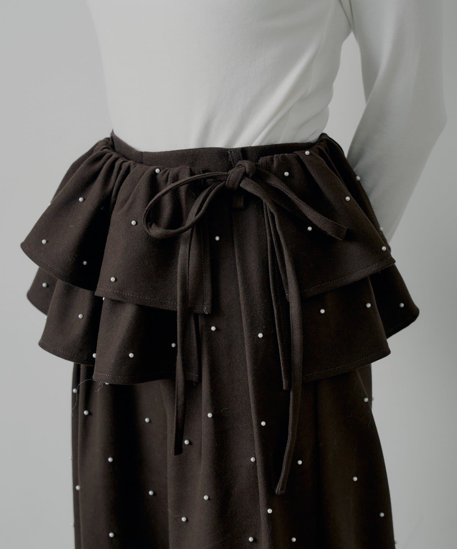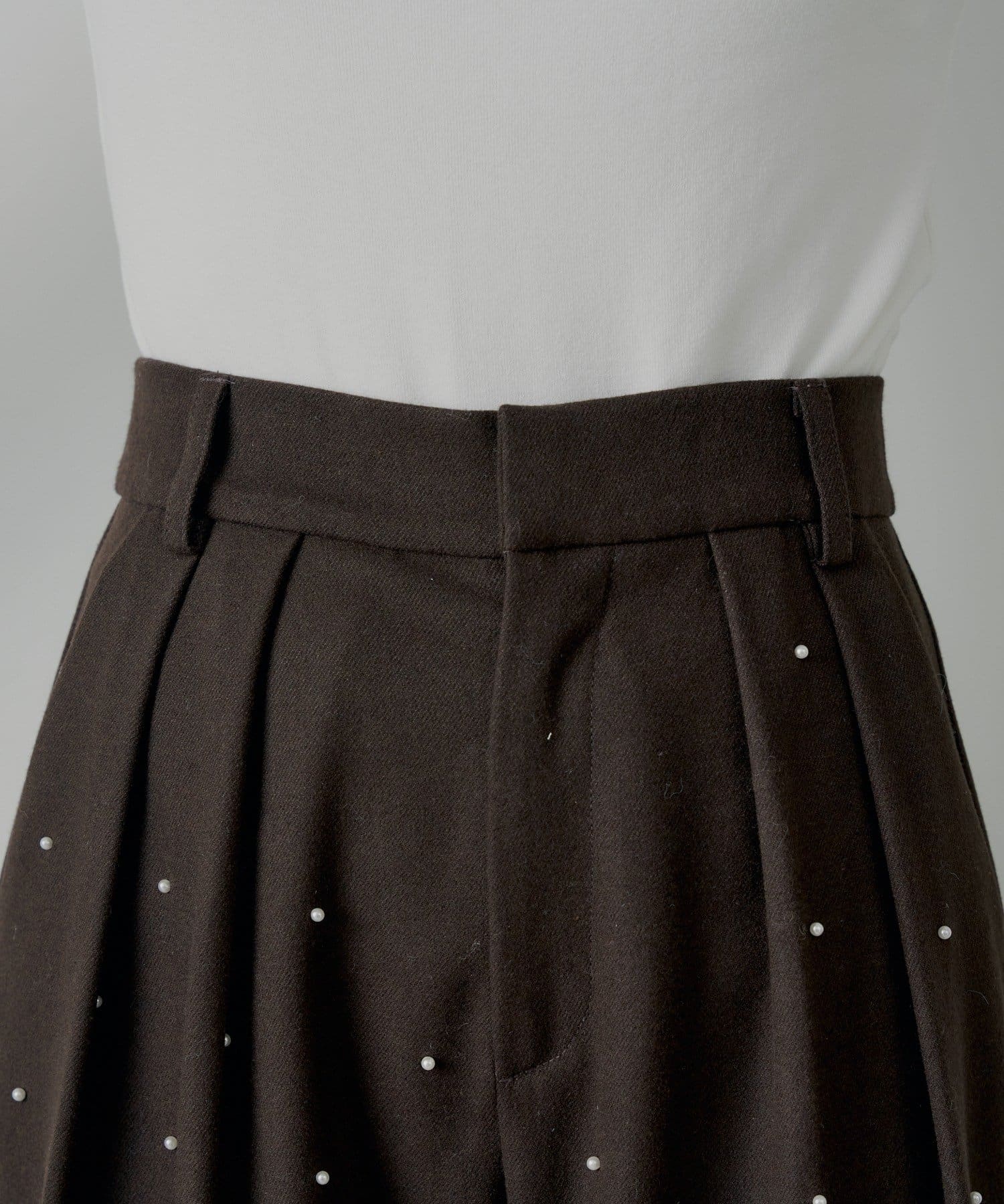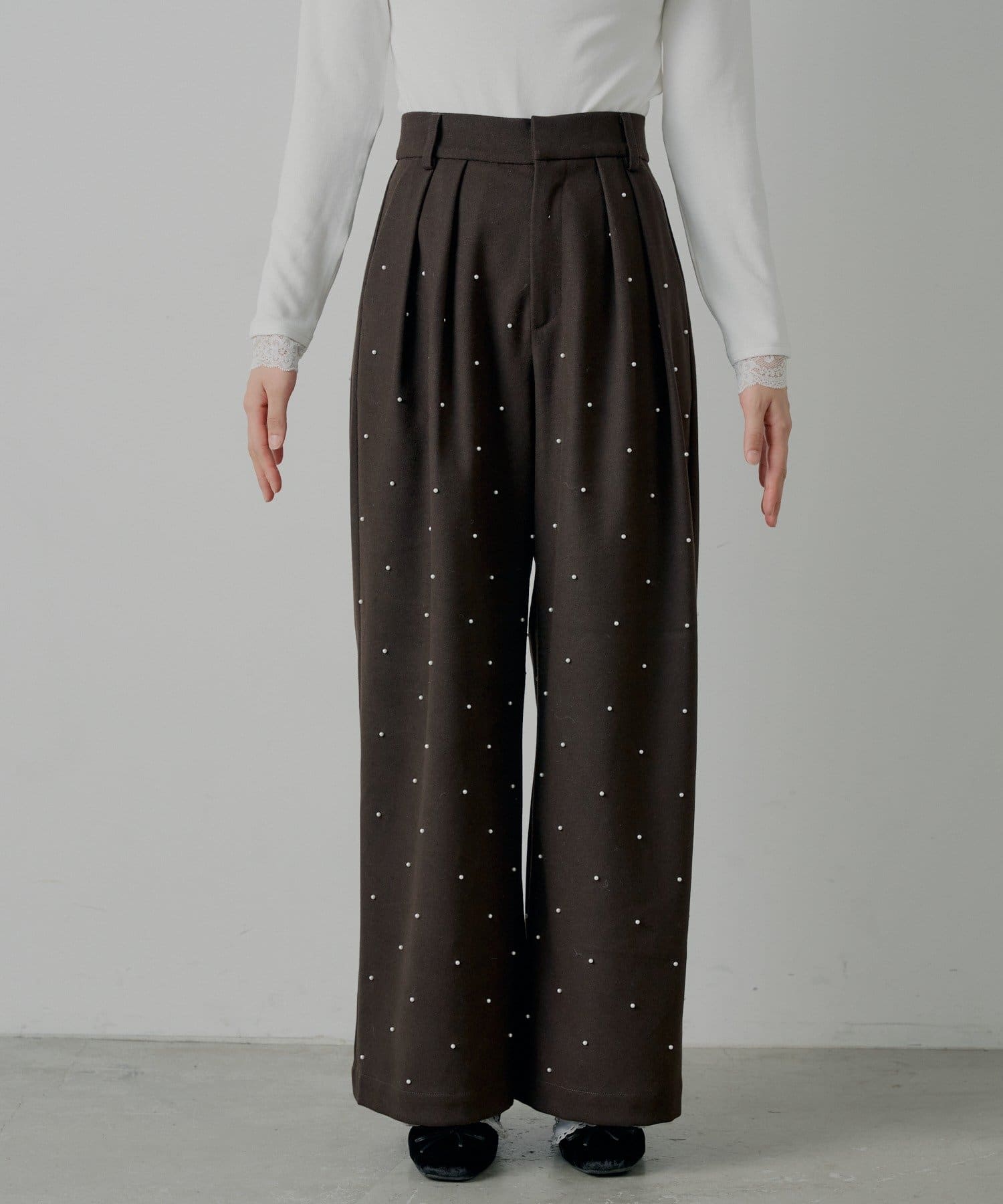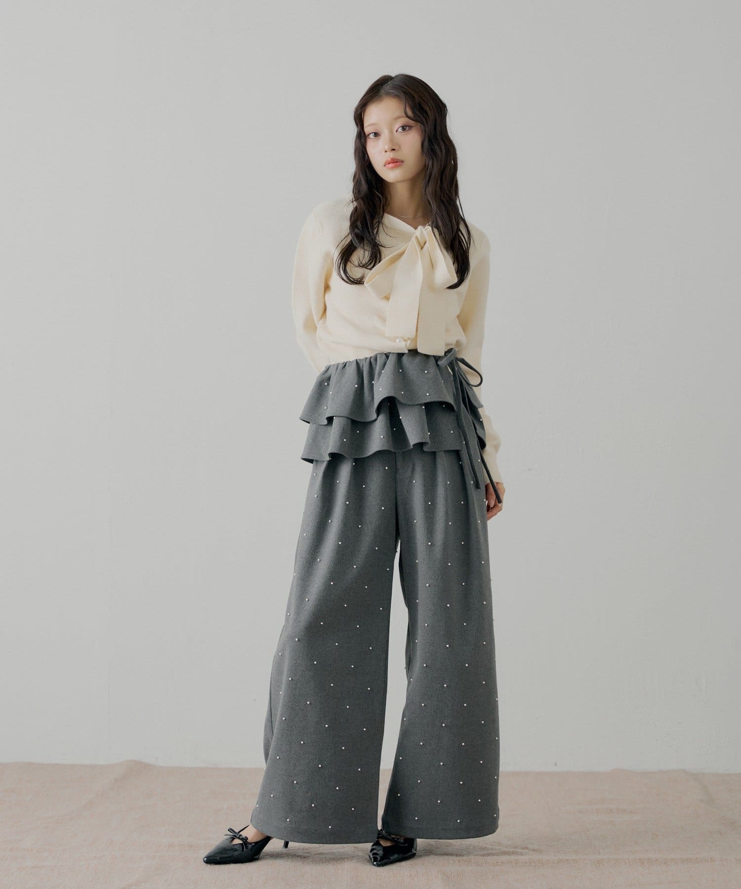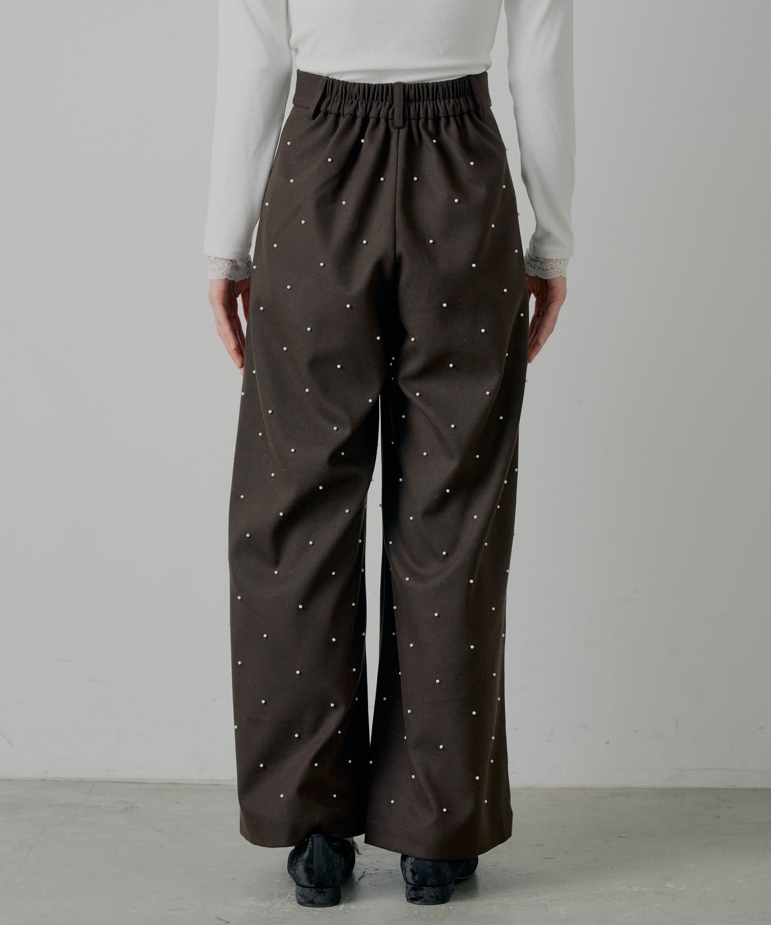 フリルと上品なパールが目を惹くルーズスラックスパンツ登場!