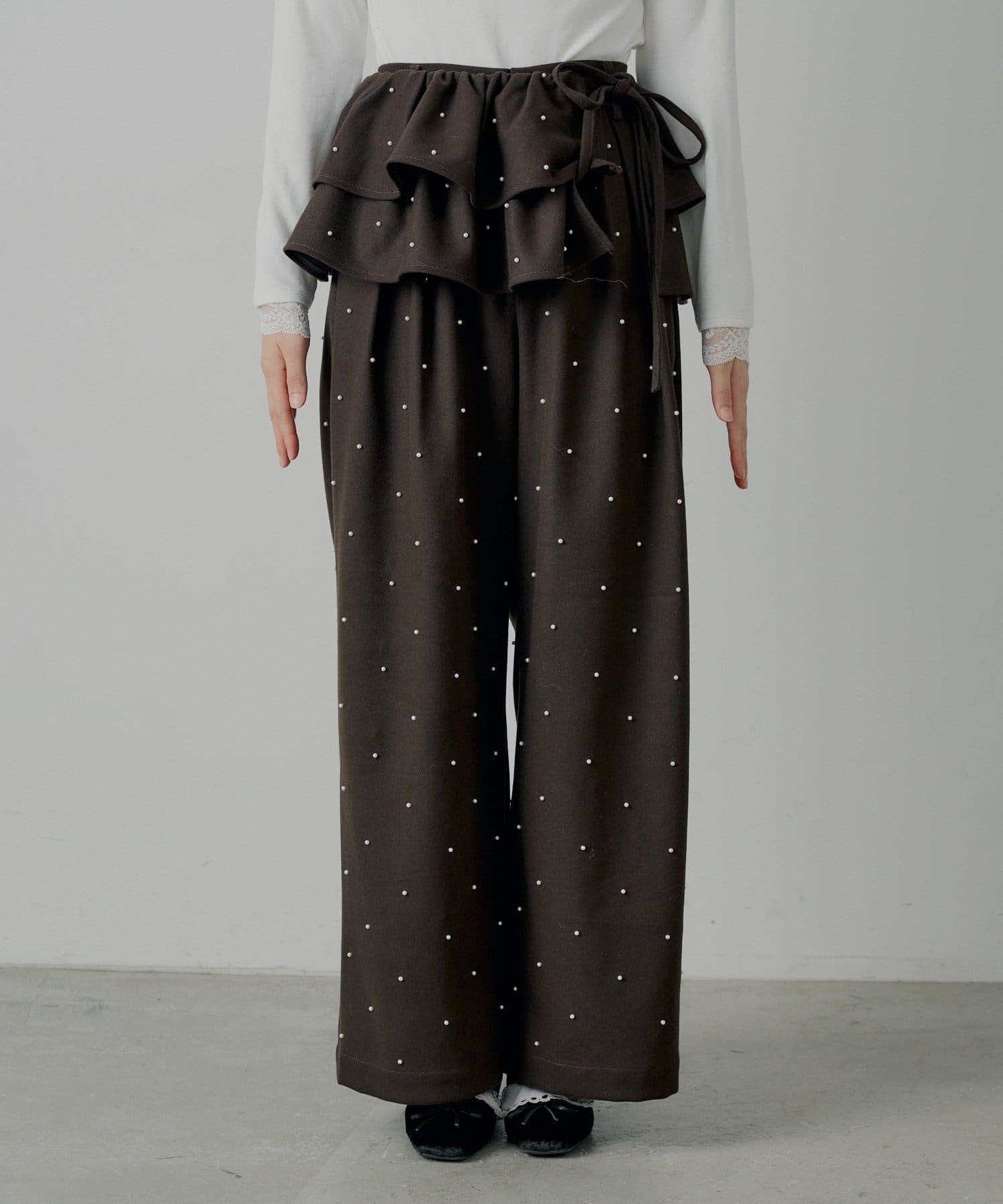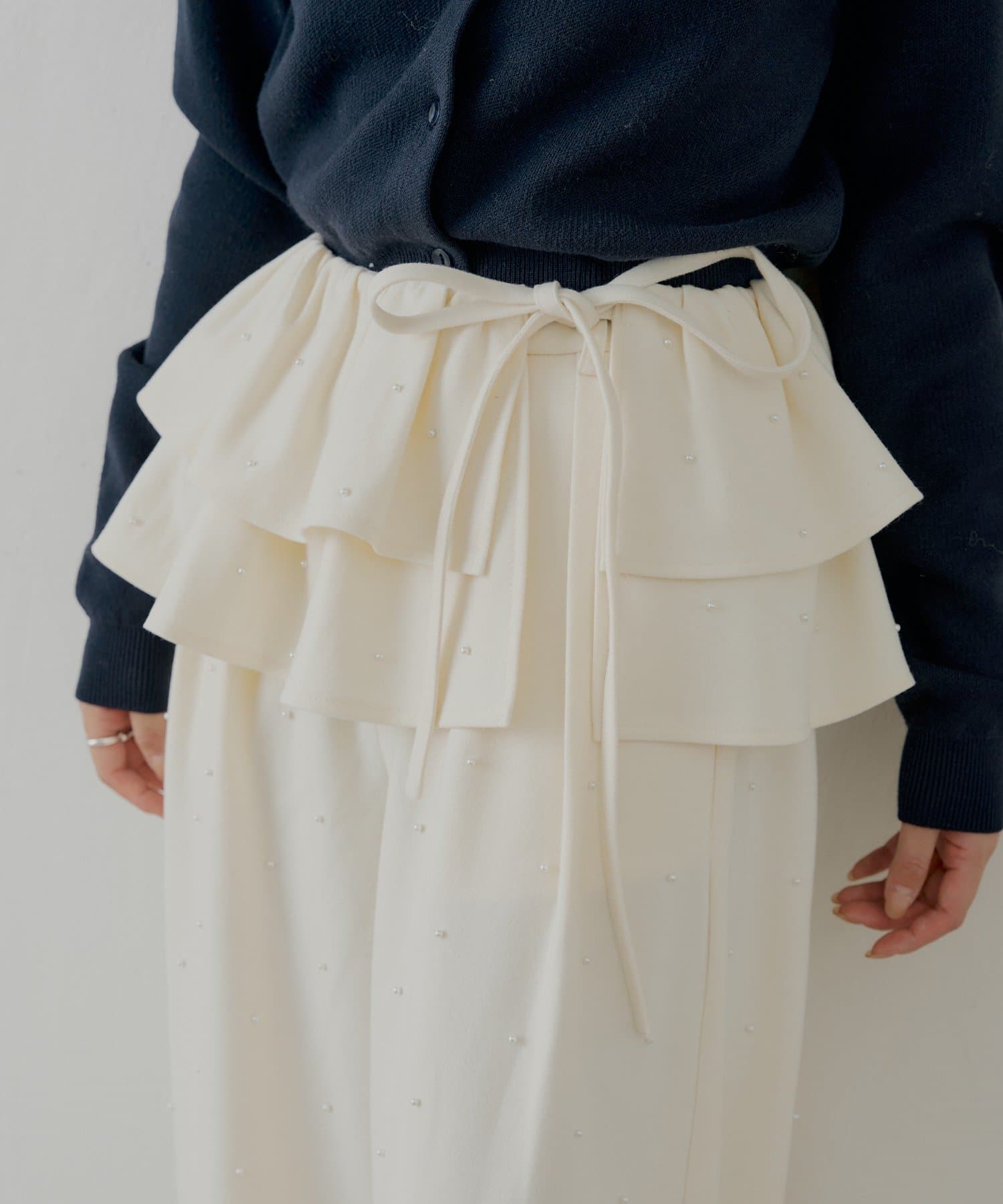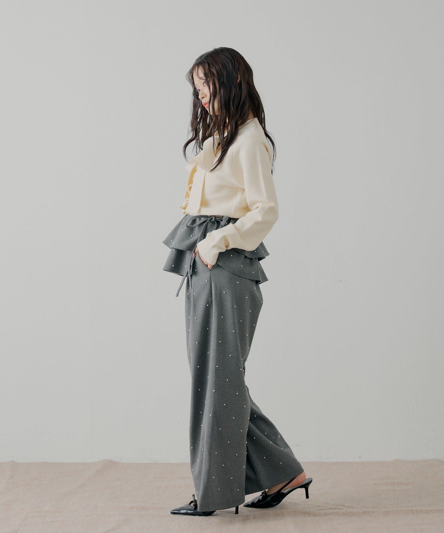 【SALON by Chico/セットアップ対応】取り外しフリル+パールルーズスラックスパンツ
