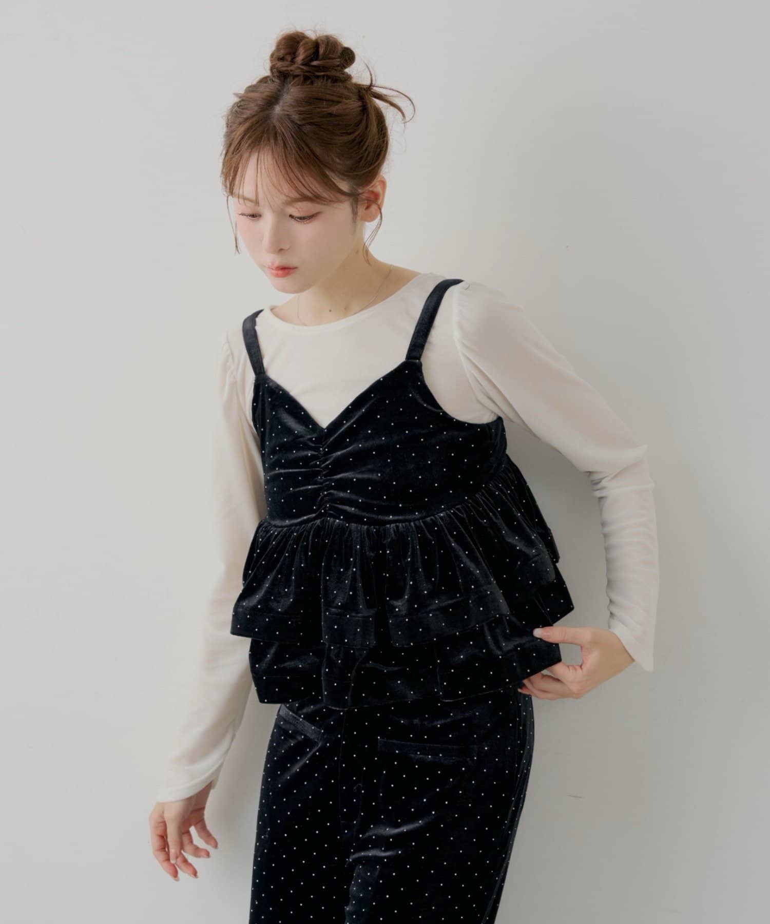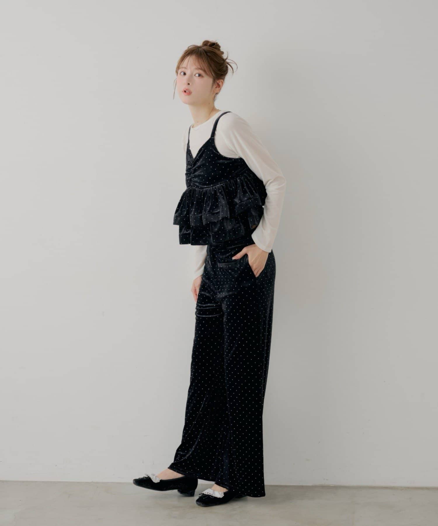 ・同素材のベロアパンツと合わせてセットアップで着るのが可愛くておすすめです。