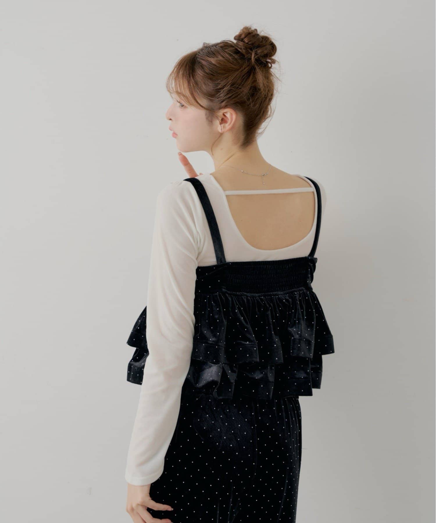 【SALON by Chico/セットアップ対応】ベロア刺繍ラッフルビスチェ