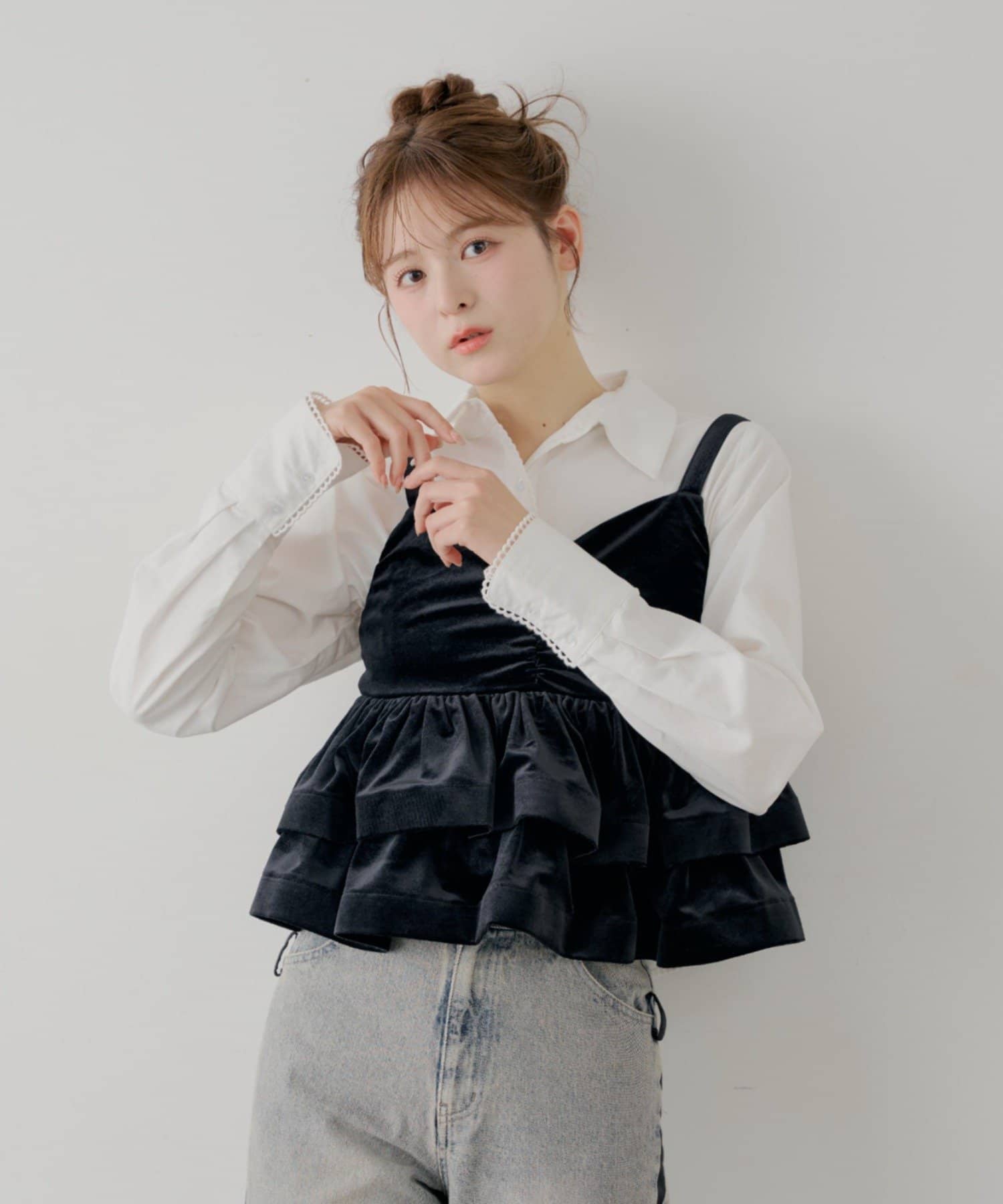 大人の可愛らしさを引き立てるベロア刺繍ラッフルビスチェ登場!