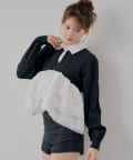 TOP > Chico > レディース > トップス > ニット/セーター > 【SALON by Chico】レースティアードペプラム襟付きニット