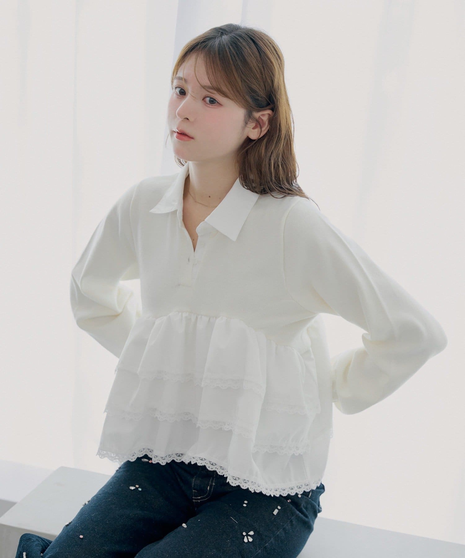 ・目を惹くレースティアードが、着こなしに華やかさをプラスしてくれます。