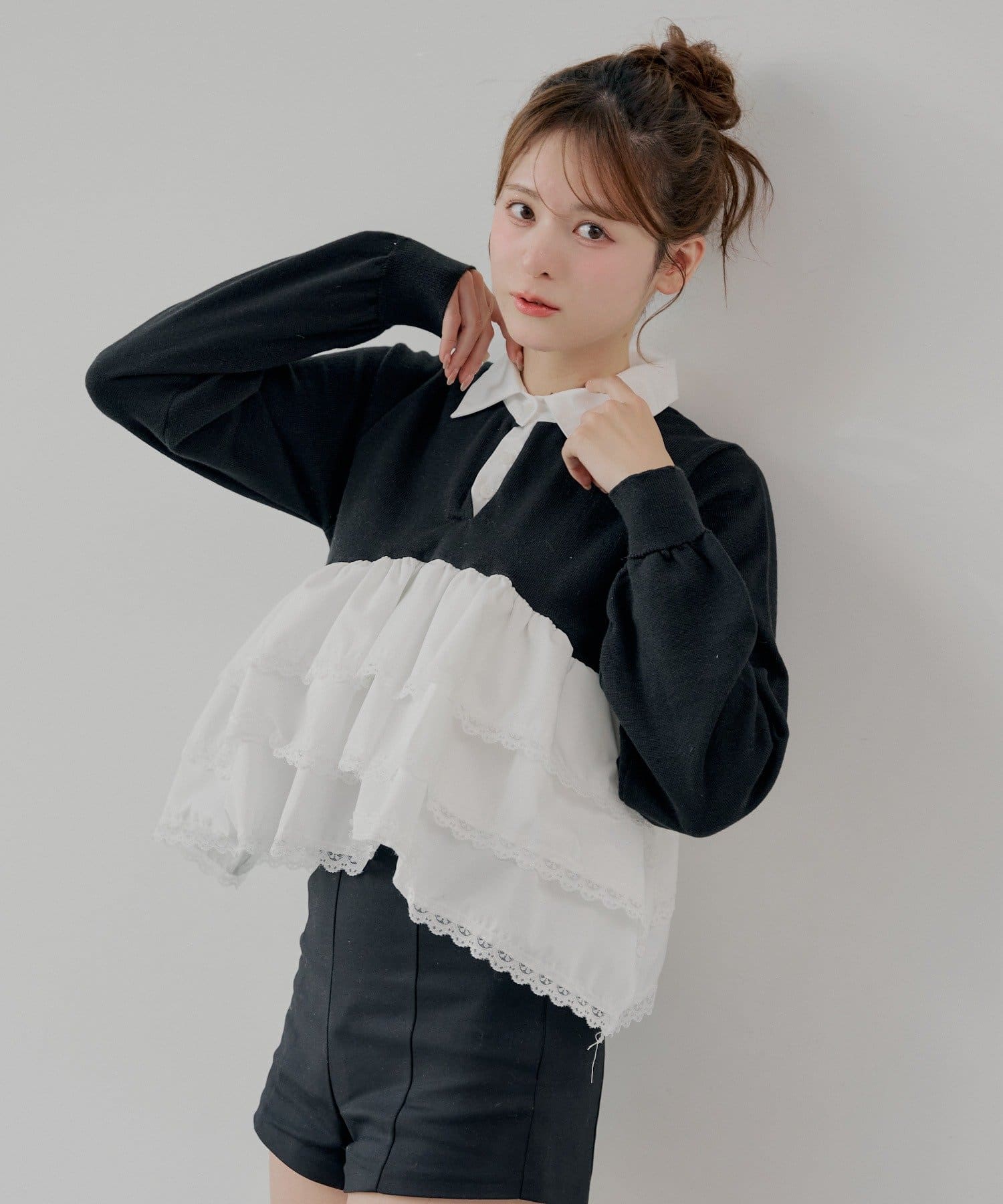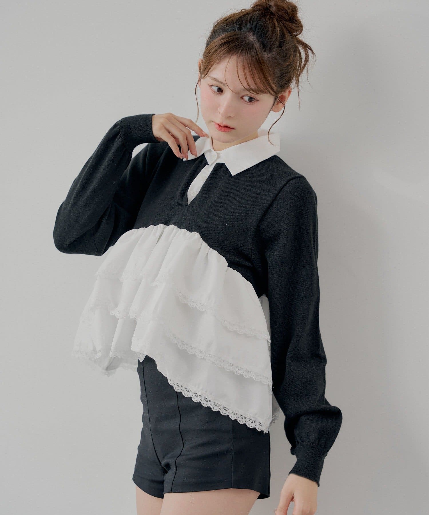 • Chico(チコ) 【SALON by Chico】レースティアードペプラム襟付きニット