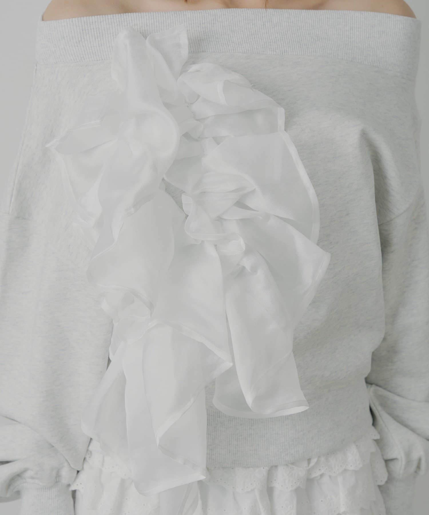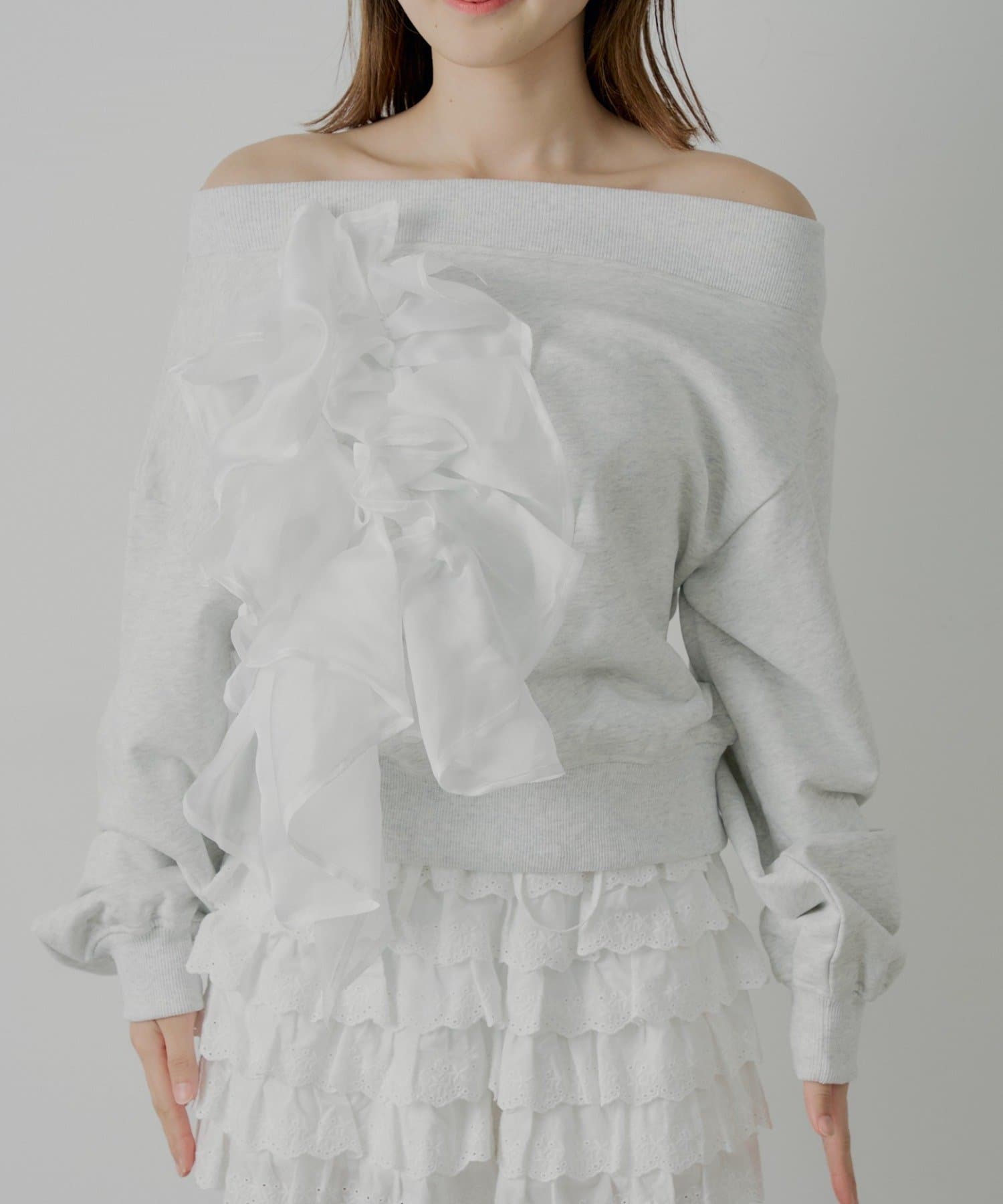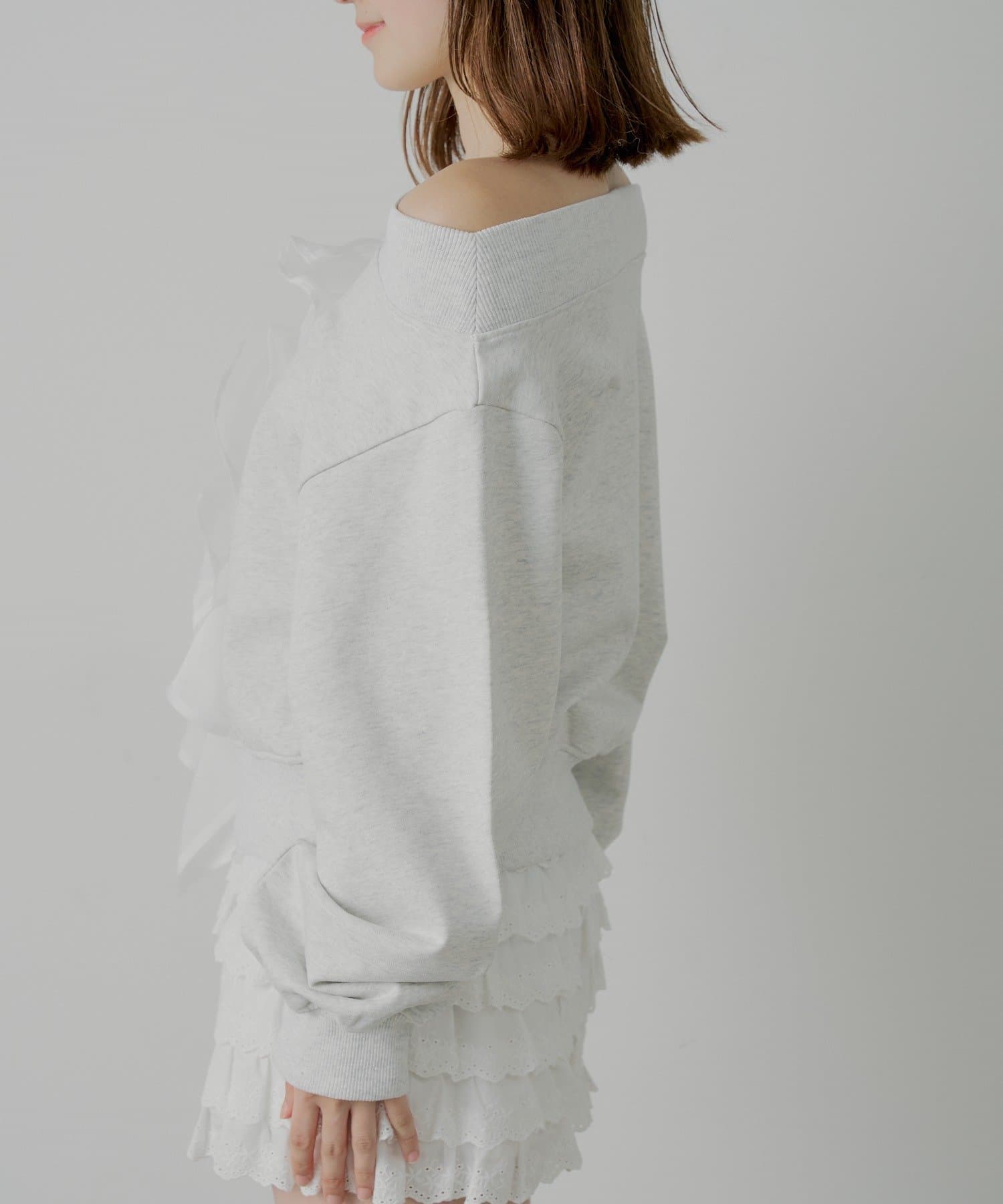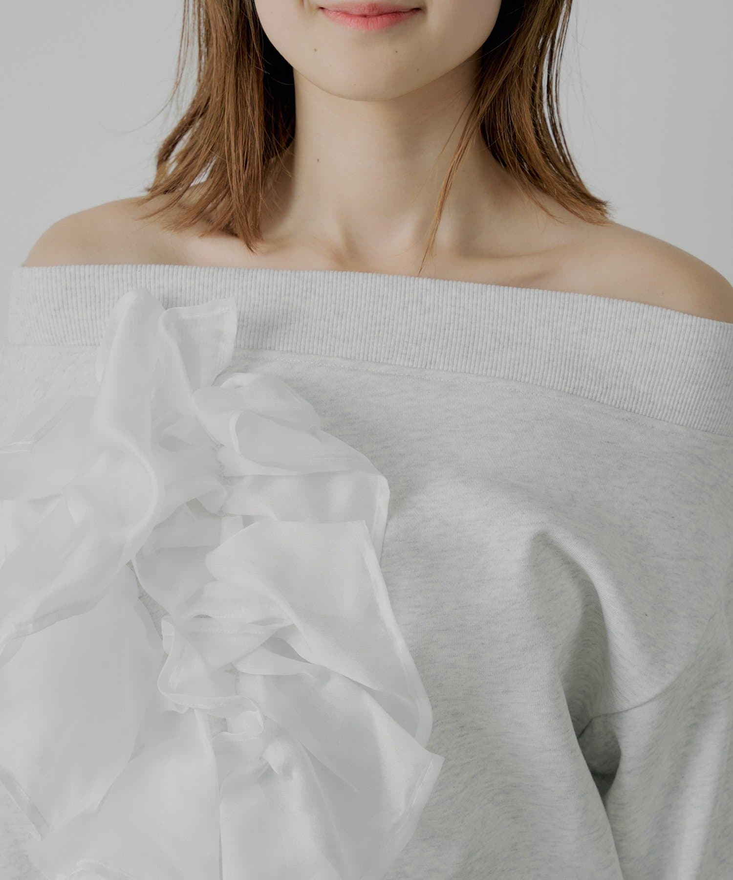 大胆なチュール使いが魅力のオフショルスウェット登場!