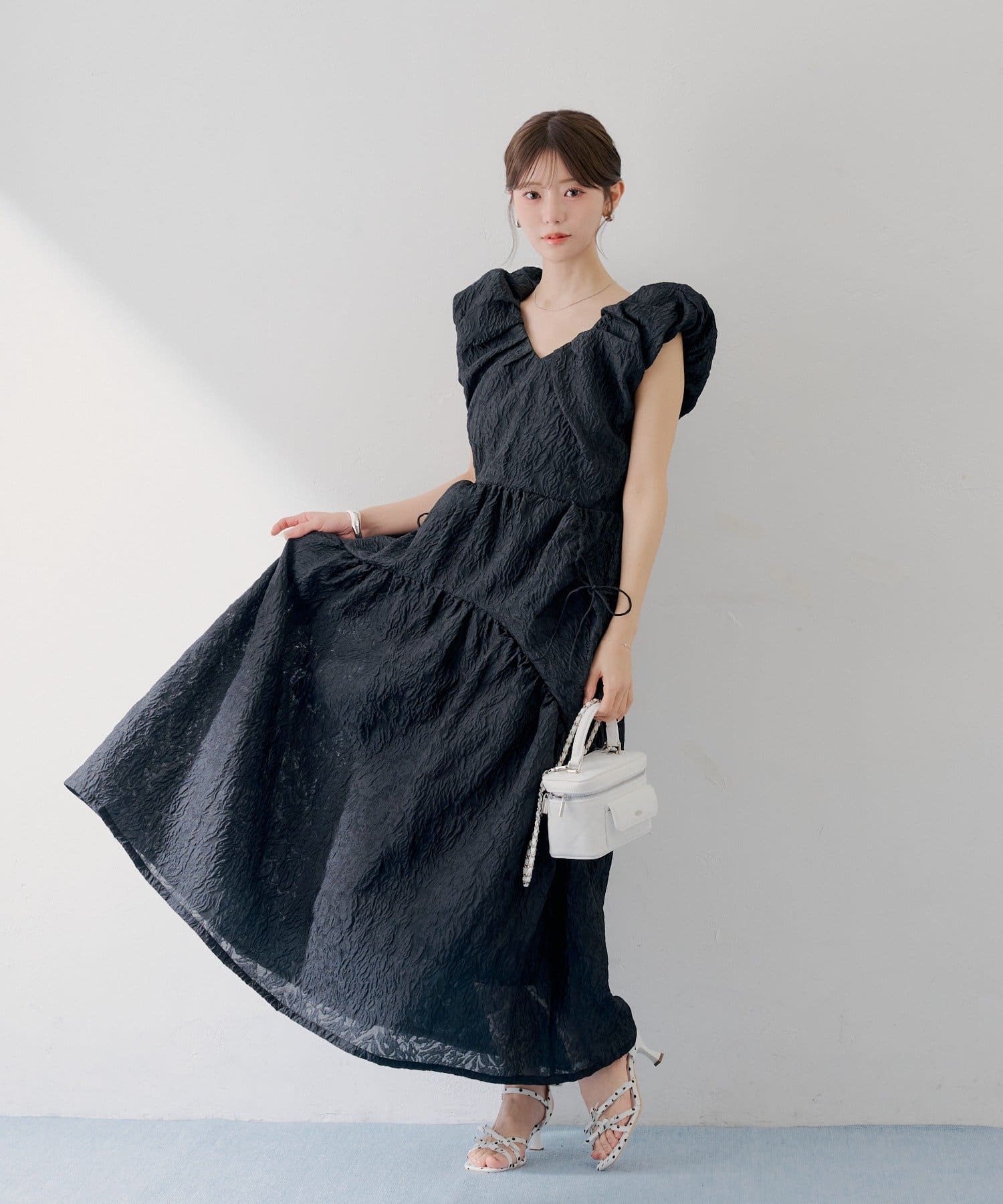 【SALON by Chico】パフスリーブバルーンロングワンピース