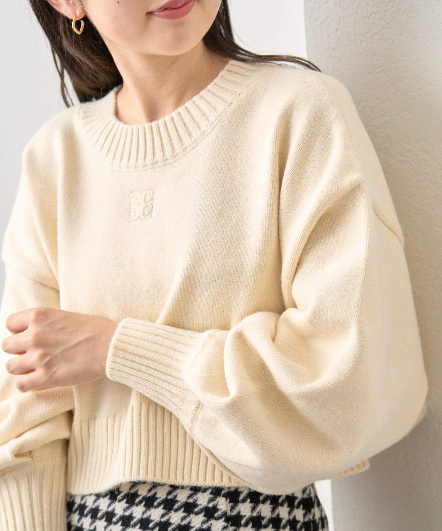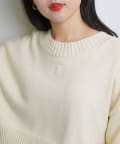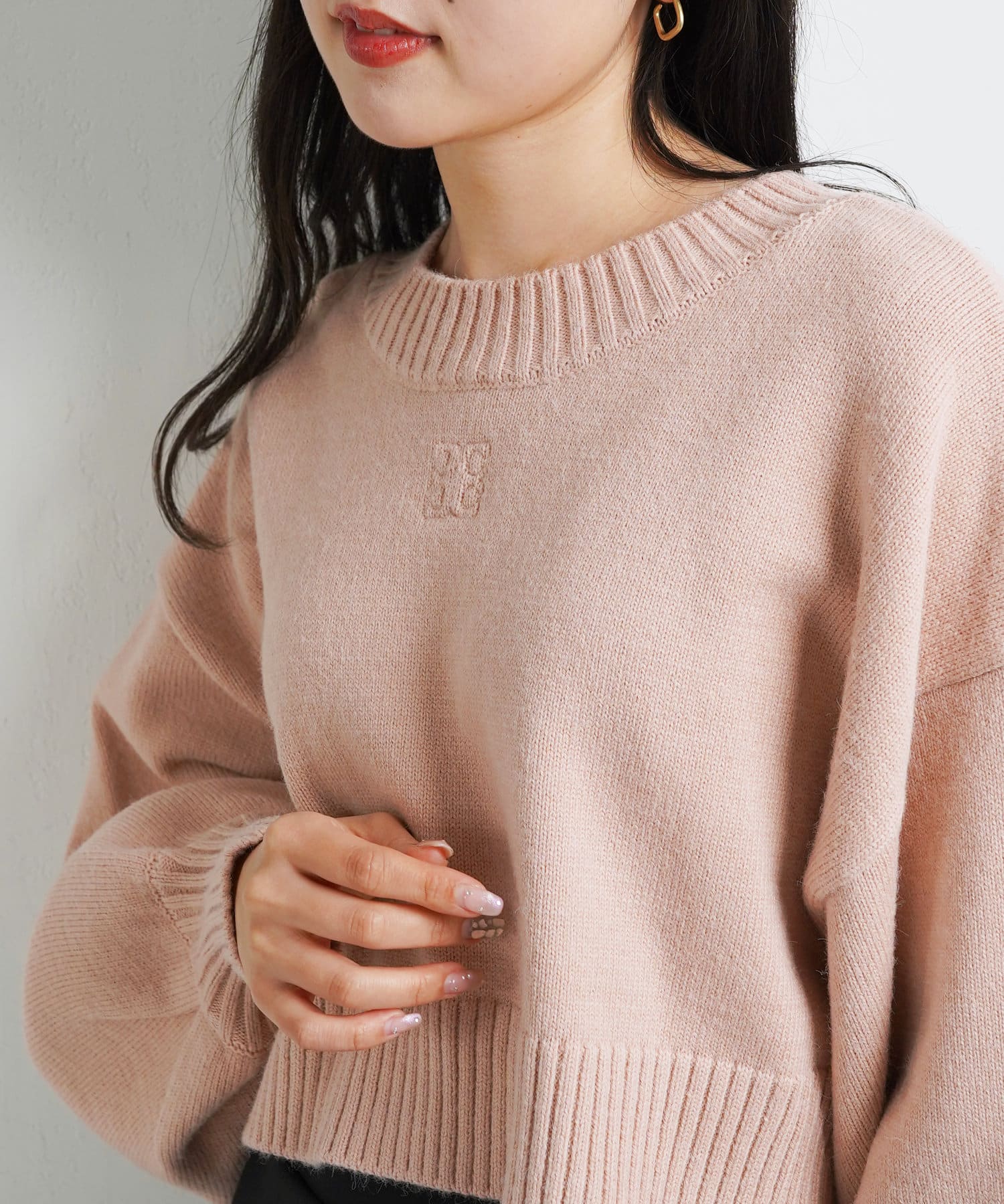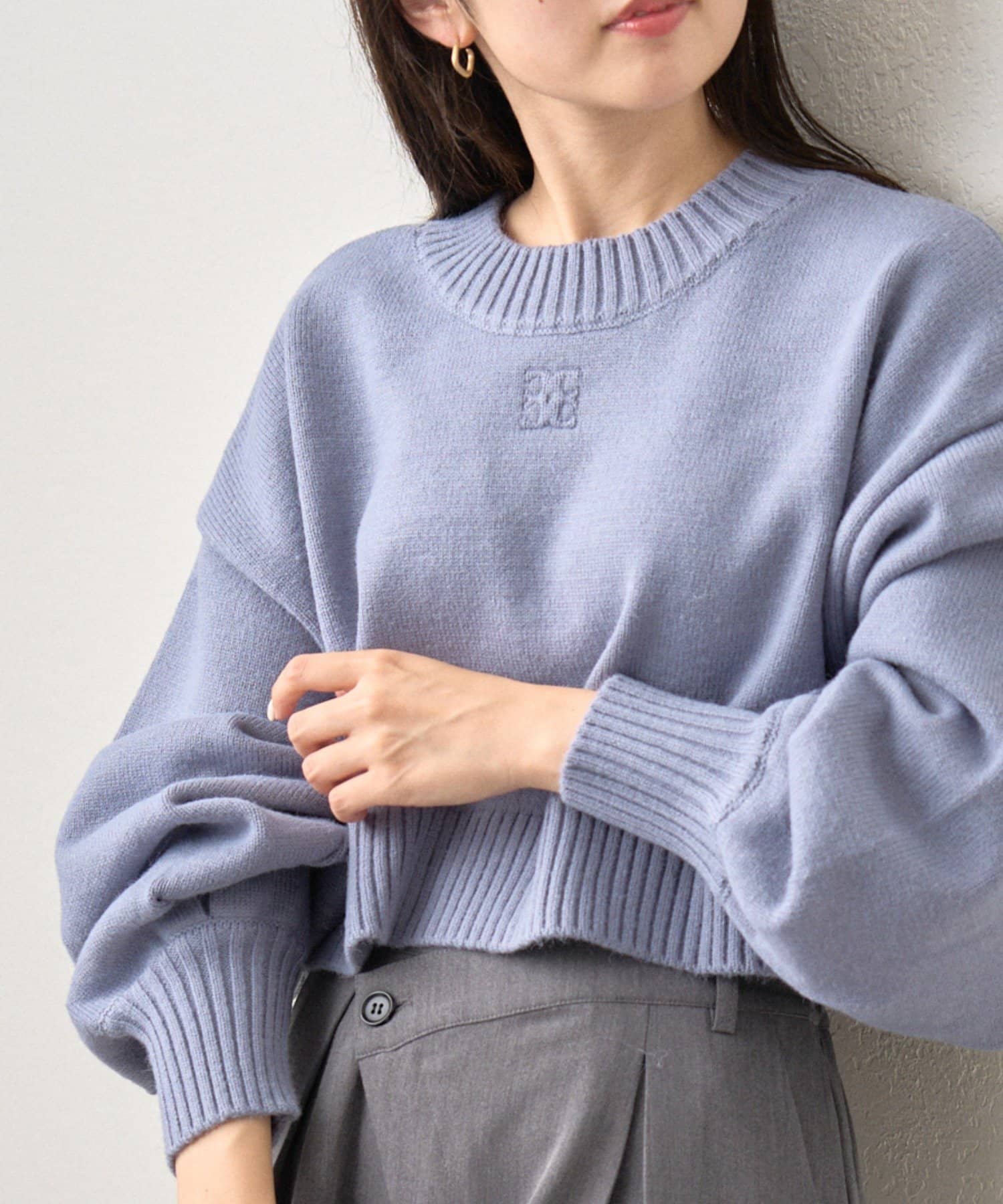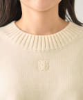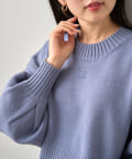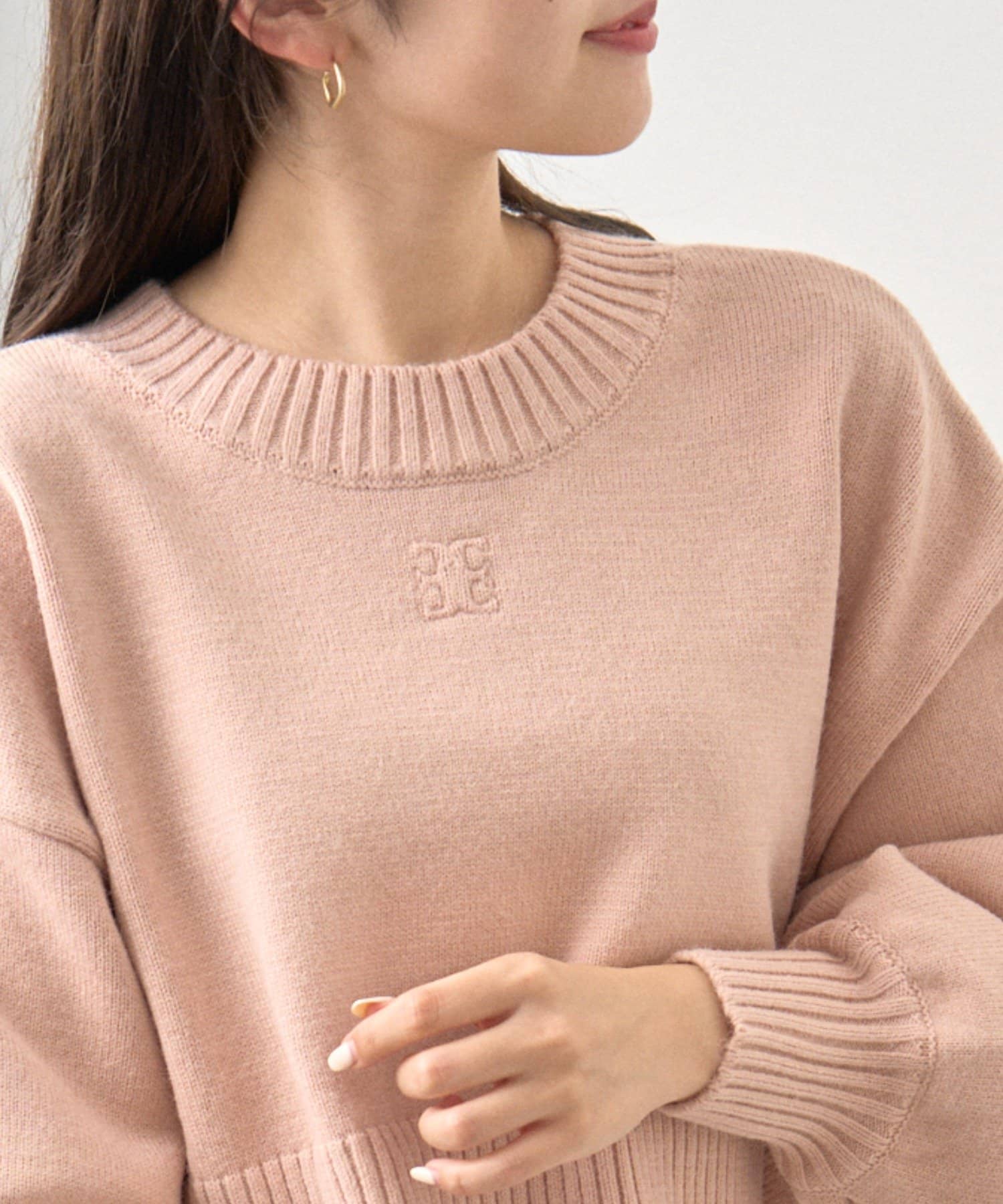 ・同系色のさりげないエンボスロゴが目を惹くニット
