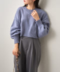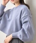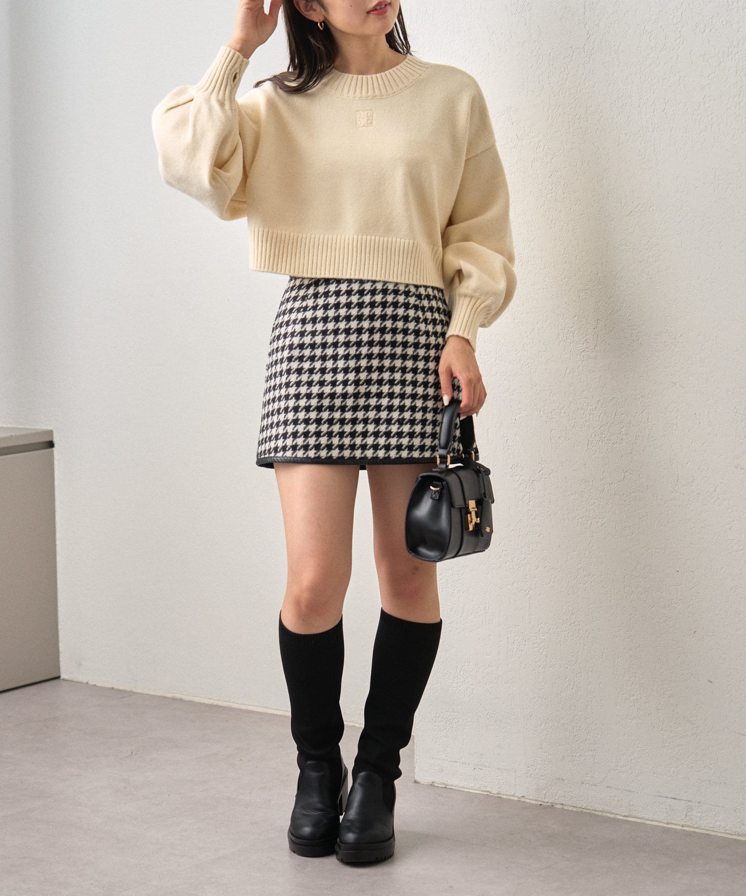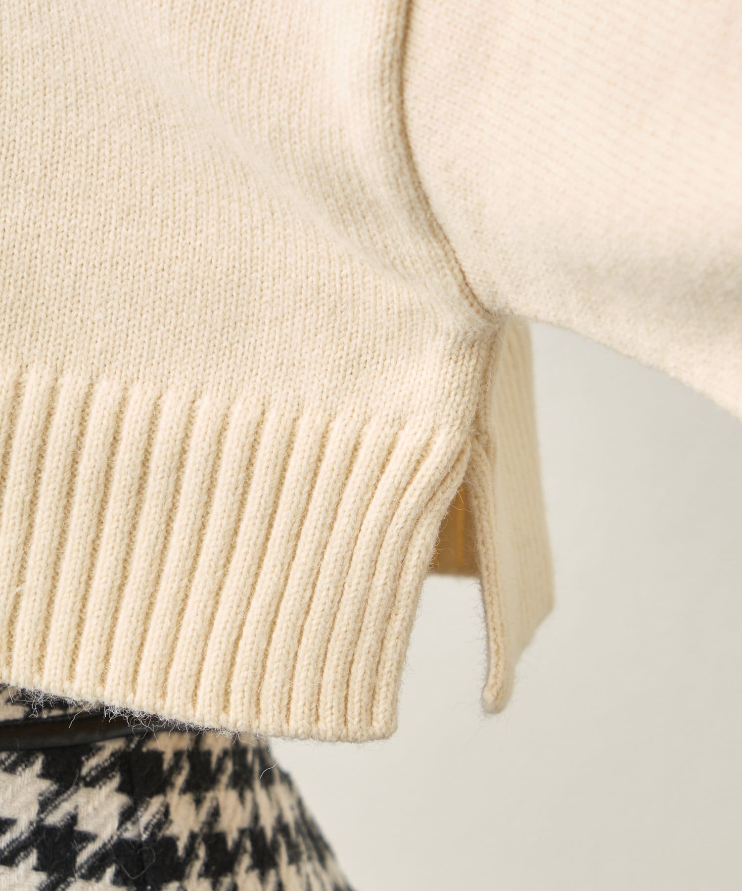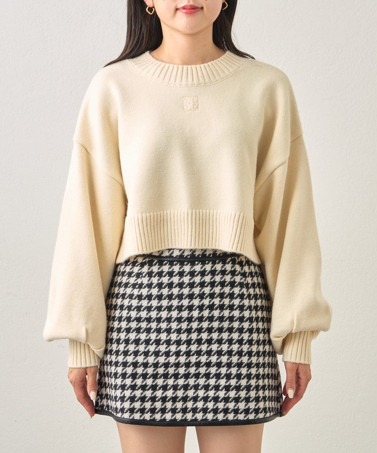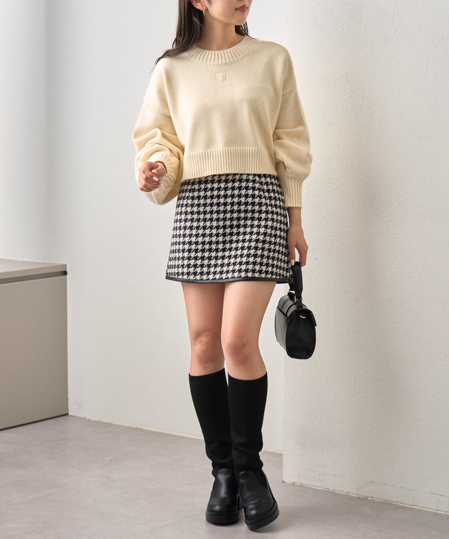 ・同系色のさりげないエンボスロゴが目を惹くニット