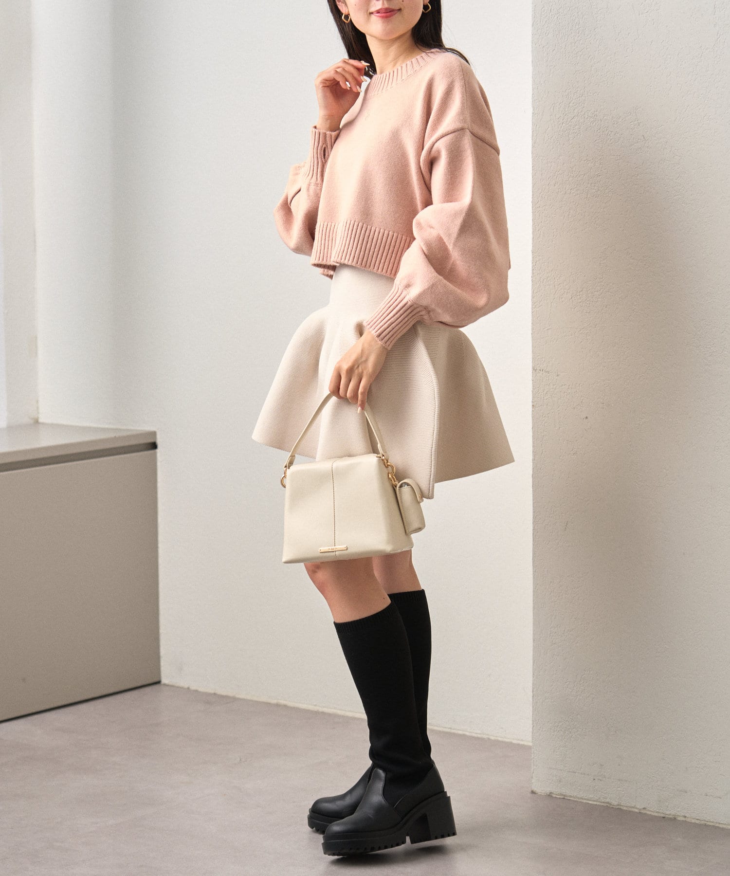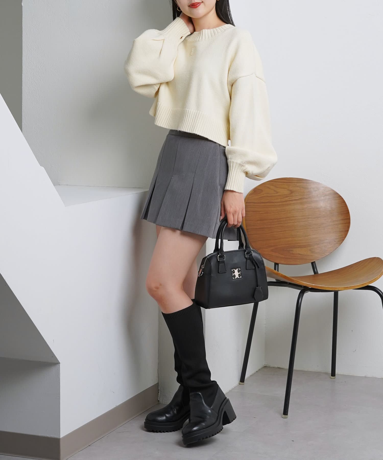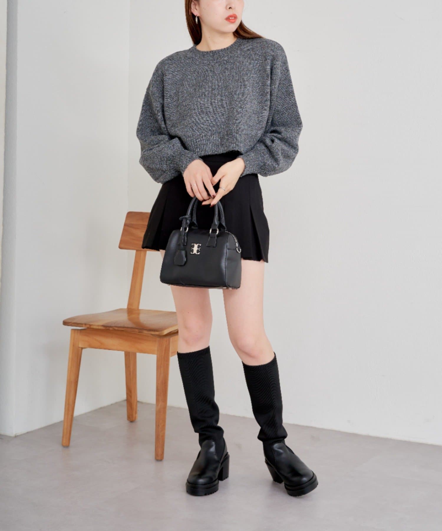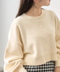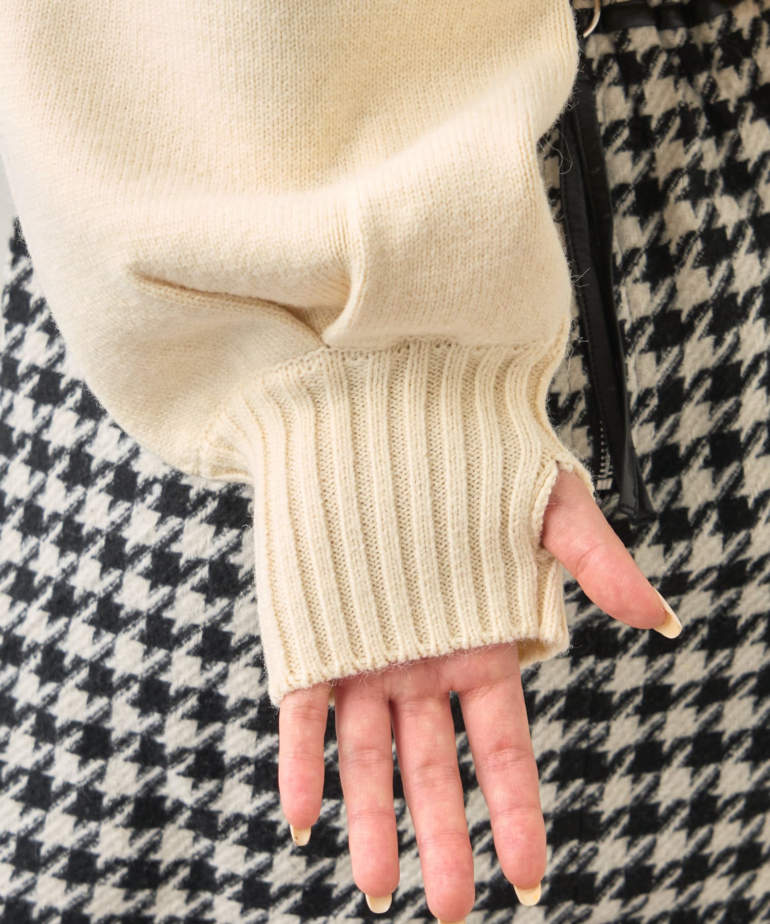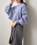・同系色のさりげないエンボスロゴが目を惹くニット