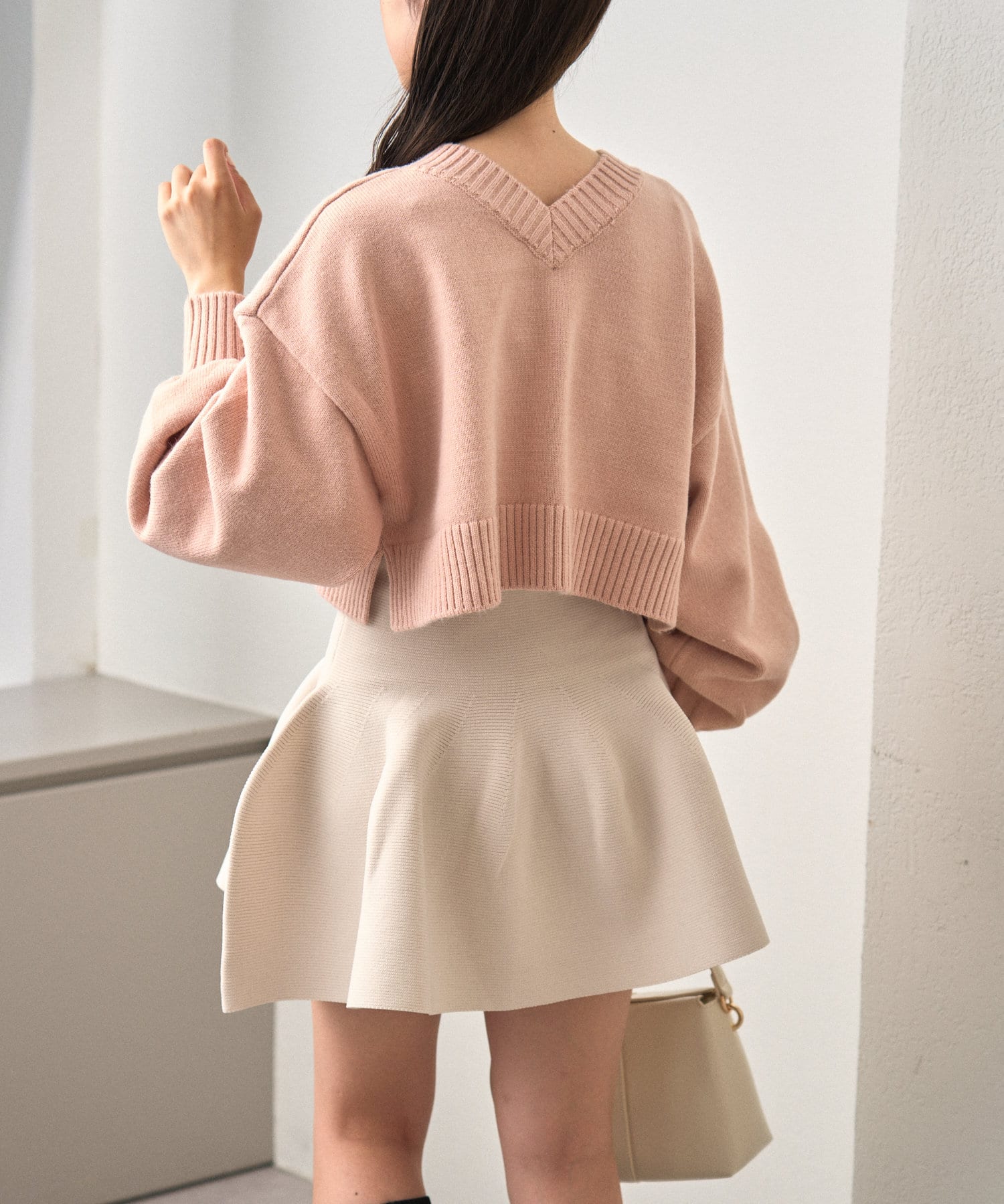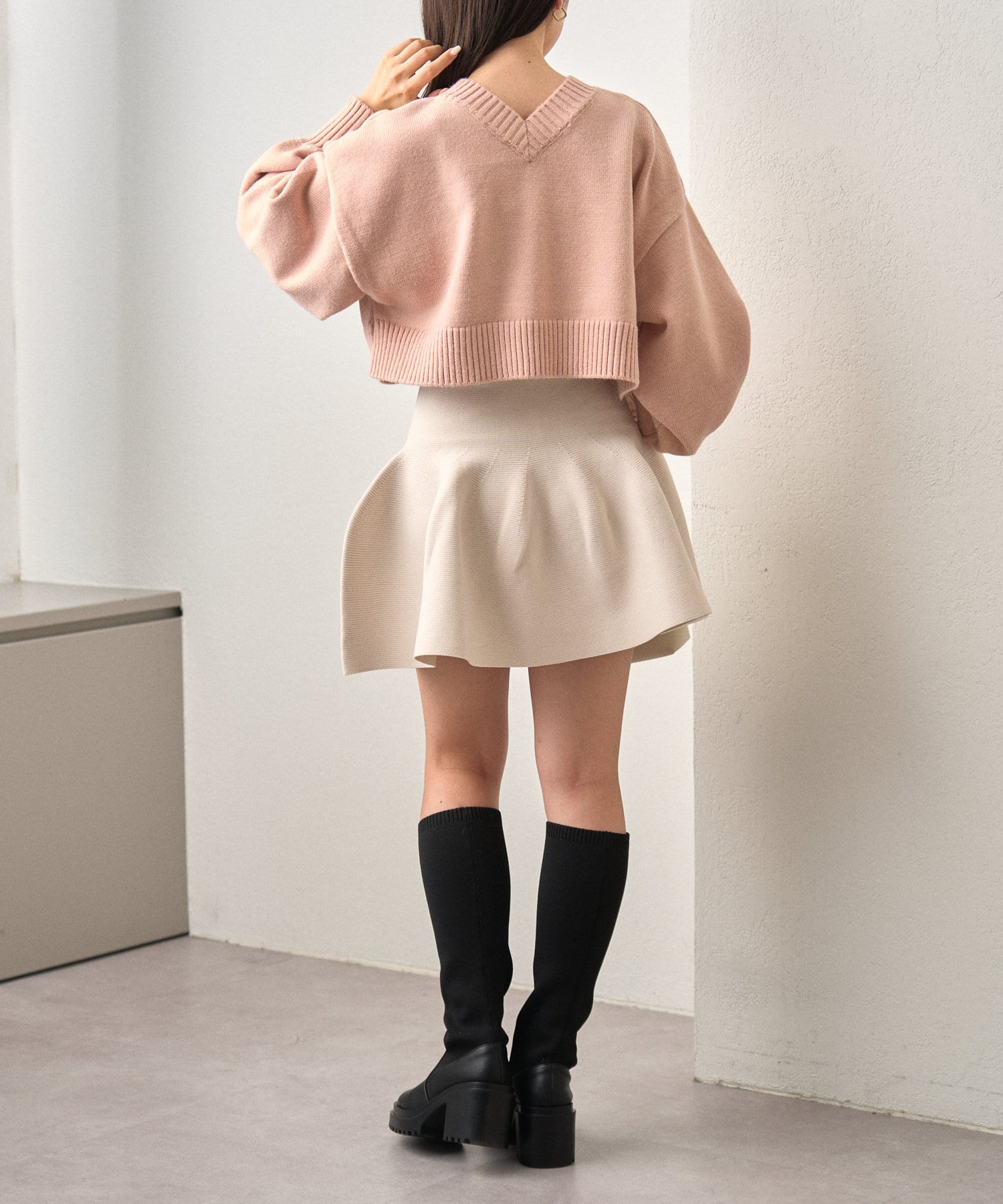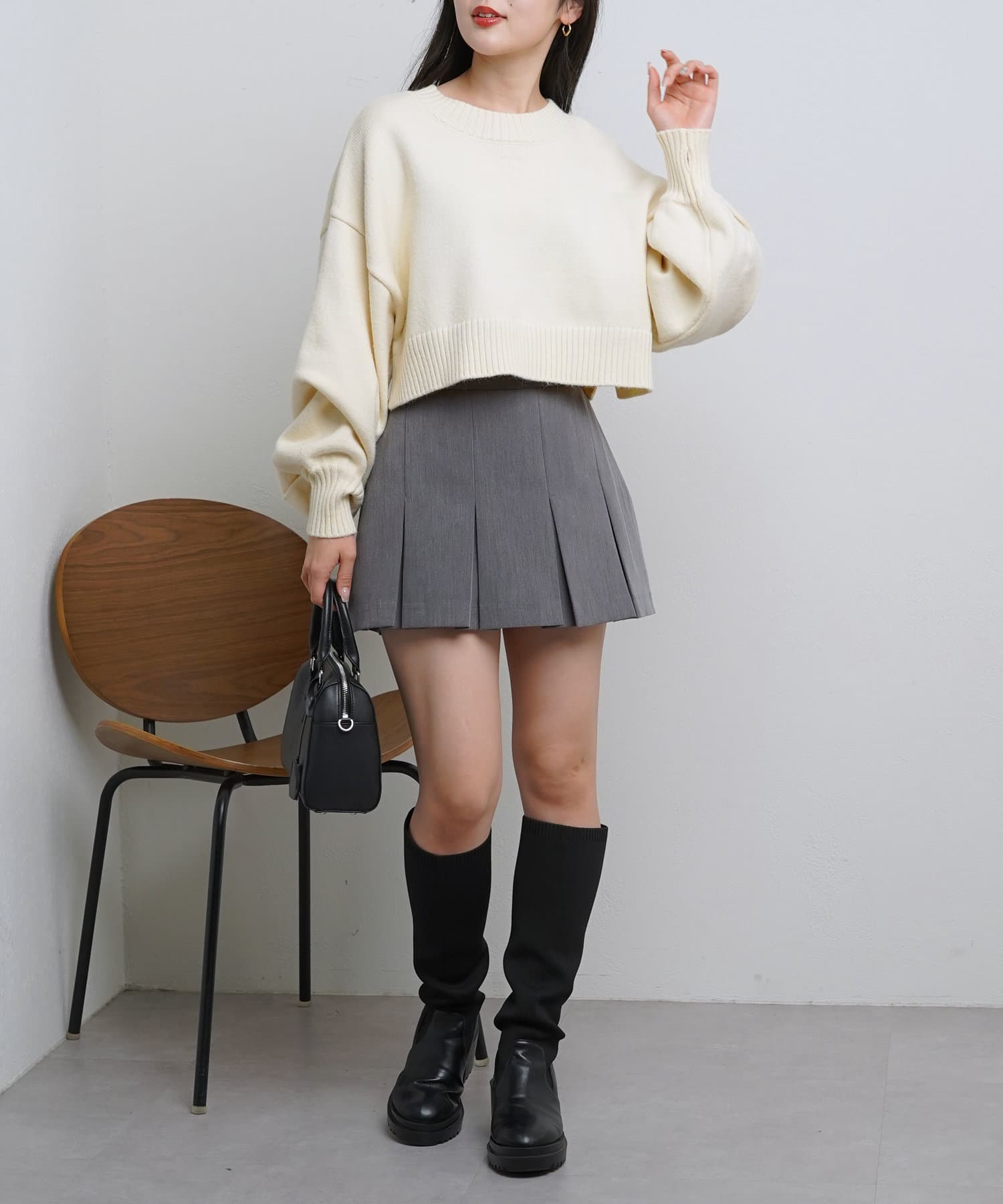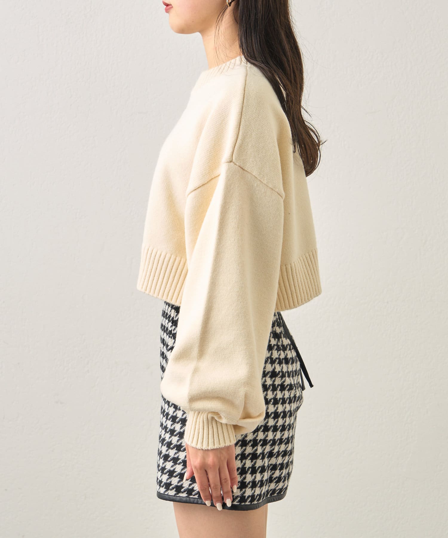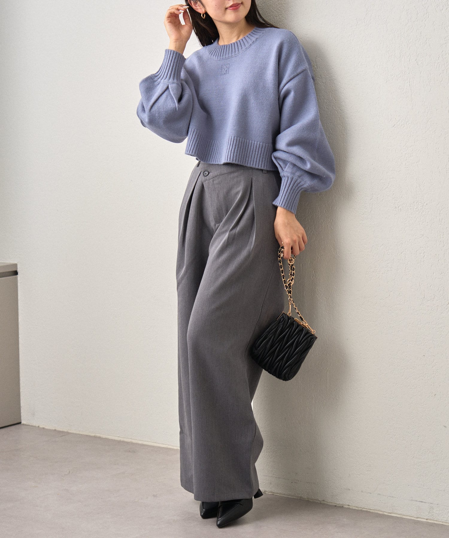 ・短丈なのでワイドパンツなどボリュームのあるボトムとも好相性です。