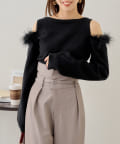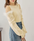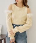 ファー付きのスリット入り女性らしい甘めニット登場♡