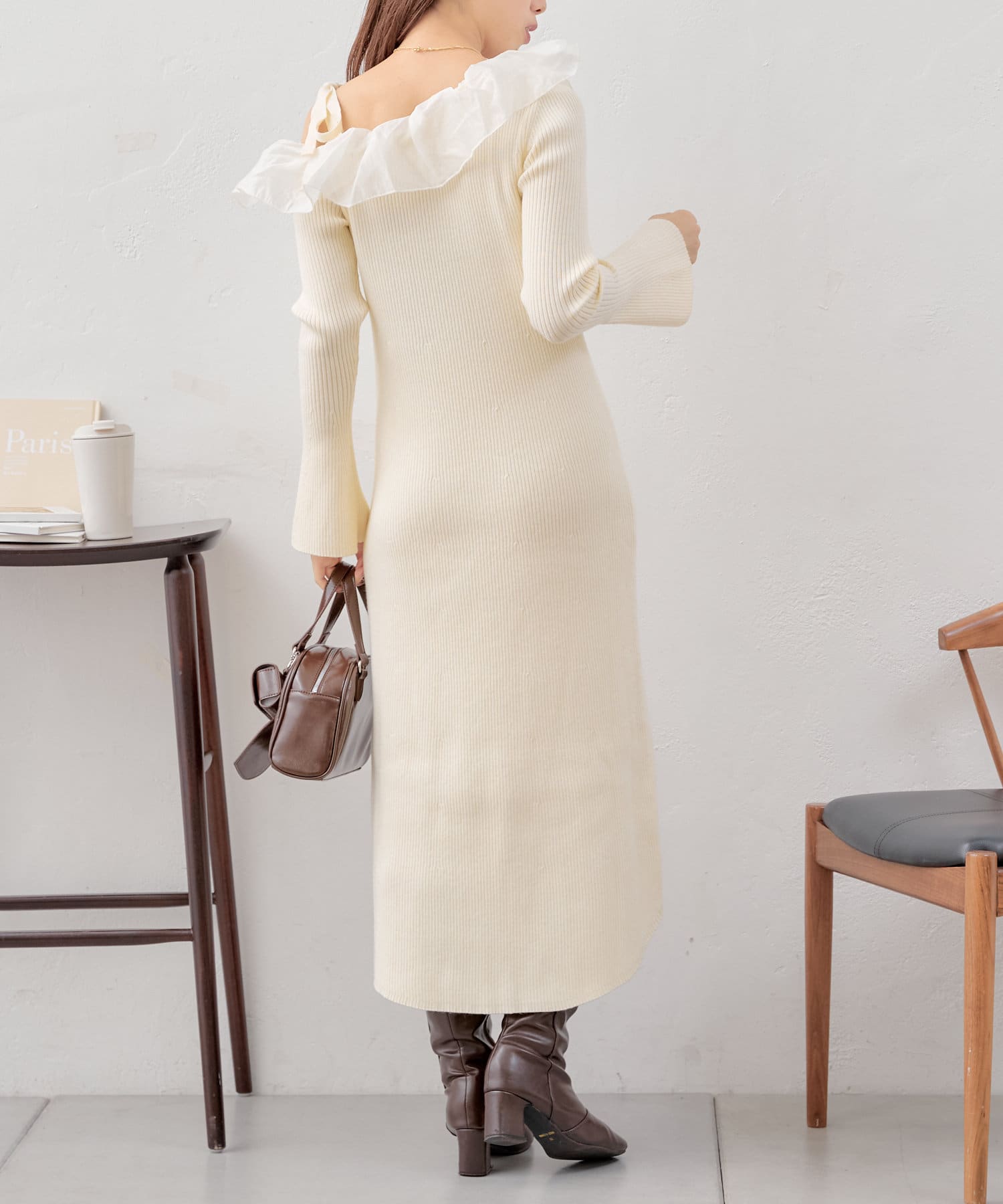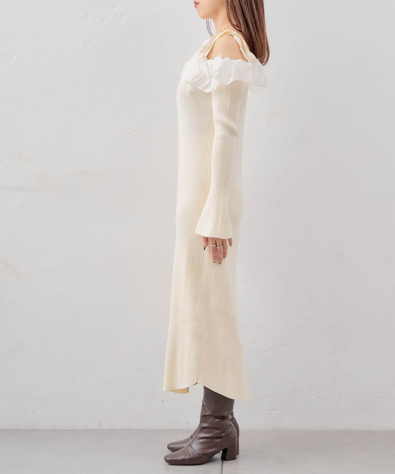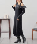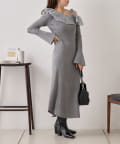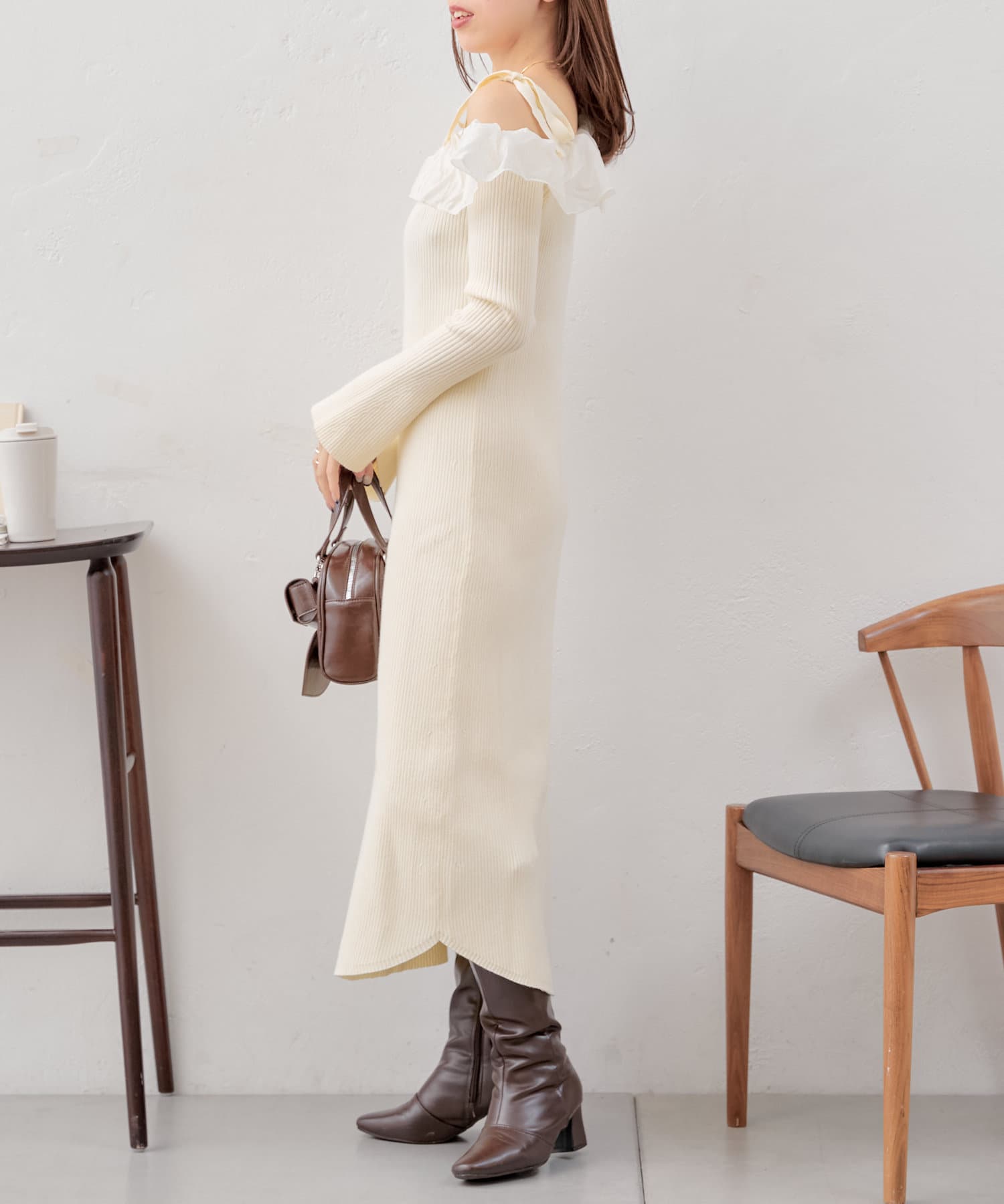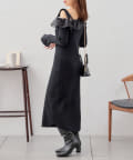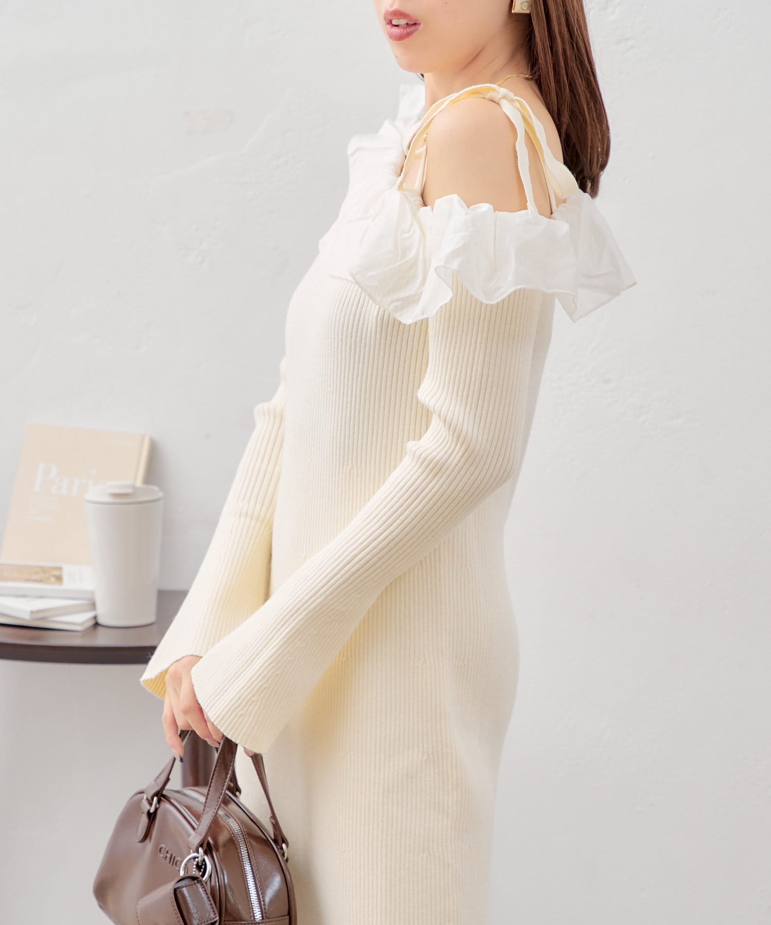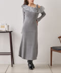 【Chico】ワンショルフリル肩リボンロングワンピース