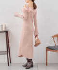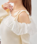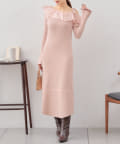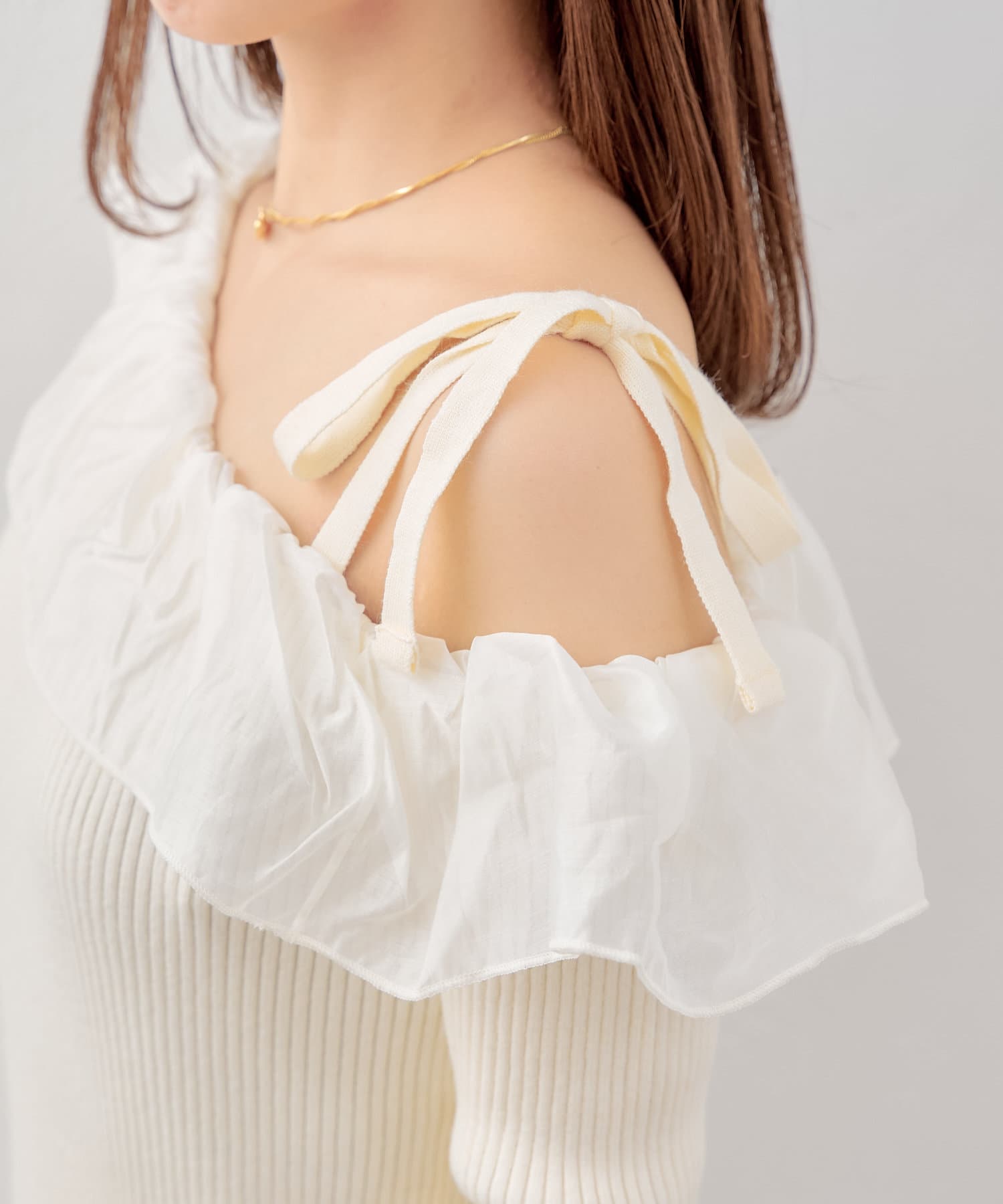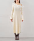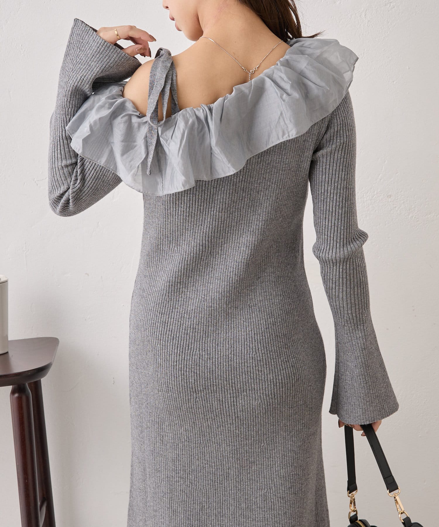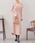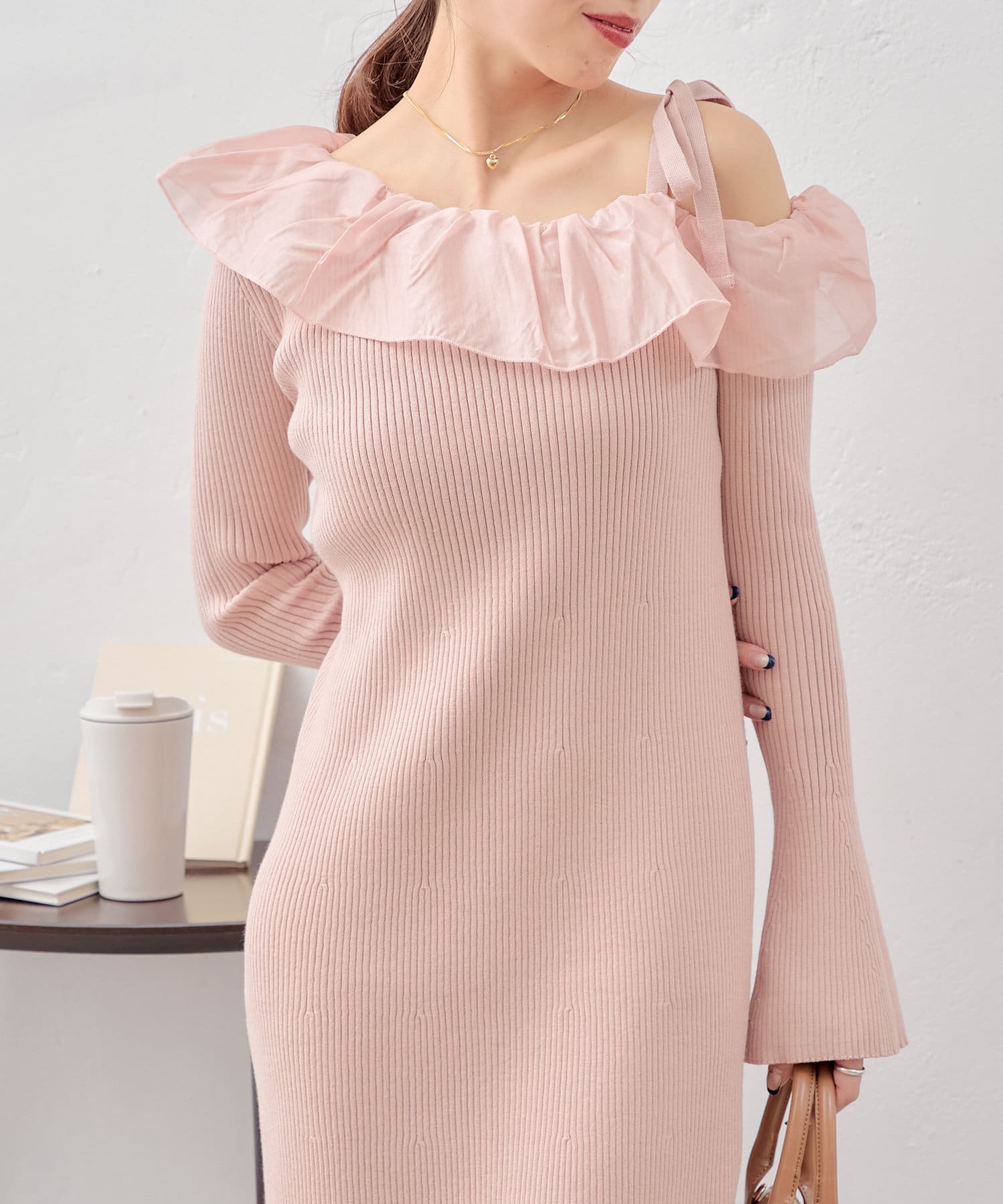 【Chico】ワンショルフリル肩リボンロングワンピース