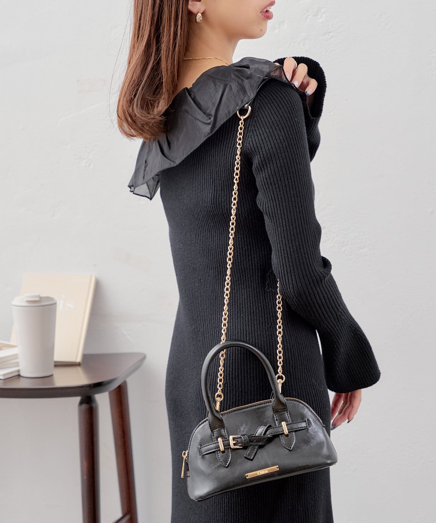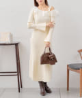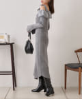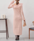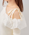 ・伸縮性のあるリブ素材のニットで体のラインを拾い過ぎず華奢に見せてくれます。