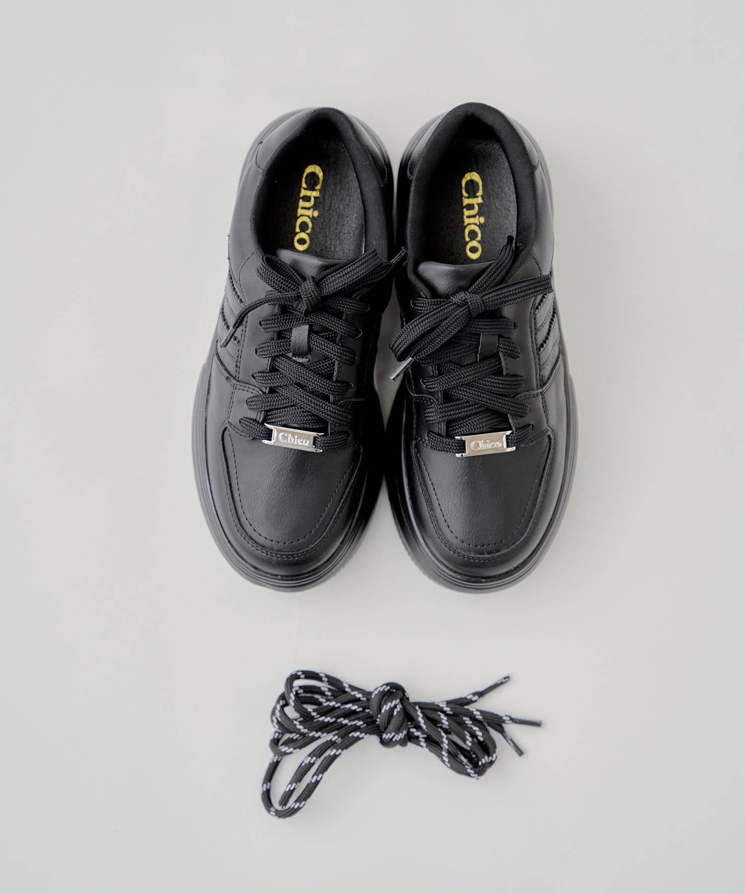黒色で少し底のあるスニーカーが欲しくて購入しました。届いた時に靴紐がもう1つありました。chicoのロゴがワンポイントにあってシンプルなのでどんな服装にも合わせやすそう!これからの季節に愛用していこうと思います♡