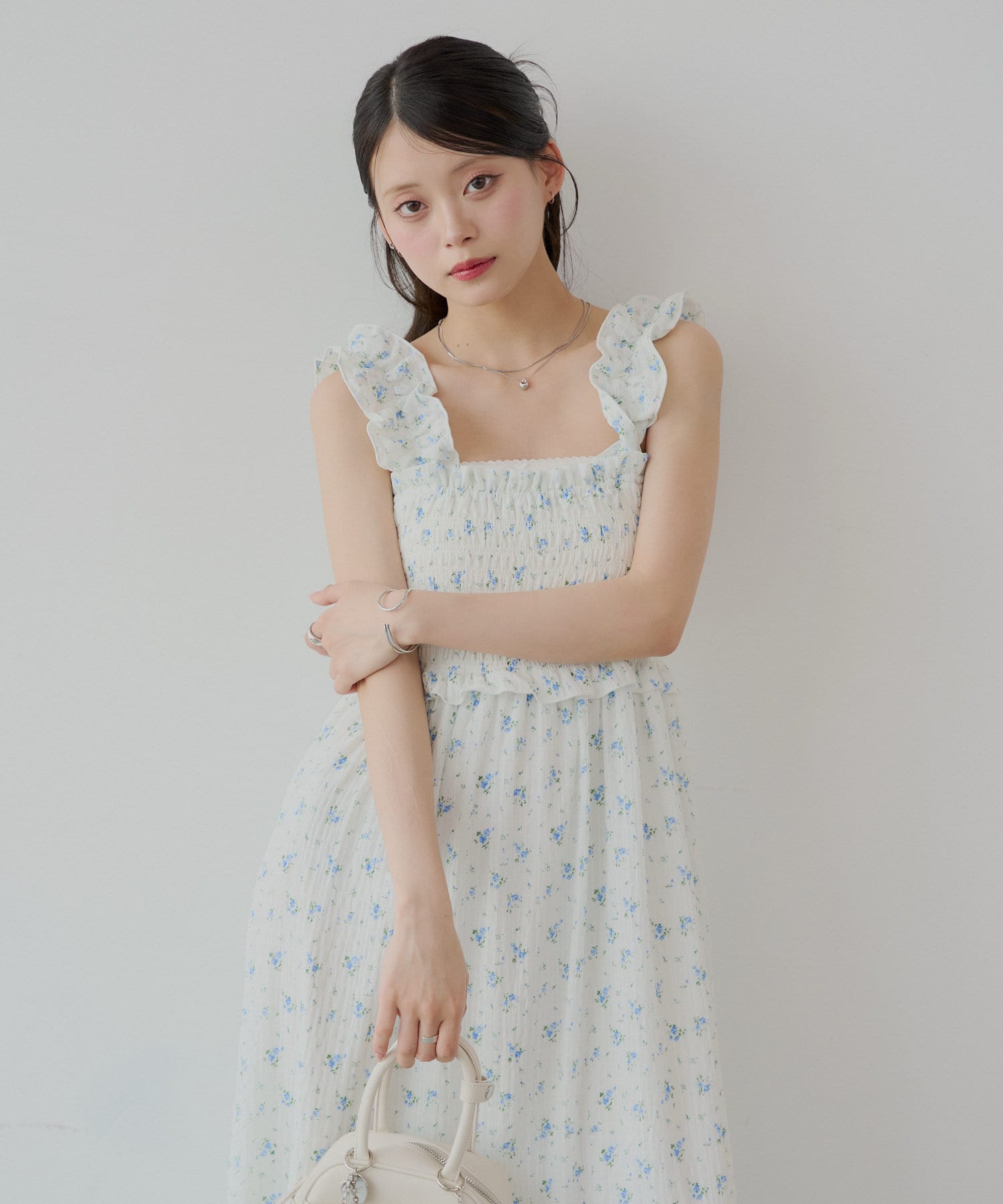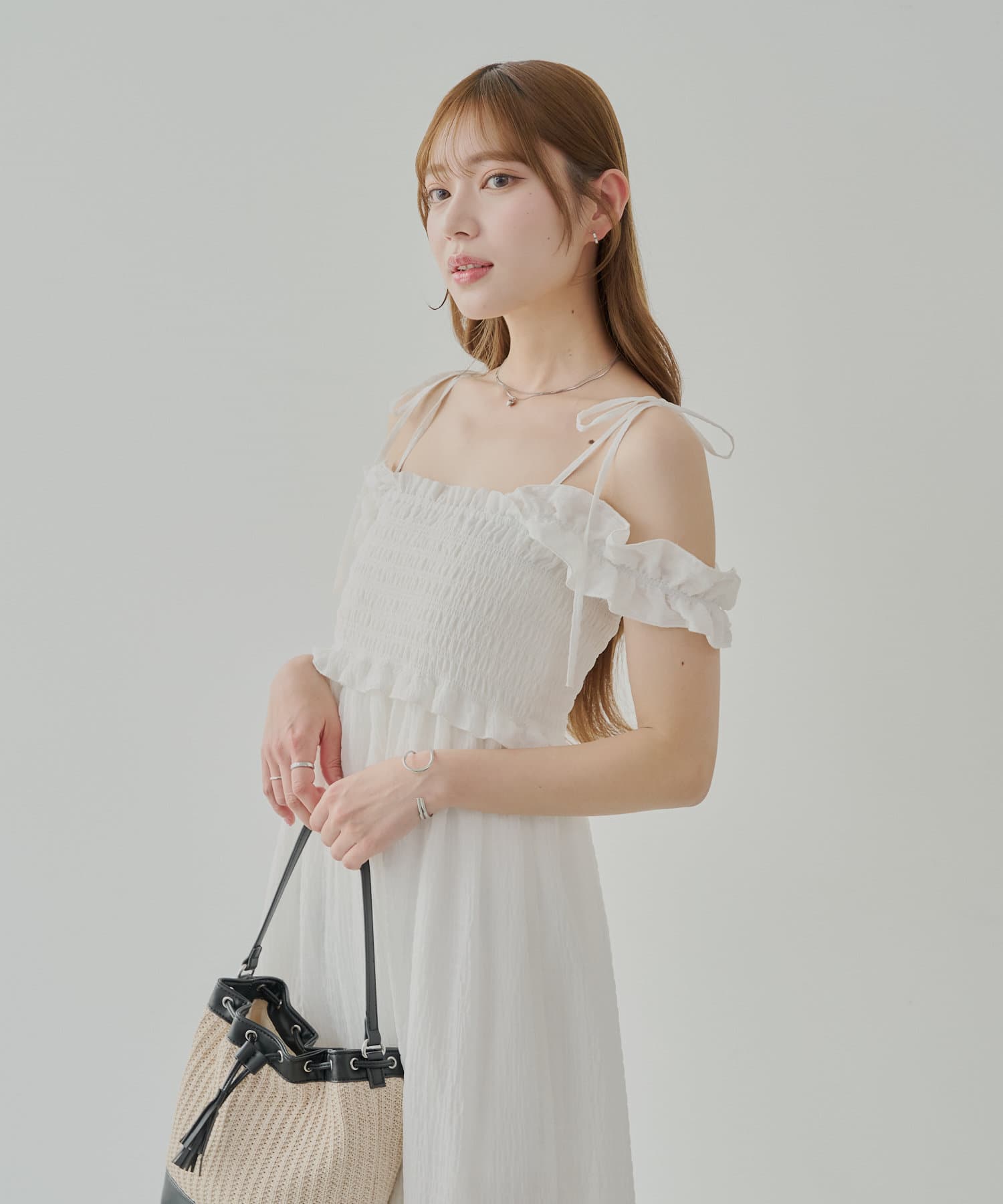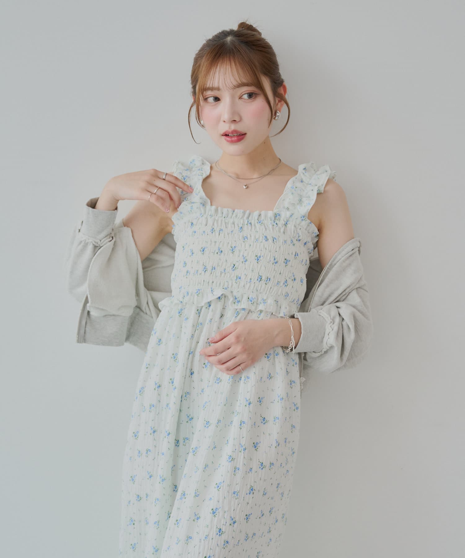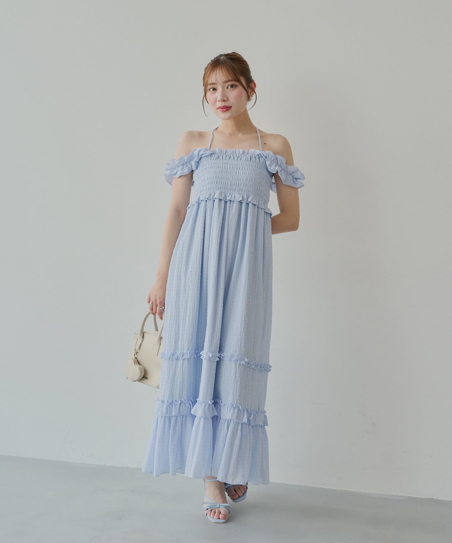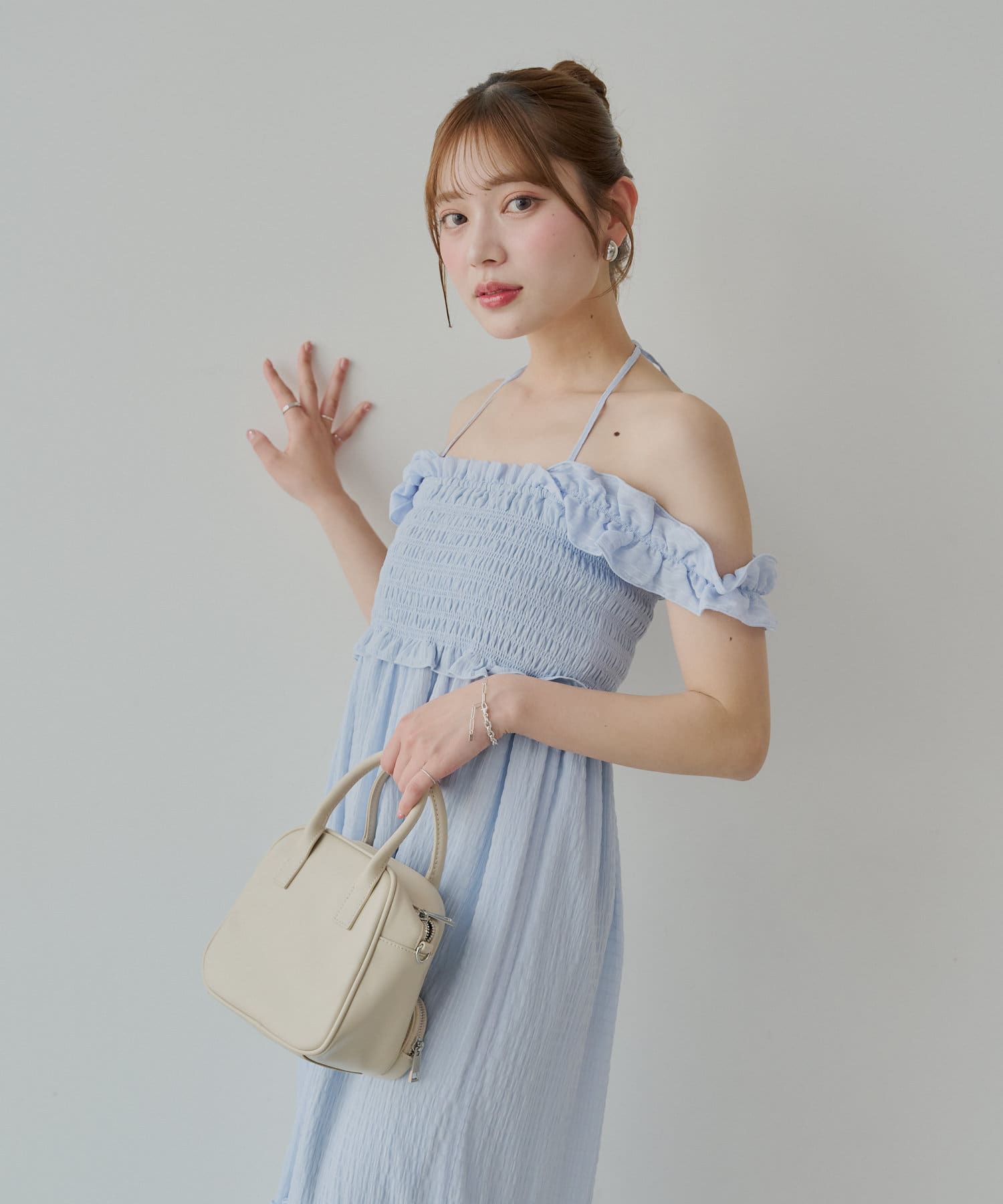 ・一枚で映えるワンピースなので小物やアクセを使ってお楽しみいただけます。
